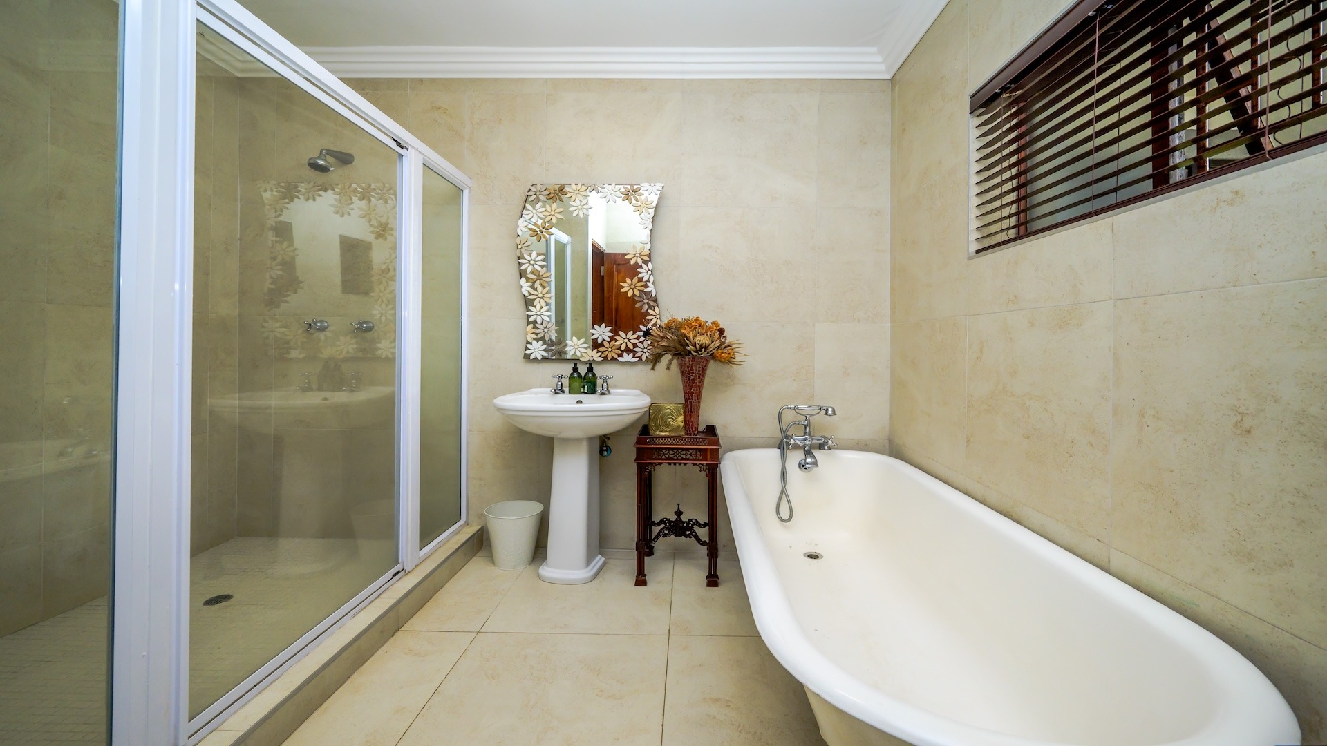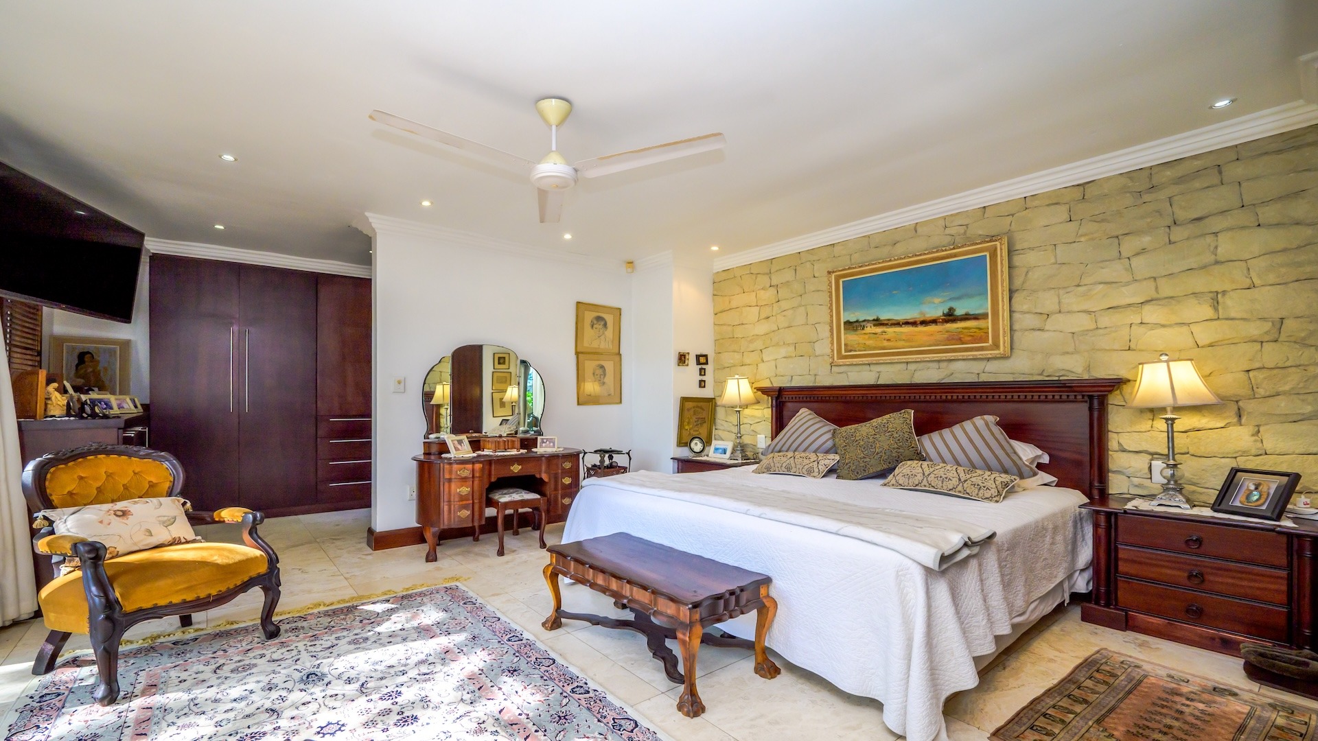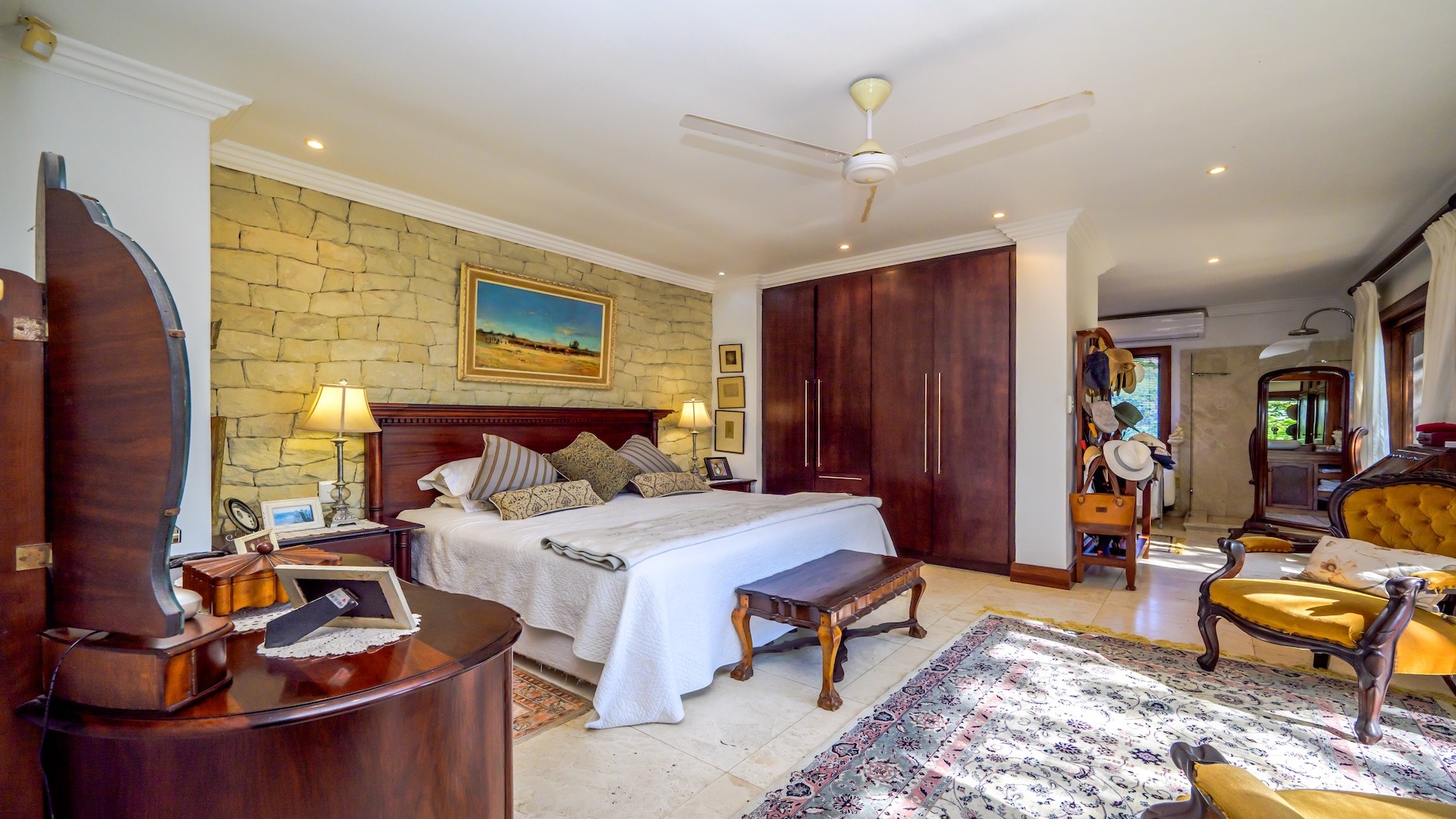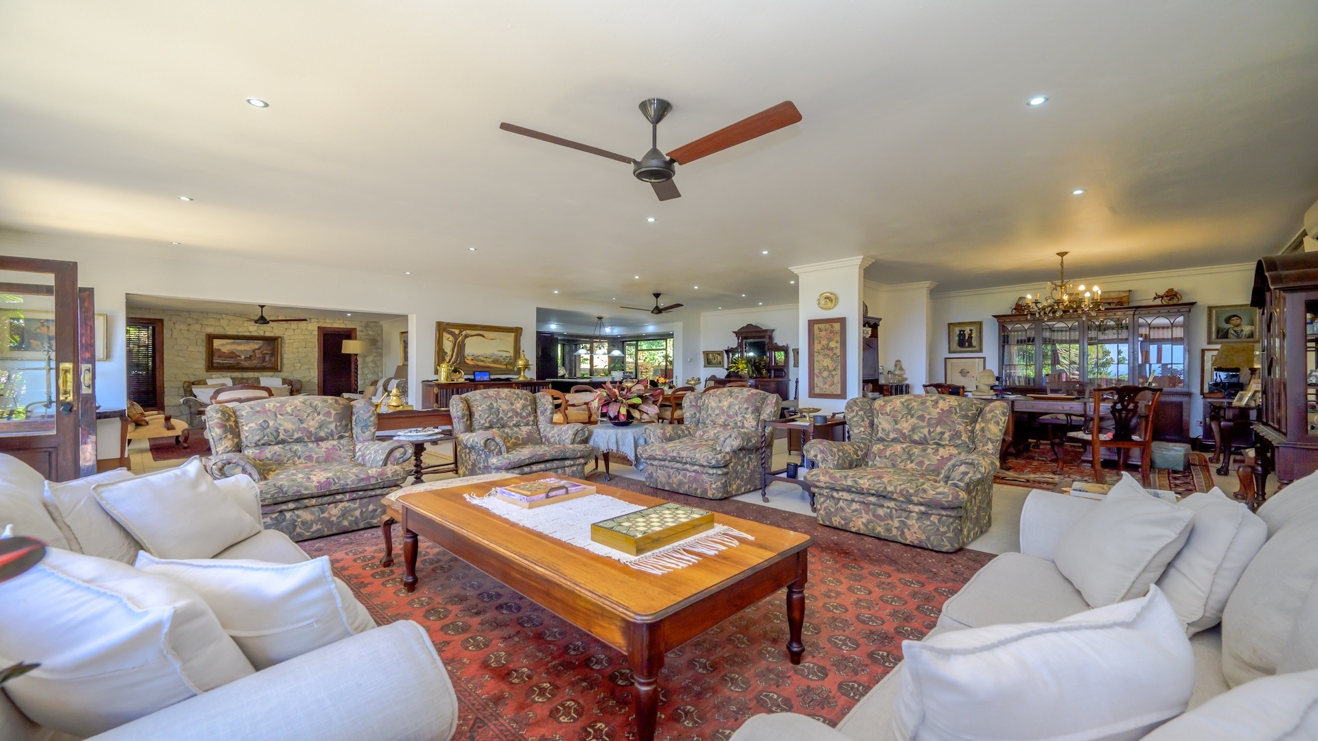 Step inside to discover an inviting, open-plan layout that exudes warmth and charm. This lived-in, much-loved residence boasts 3 spacious bedrooms, 3 well-appointed bathrooms, a cozy pajama lounge, a study (or possibly a 4th bedroom), and both formal and informal living areas — including a welcoming TV room and a classic sitting room. The large dining area and generous kitchen are complemented by a separate scullery, ideal for seamless hosting and family gatherings.