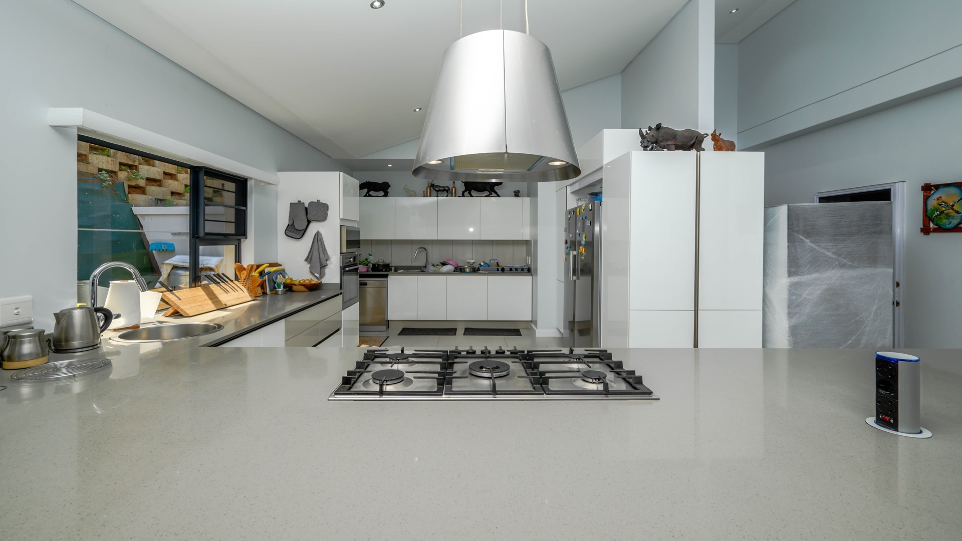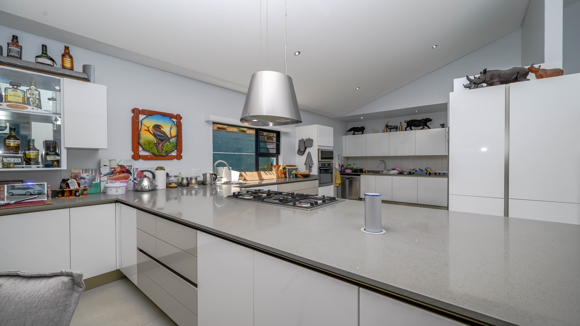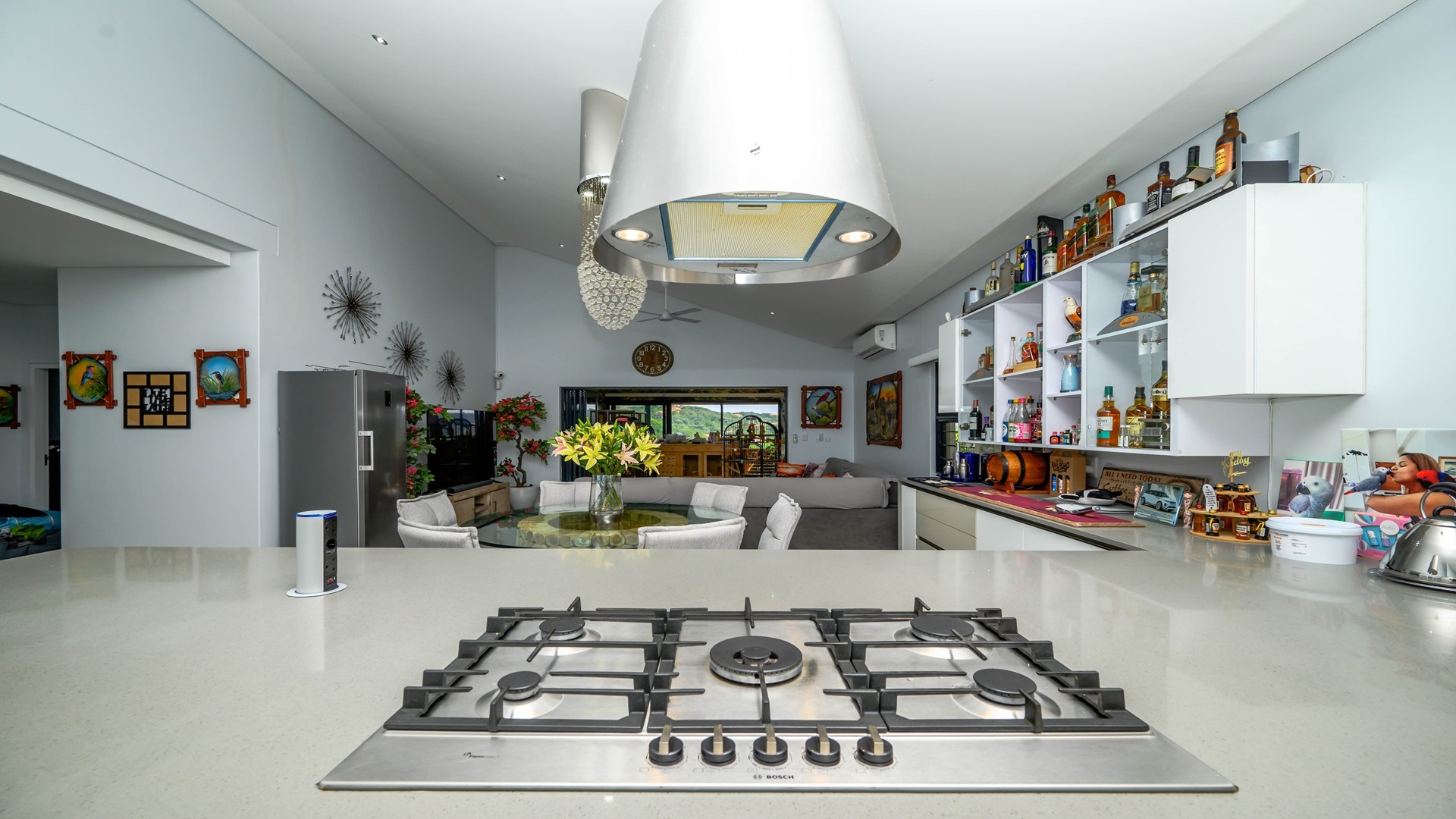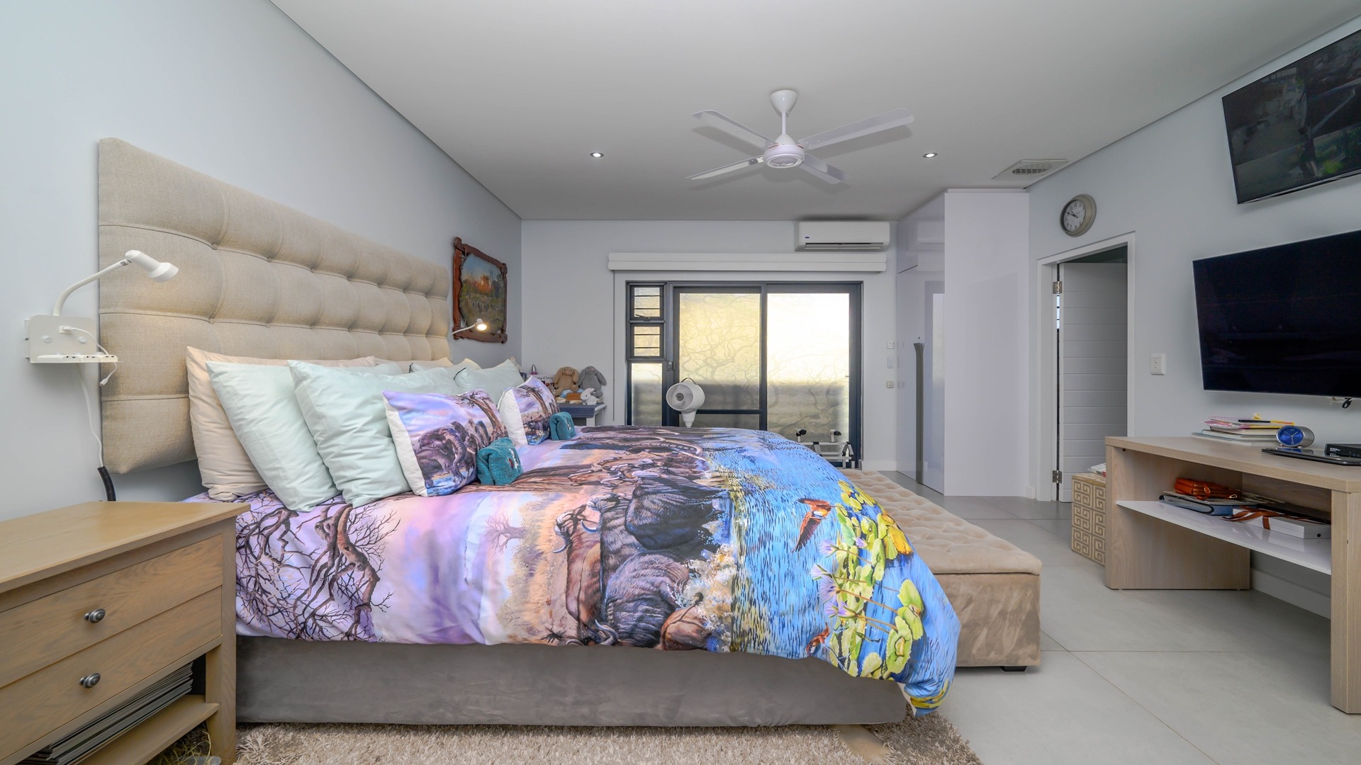 The master bedroom is upstairs fwith a small balcony and en-suite bathroom with double vanity. A guest toilet and two en-suite bedrooms on the lower level add to the luxury throughout the fully air-conditioned home. Insect and monkey screen doors & windows, a gas geyser & hob, private court yard, extra length automated double garage with laundry fittings and additional double undercover parking bay complete the value and style of this home for the discerning buyer.