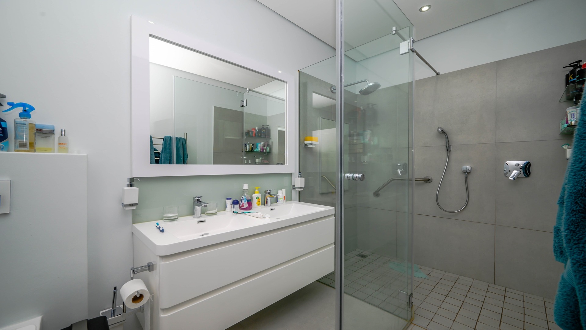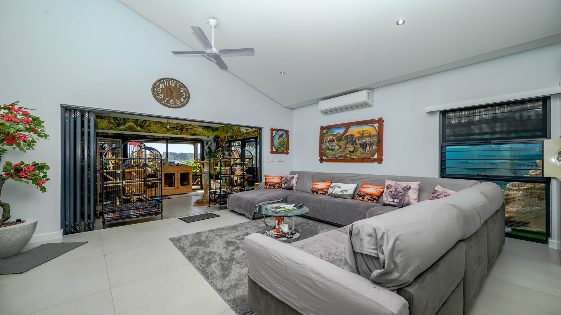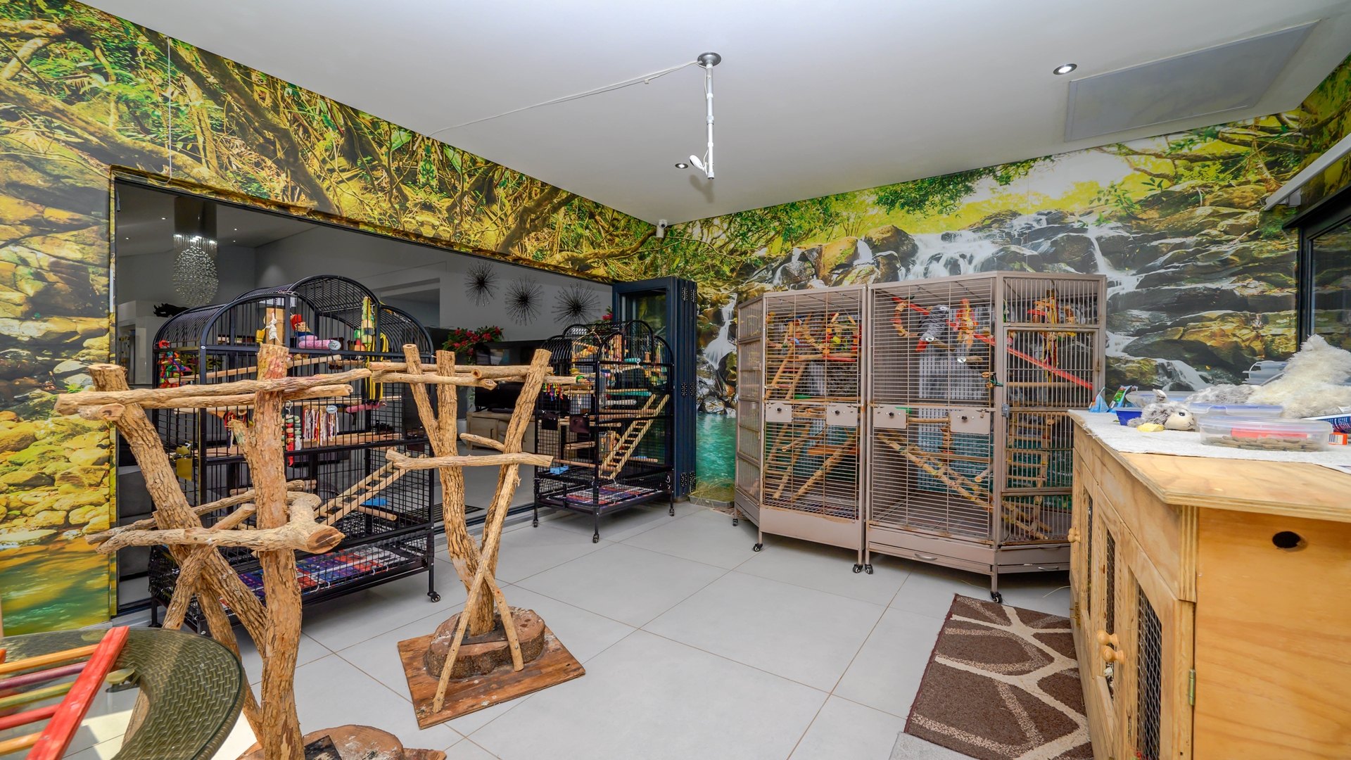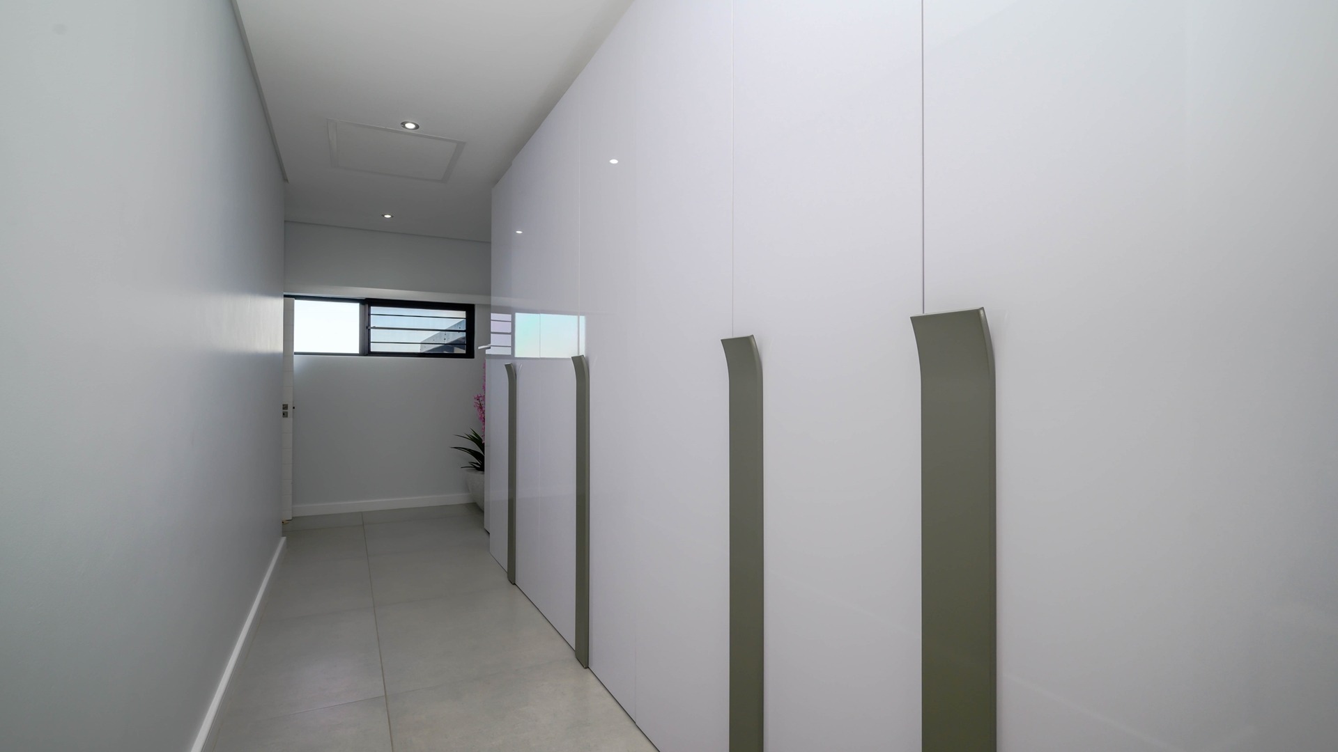 The master bedroom is upstairs fwith a small balcony and en-suite bathroom with double vanity. A guest toilet and two en-suite bedrooms on the lower level add to the luxury throughout the fully air-conditioned home. Insect and monkey screen doors & windows, a gas geyser & hob, private court yard, extra length automated double garage with laundry fittings and additional double undercover parking bay complete the value and style of this home for the discerning buyer.