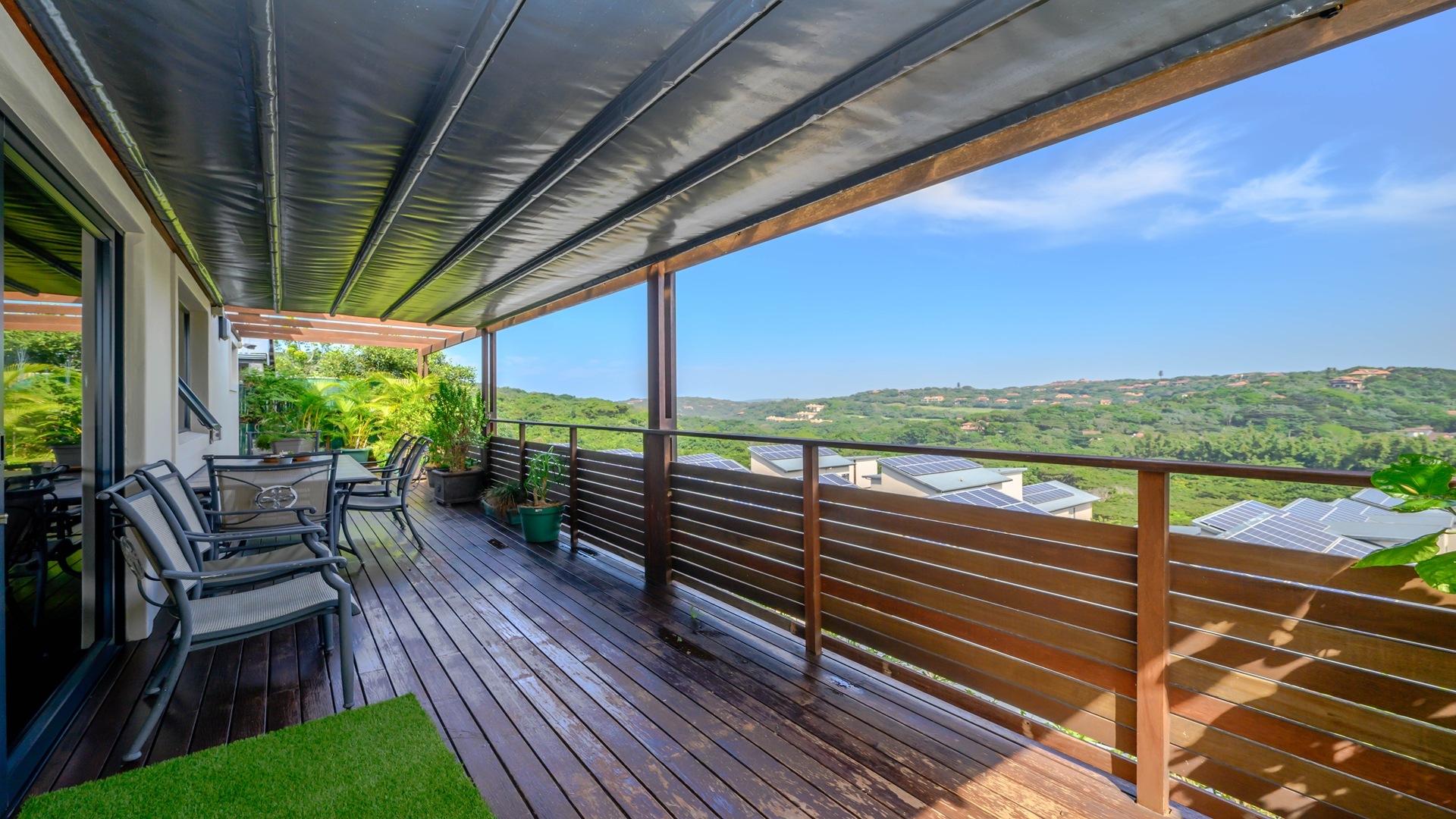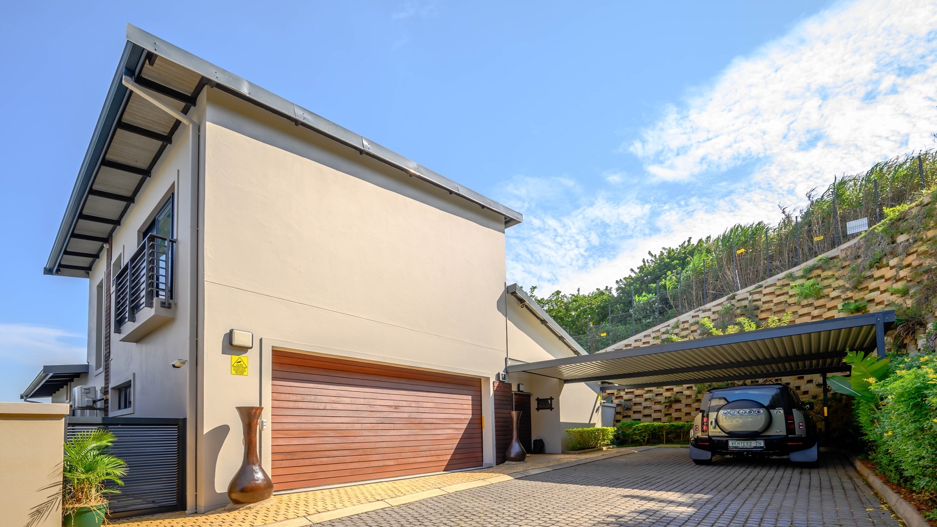 A privately located 3 bedroom home in the heart of Ballito overlooking Zimbali Golf Course. With top class finishes fixtures and fittings. This home offers Space for a growing family. Ample wardrobes with full security and solar powered back-up systems. A state of the art kitchen and open plan dining room, lounge and entertainment area opening onto a wooden decked balcony overlooking lush forest and Zimbali Golf Course.