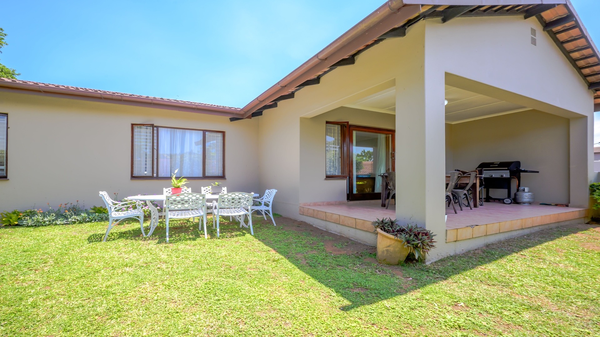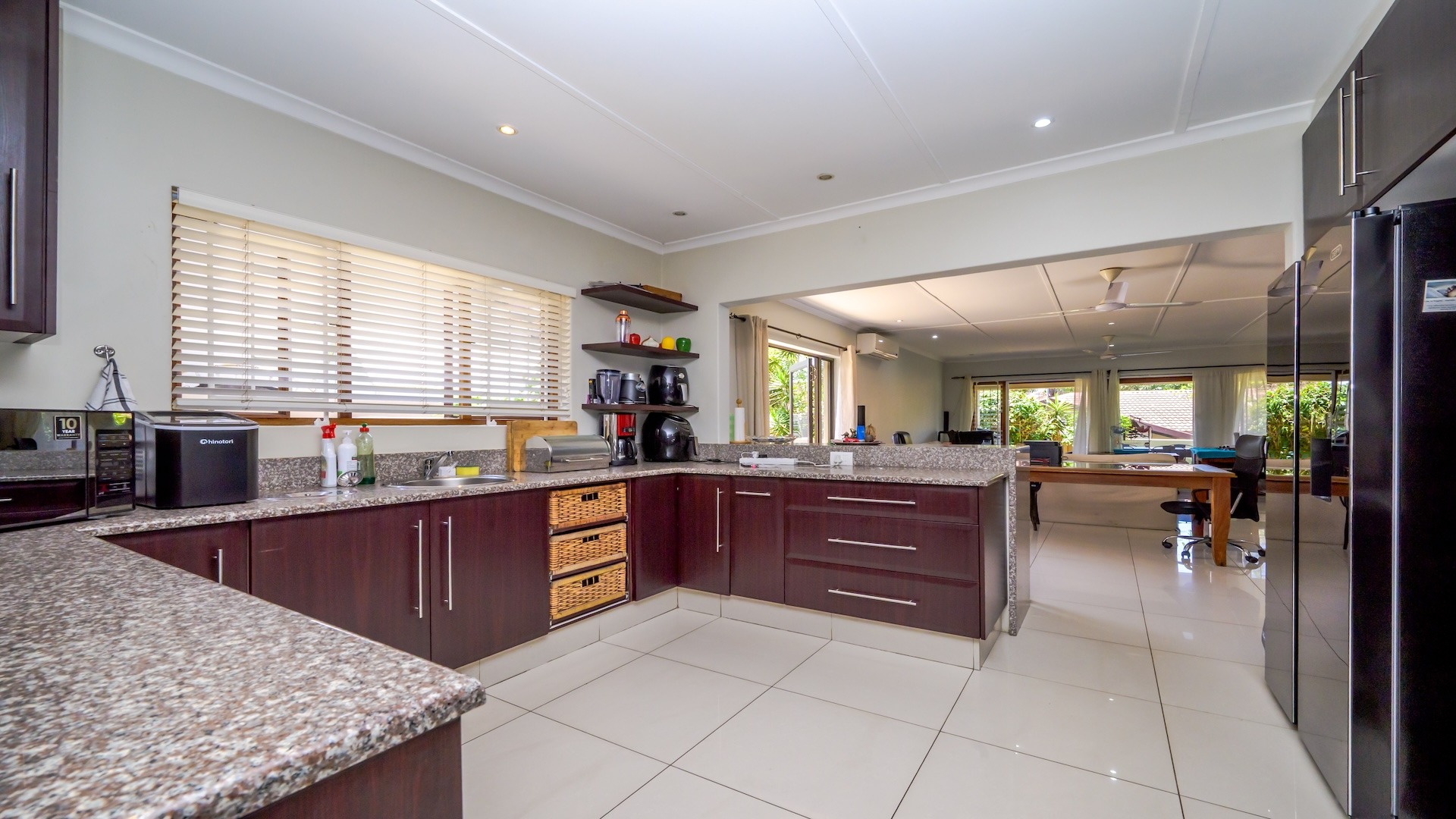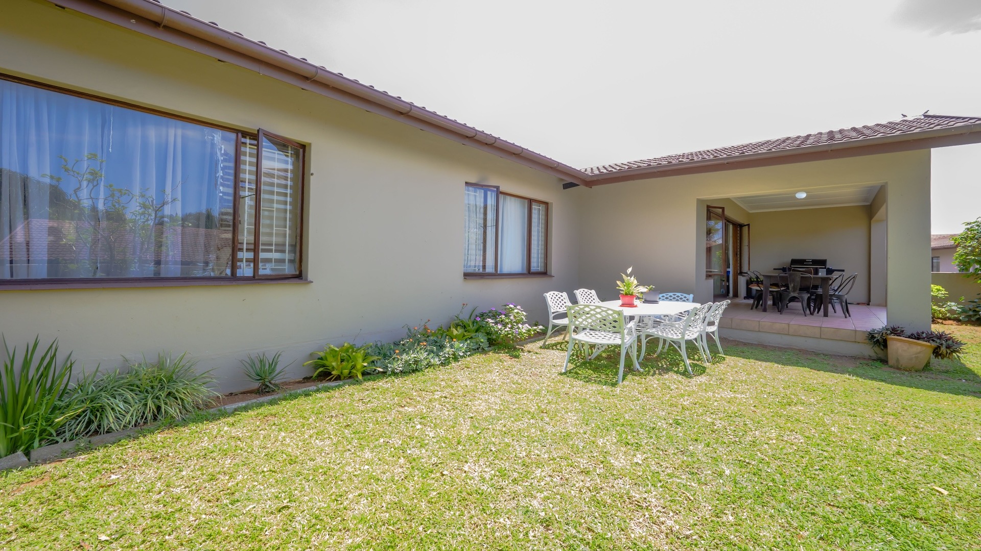 Discover comfortable coastal living in this inviting 200 sqm residence, ideally situated within a secure complex in Ballito. This spacious townhouse features an appealing open-plan layout, seamlessly connecting the spacious lounge and dining area with the kitchen. The well-appointed kitchen, complete with a convenient seperate scullery that includes a pantry, ensures practical daily living as it is also plumbed and offers loads of cupboard space. Sliding doors enhance the flow, providing easy access to outdoor spaces.