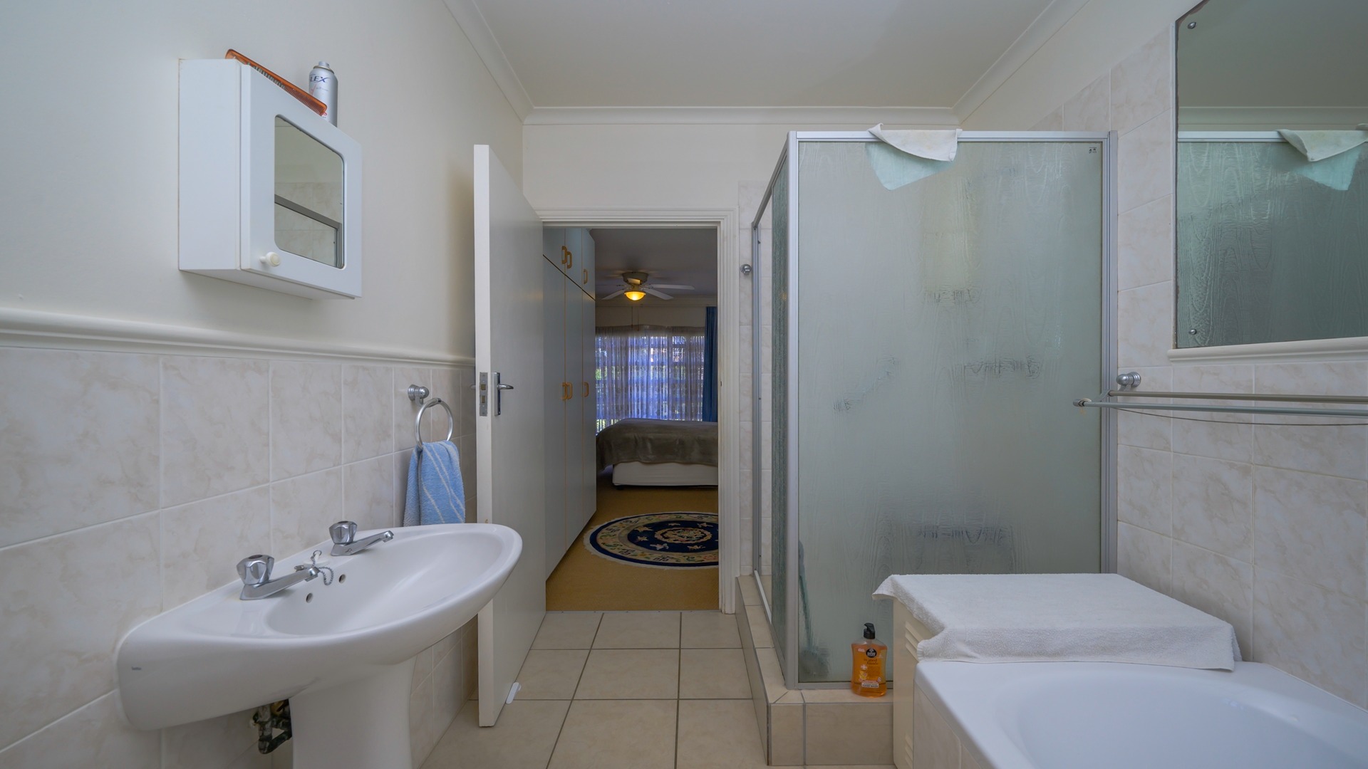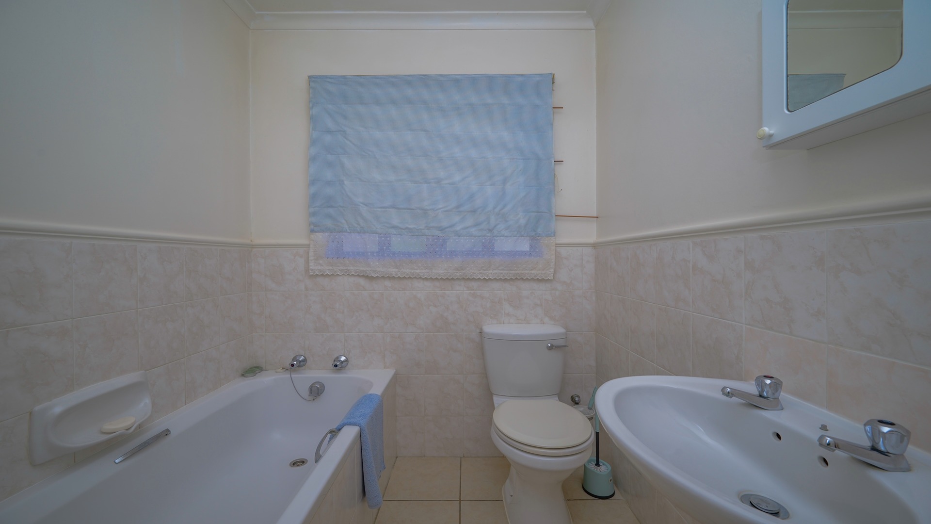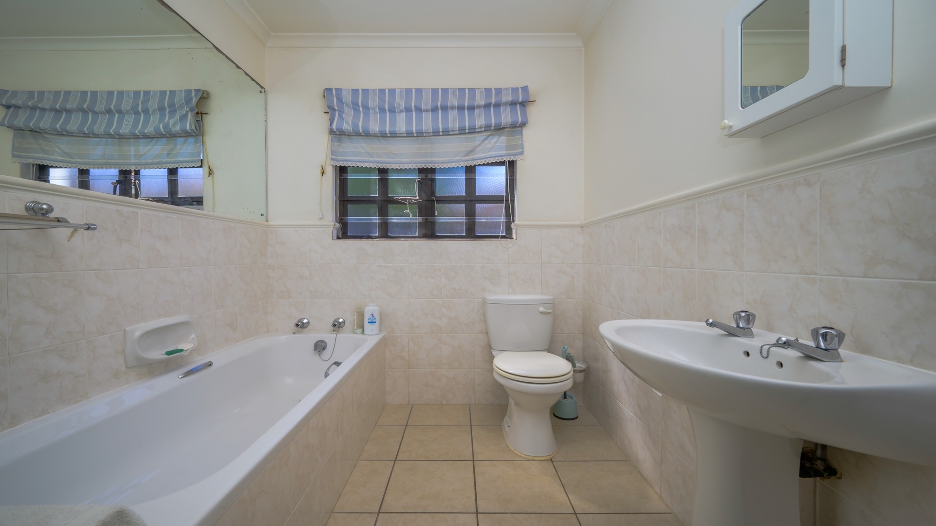 The spacious main bedroom enjoys the privacy of an ensuite bathroom, complete with both a bath and shower. A second bathroom services the remaining bedrooms, while a linen cupboard in the hallway provides valuable additional storage.