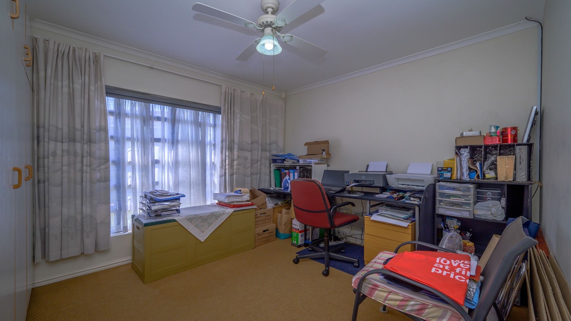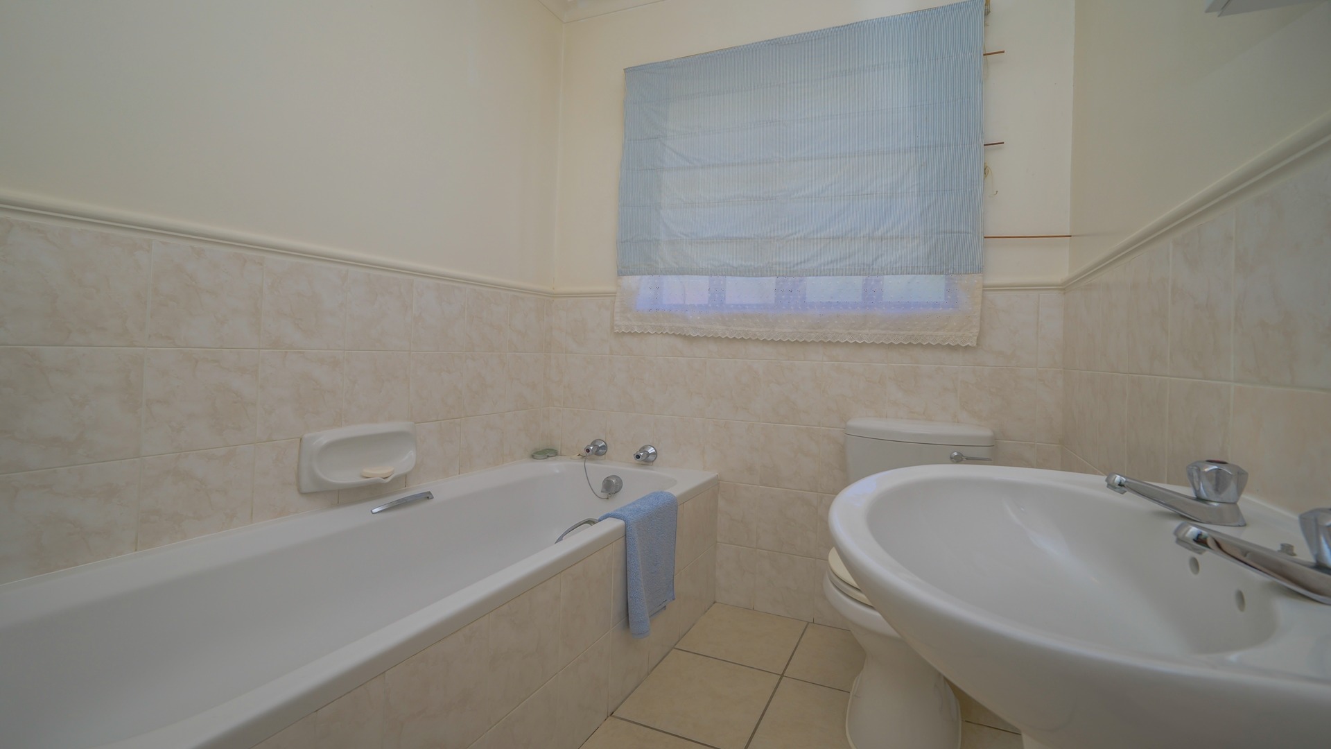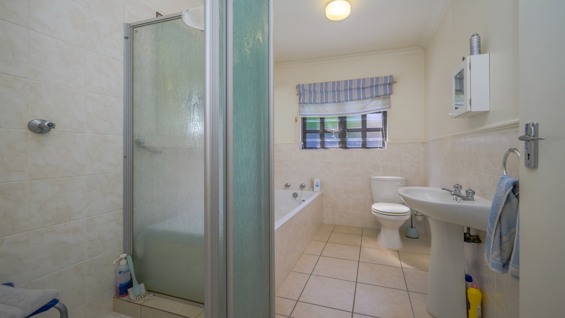 The spacious main bedroom enjoys the privacy of an ensuite bathroom, complete with both a bath and shower. A second bathroom services the remaining bedrooms, while a linen cupboard in the hallway provides valuable additional storage.