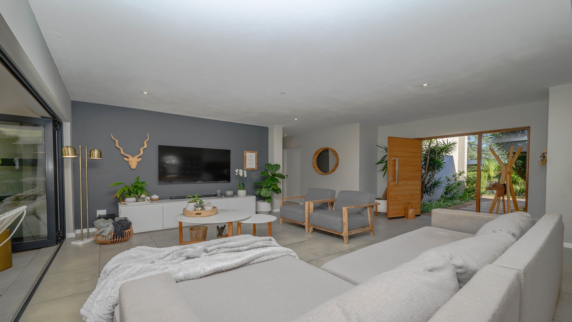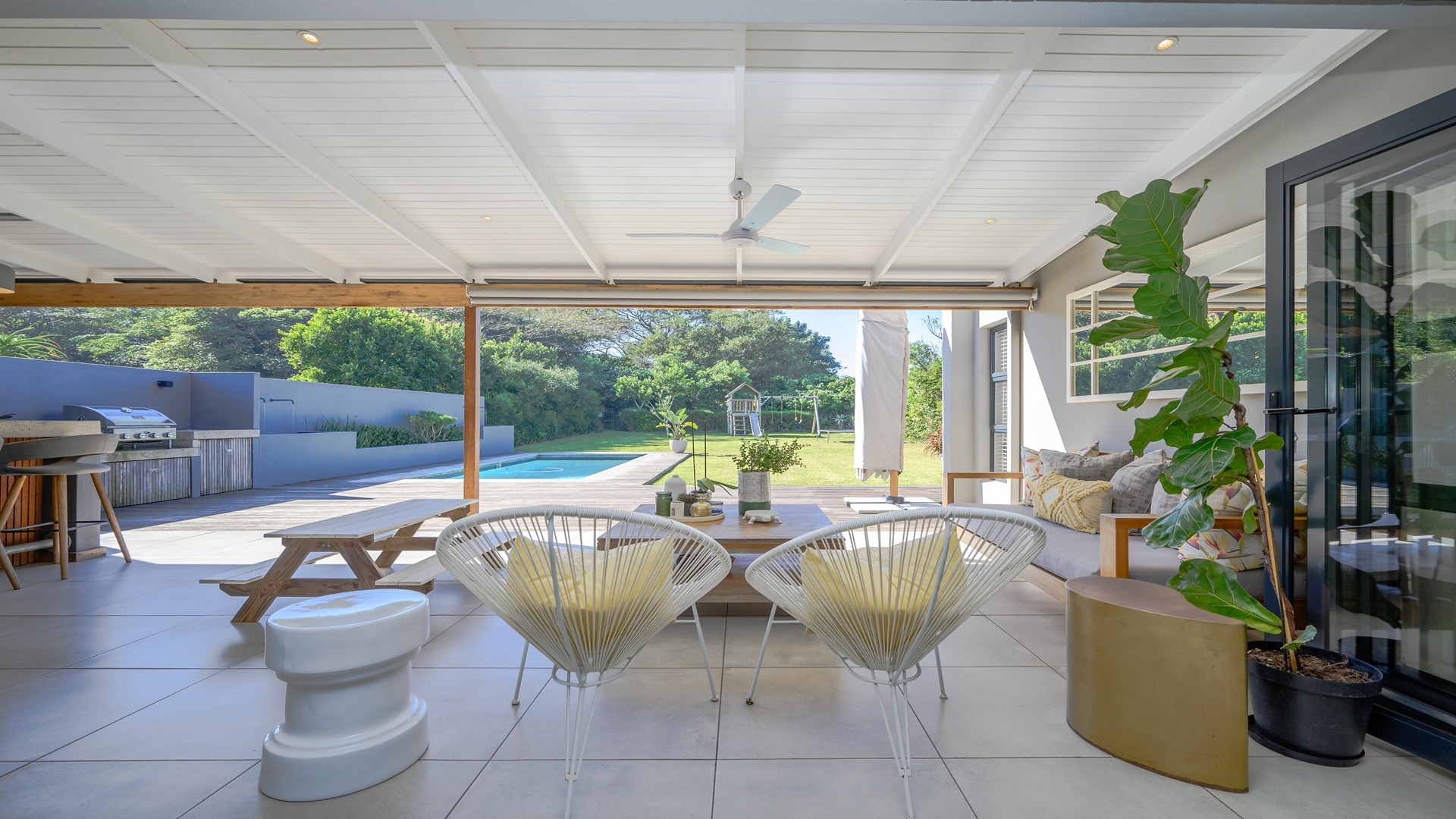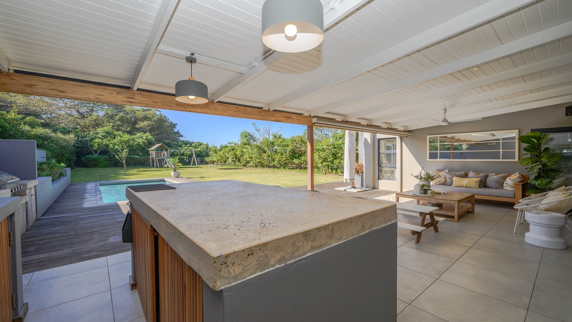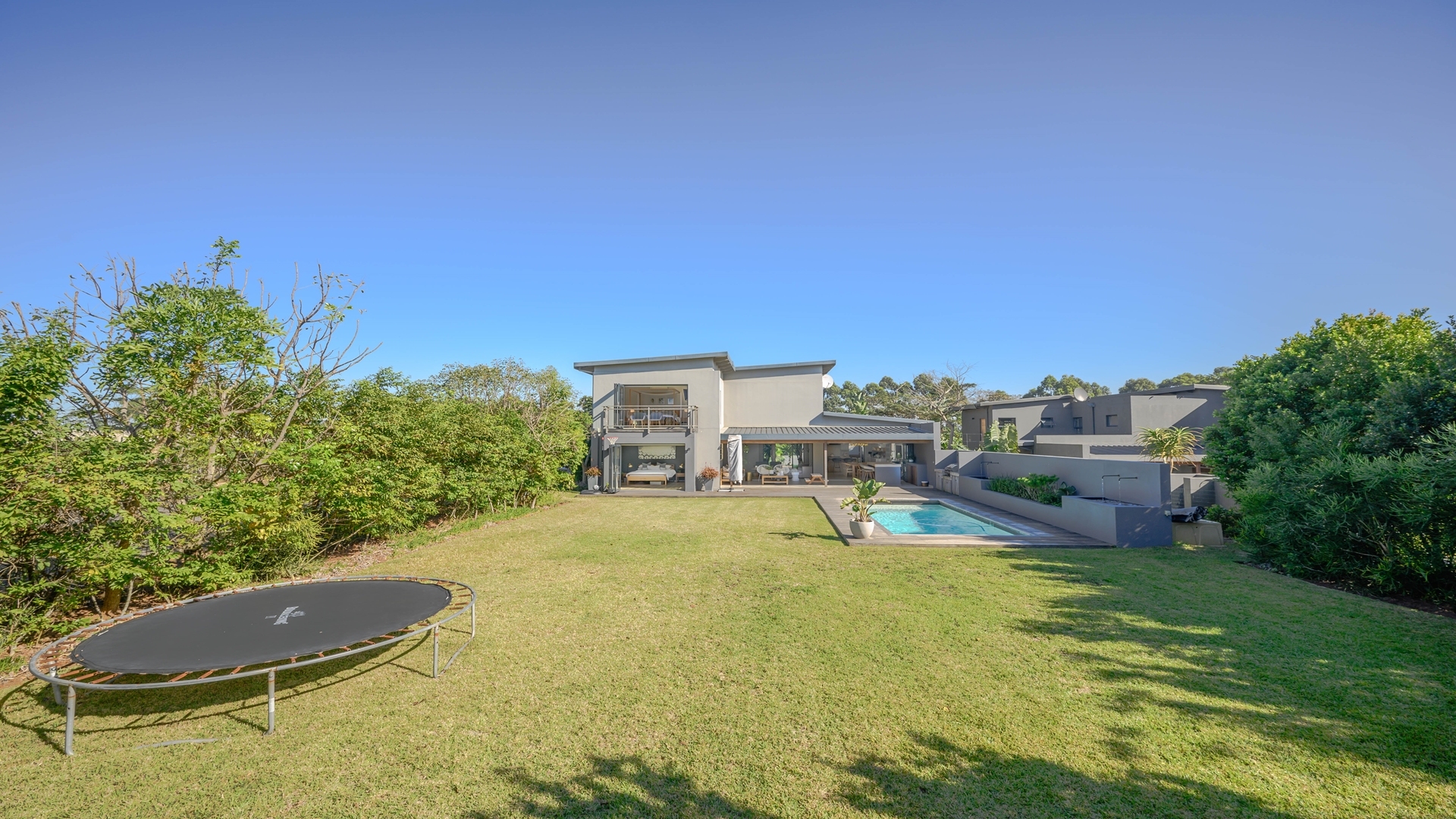 Discover an exceptional opportunity for secure estate living in the sought-after Ballito Central, South Africa. This expansive residential property, nestled within a security estate and complex, offers a generous Erf size of 1306.00 sqm, providing ample space for comfortable family life. Ballito Central is renowned for its vibrant coastal atmosphere and convenient access to amenities, offering an ideal blend of tranquil living and urban accessibility. The interior of this impressive home is designed for both functionality and comfort, featuring five well-proportioned bedrooms and four bathrooms, ensuring privacy and convenience for all residents. The main living areas include two spacious lounges, perfect for relaxation and entertaining. A dedicated study provides an ideal space for remote work or quiet contemplation, complemented by a convenient guest toilet and a practical laundry area. Step outside to embrace a lifestyle of leisure and recreation with a private swimming pool, offering a refreshing escape on warm Ballito days. Residents also benefit from access to a communal clubhouse, enhancing the community feel. Parking is well-catered for with two dedicated garages and a total of three parking spaces. Security is paramount, with electric fencing contributing to a safe and protected environment within this esteemed security estate, where pets are also welcome. Key Features: • 5 Bedrooms • 4 Bathrooms • 2 Lounges • Dedicated Study • Private Swimming Pool • Clubhouse Access • 2 Garages, 3 Parking Spaces • Electric Fencing • Pets Allowed • Laundry Facilities