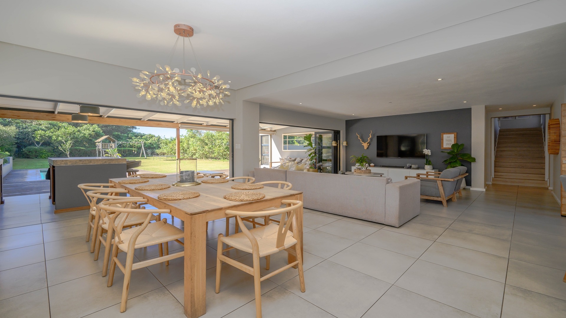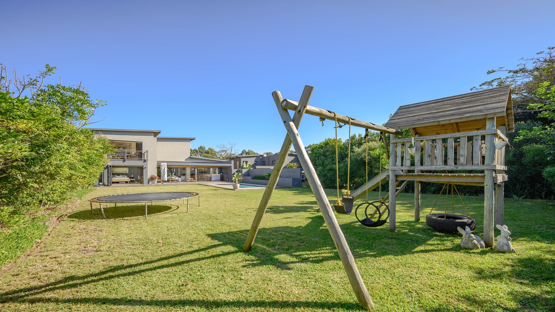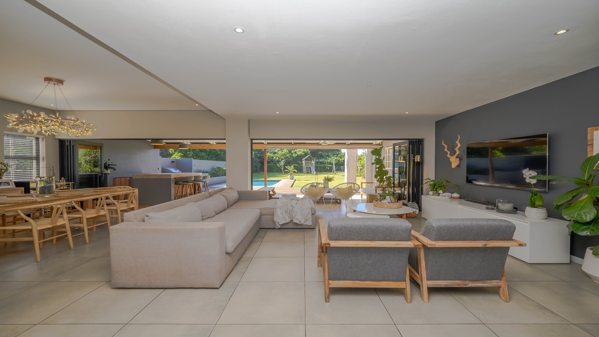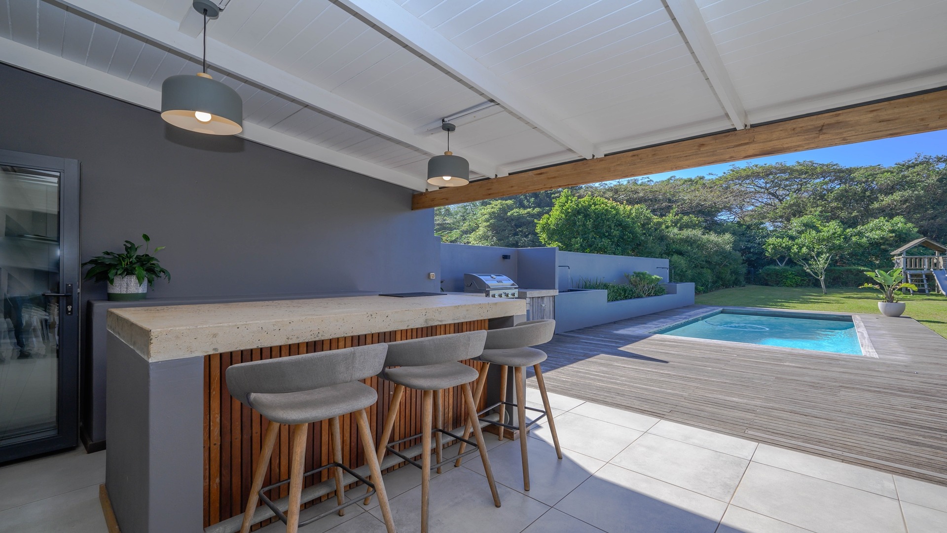 Discover an exceptional opportunity for secure estate living in the sought-after Ballito Central, South Africa. This expansive residential property, nestled within a security estate and complex, offers a generous Erf size of 1306.00 sqm, providing ample space for comfortable family life. Ballito Central is renowned for its vibrant coastal atmosphere and convenient access to amenities, offering an ideal blend of tranquil living and urban accessibility. The interior of this impressive home is designed for both functionality and comfort, featuring five well-proportioned bedrooms and four bathrooms, ensuring privacy and convenience for all residents. The main living areas include two spacious lounges, perfect for relaxation and entertaining. A dedicated study provides an ideal space for remote work or quiet contemplation, complemented by a convenient guest toilet and a practical laundry area. Step outside to embrace a lifestyle of leisure and recreation with a private swimming pool, offering a refreshing escape on warm Ballito days. Residents also benefit from access to a communal clubhouse, enhancing the community feel. Parking is well-catered for with two dedicated garages and a total of three parking spaces. Security is paramount, with electric fencing contributing to a safe and protected environment within this esteemed security estate, where pets are also welcome. Key Features: • 5 Bedrooms • 4 Bathrooms • 2 Lounges • Dedicated Study • Private Swimming Pool • Clubhouse Access • 2 Garages, 3 Parking Spaces • Electric Fencing • Pets Allowed • Laundry Facilities
