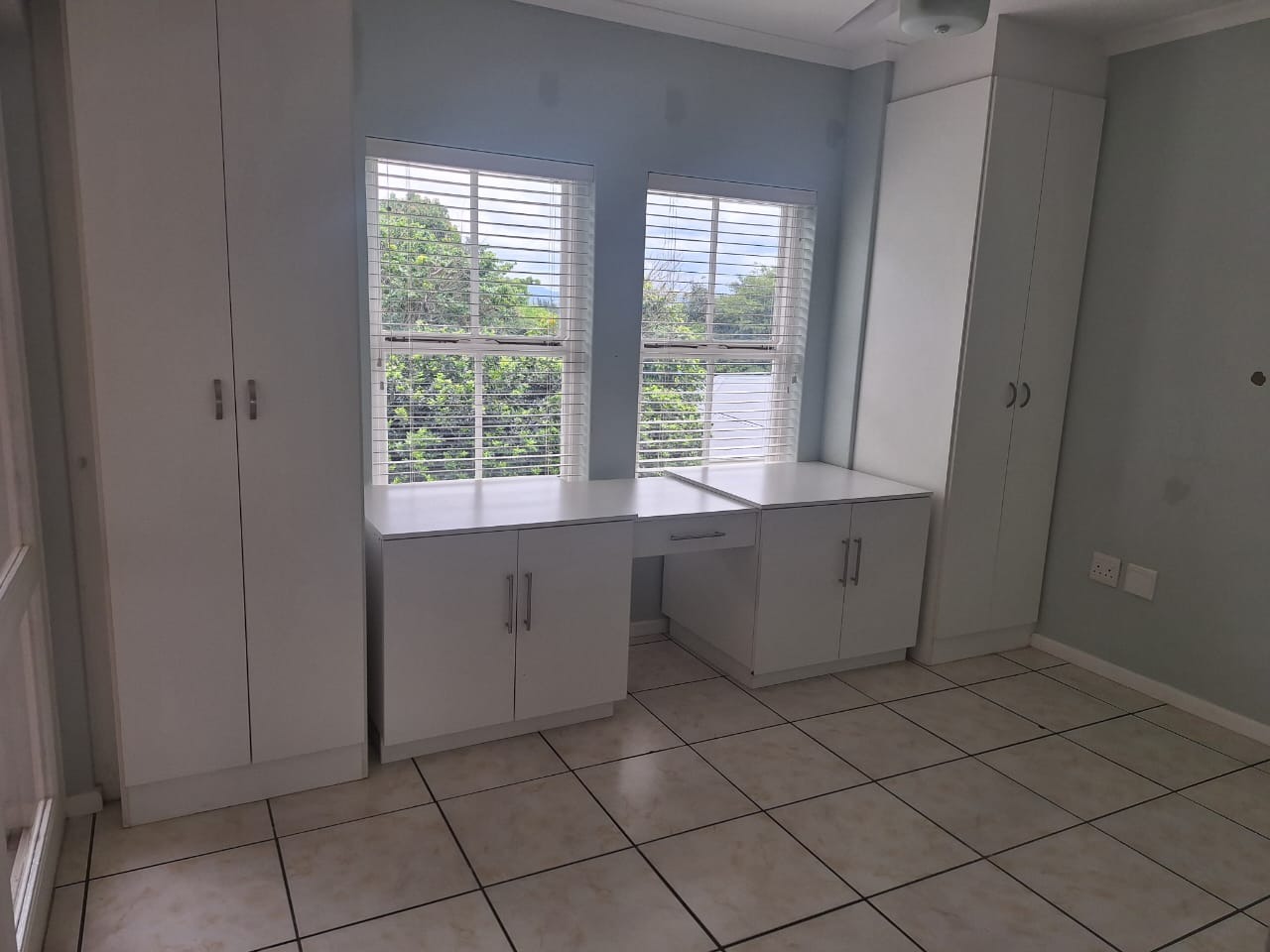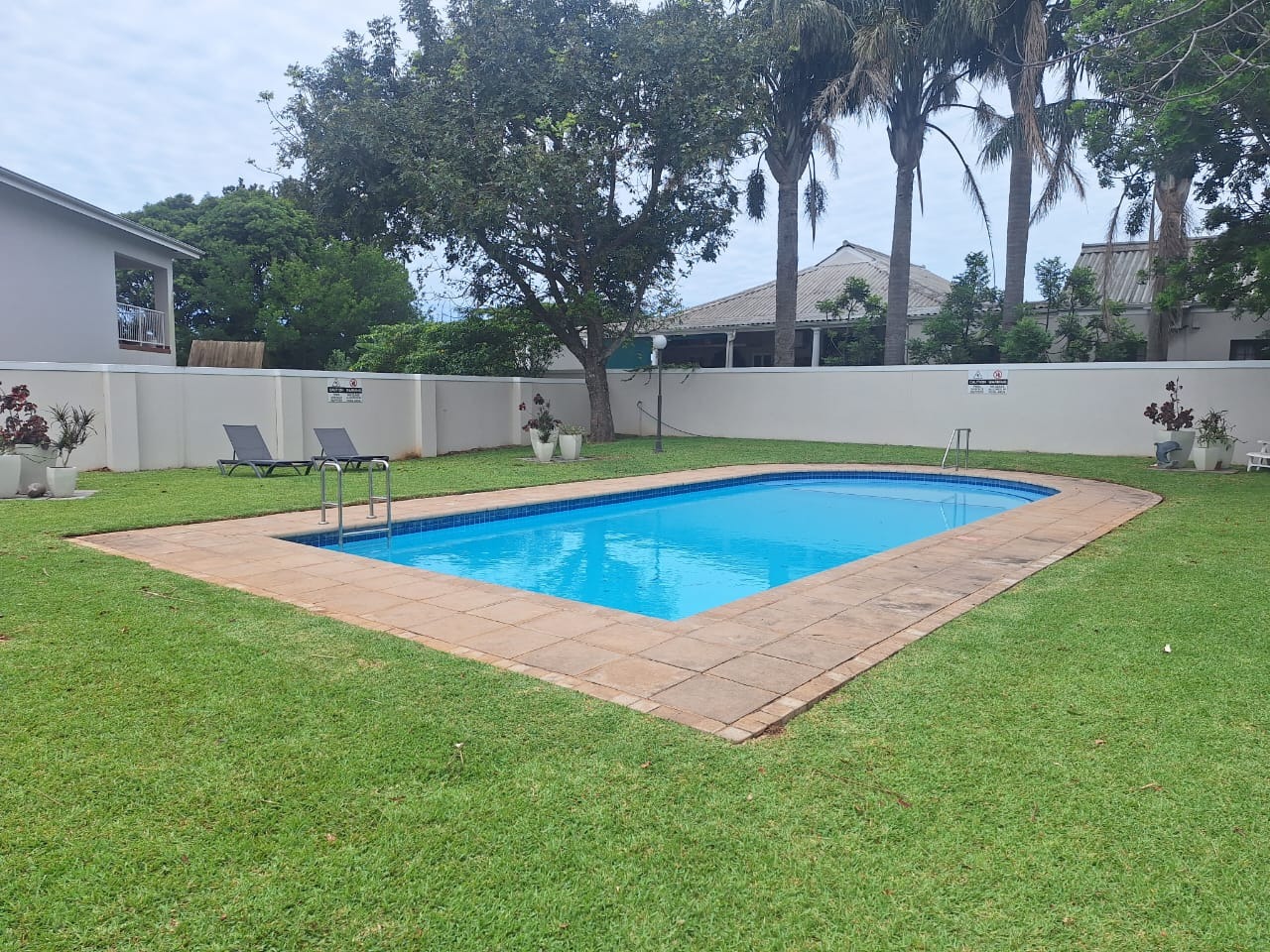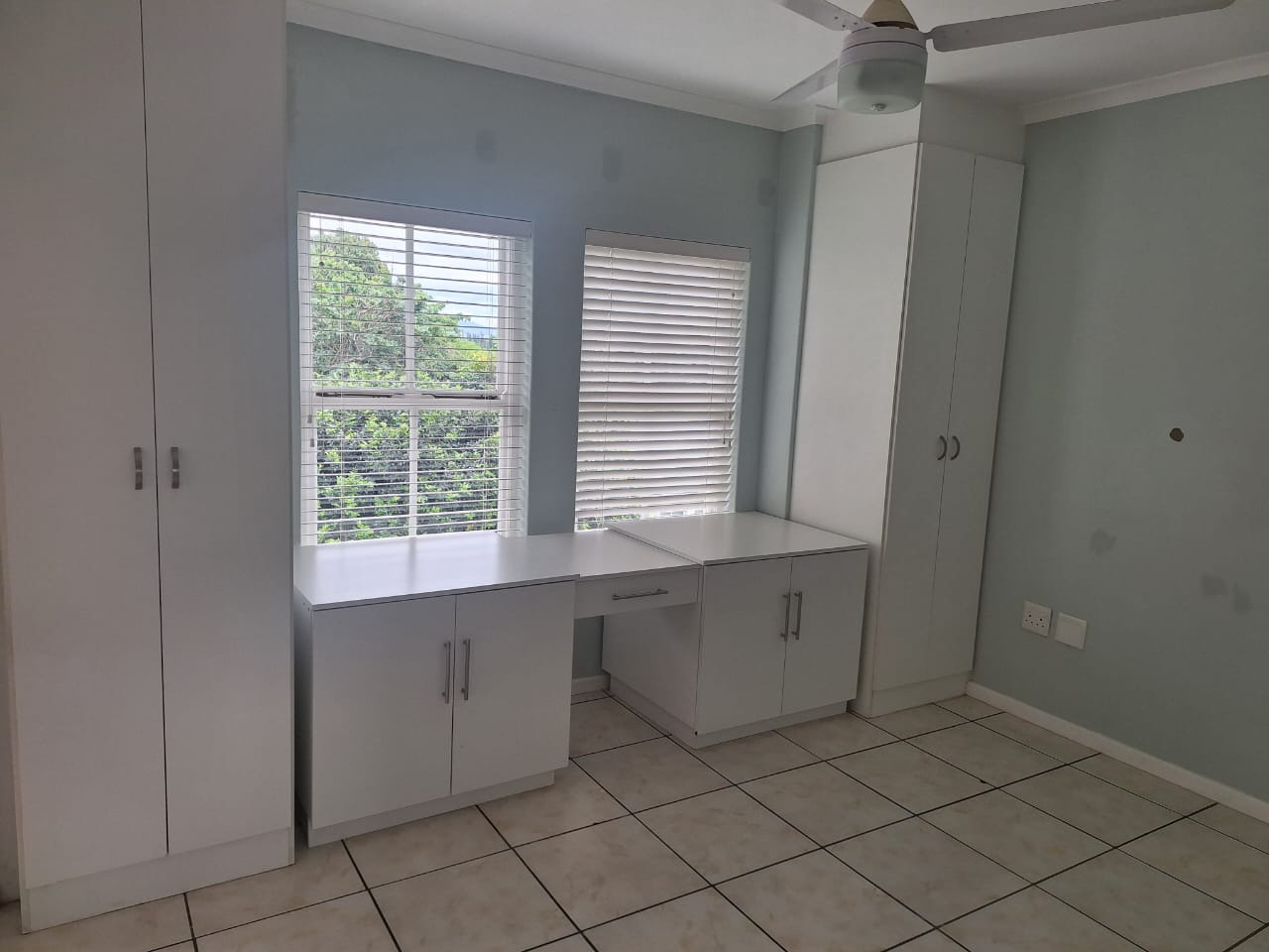 This modern 2-bedroom, 1-bathroom apartment, spanning 71 sqm, offers comfortable estate living in Compensation Beach, Ballito. Designed for contemporary lifestyles, the residence features an inviting open-plan layout seamlessly connecting the living and kitchen areas. The kitchen is well-appointed with modern dark cabinetry, an integrated hob and oven, and a functional island that doubles as a breakfast bar. Tiled flooring throughout ensures durability and easy maintenance, while a ceiling fan in the living area provides comfort. The two bedrooms are thoughtfully designed, each featuring built-in cupboards for ample storage. One bedroom boasts an integrated desk/study area under large windows, maximizing natural light, and also includes a ceiling fan. The second bedroom offers direct access to a private balcony through sliding glass doors, presenting picturesque views of lush greenery and distant landscapes. The full bathroom is practical, equipped with both a bathtub and a separate glass-enclosed shower, complemented by tiled floors and half-tiled walls. Step outside to enjoy the private balcony, featuring terracotta-colored tile flooring and offering expansive, unobstructed views of the natural surroundings – perfect for relaxation. The property benefits from a well-maintained garden and the estate includes a communal pool, enhancing the lifestyle offering. Parking is convenient with one garage and an additional parking space available, ensuring ease for residents and guests. Situated within a secure estate, residents benefit from 24-hour security, providing peace of mind. Compensation Beach in Ballito is a sought-after coastal area in South Africa, known for its vibrant community and proximity to amenities, making it an ideal location for both permanent residence and holiday retreats. Key Features: • 2 Bedrooms, 1 Bathroom • 71 sqm Floor Size • Modern Open-Plan Kitchen • Private Balcony with Scenic Views • Built-in Wardrobes • Communal Pool & Garden • 1 Garage, 1 Parking • 24-Hour Estate Security