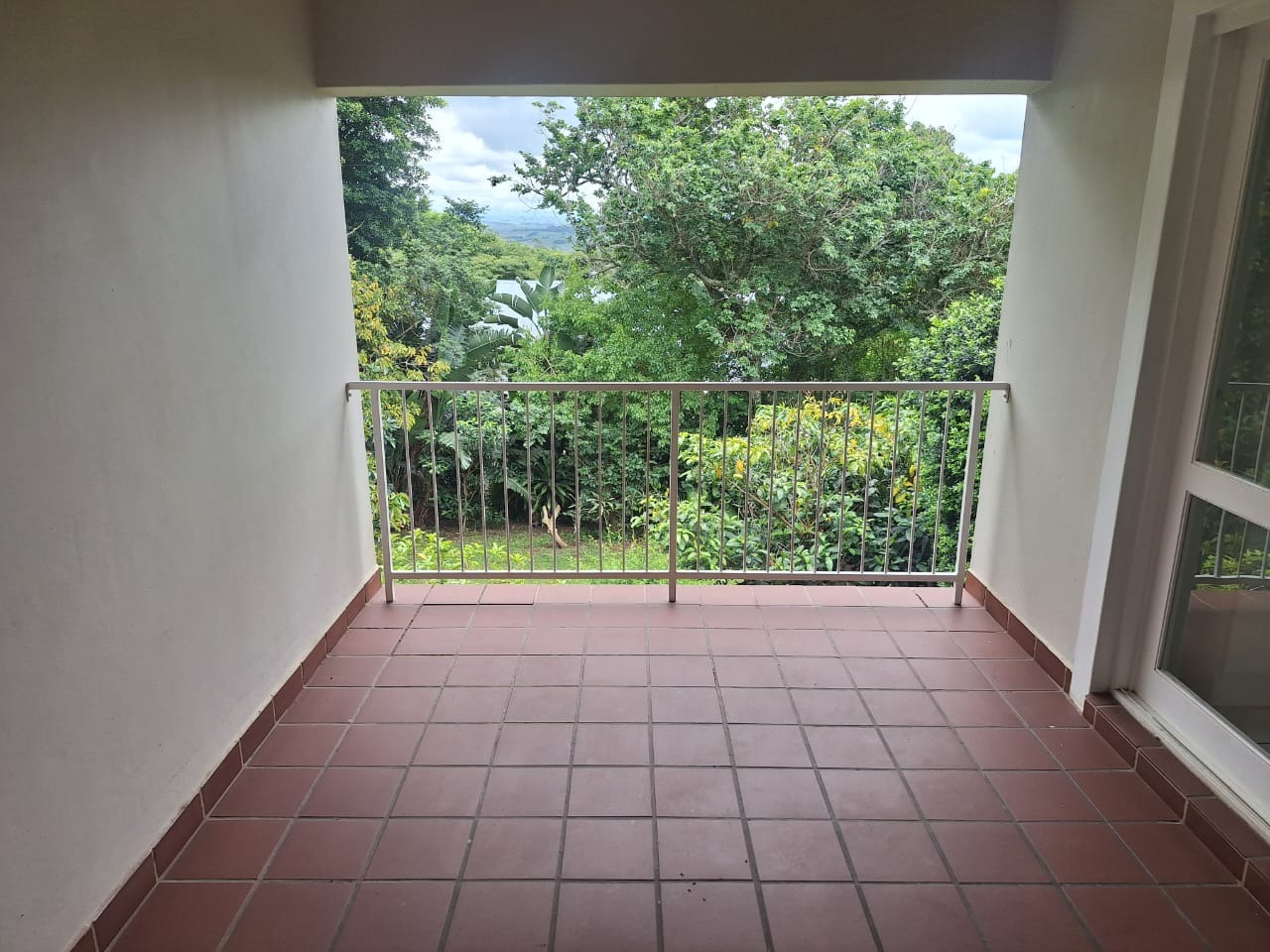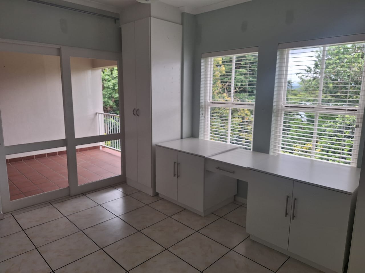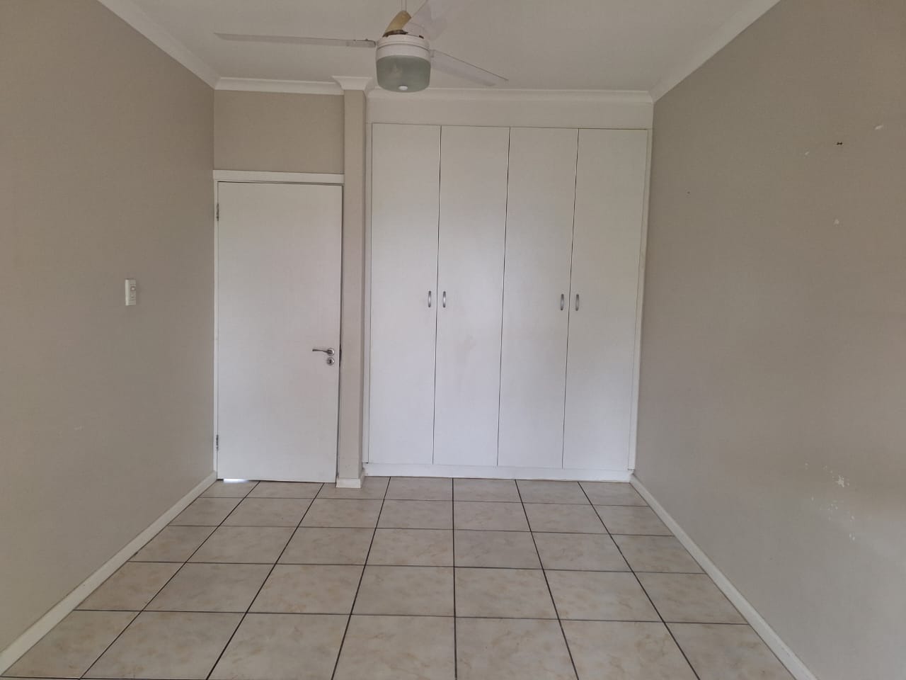 This modern 2-bedroom, 1-bathroom apartment, spanning 71 sqm, offers comfortable estate living in Compensation Beach, Ballito. Designed for contemporary lifestyles, the residence features an inviting open-plan layout seamlessly connecting the living and kitchen areas. The kitchen is well-appointed with modern dark cabinetry, an integrated hob and oven, and a functional island that doubles as a breakfast bar. Tiled flooring throughout ensures durability and easy maintenance, while a ceiling fan in the living area provides comfort. The two bedrooms are thoughtfully designed, each featuring built-in cupboards for ample storage. One bedroom boasts an integrated desk/study area under large windows, maximizing natural light, and also includes a ceiling fan. The second bedroom offers direct access to a private balcony through sliding glass doors, presenting picturesque views of lush greenery and distant landscapes. The full bathroom is practical, equipped with both a bathtub and a separate glass-enclosed shower, complemented by tiled floors and half-tiled walls. Step outside to enjoy the private balcony, featuring terracotta-colored tile flooring and offering expansive, unobstructed views of the natural surroundings – perfect for relaxation. The property benefits from a well-maintained garden and the estate includes a communal pool, enhancing the lifestyle offering. Parking is convenient with one garage and an additional parking space available, ensuring ease for residents and guests. Situated within a secure estate, residents benefit from 24-hour security, providing peace of mind. Compensation Beach in Ballito is a sought-after coastal area in South Africa, known for its vibrant community and proximity to amenities, making it an ideal location for both permanent residence and holiday retreats. Key Features: • 2 Bedrooms, 1 Bathroom • 71 sqm Floor Size • Modern Open-Plan Kitchen • Private Balcony with Scenic Views • Built-in Wardrobes • Communal Pool & Garden • 1 Garage, 1 Parking • 24-Hour Estate Security