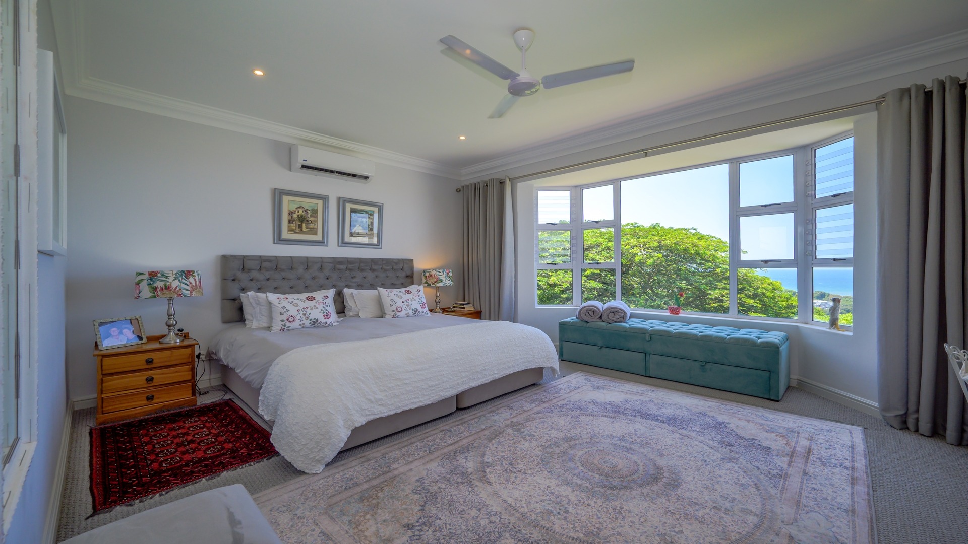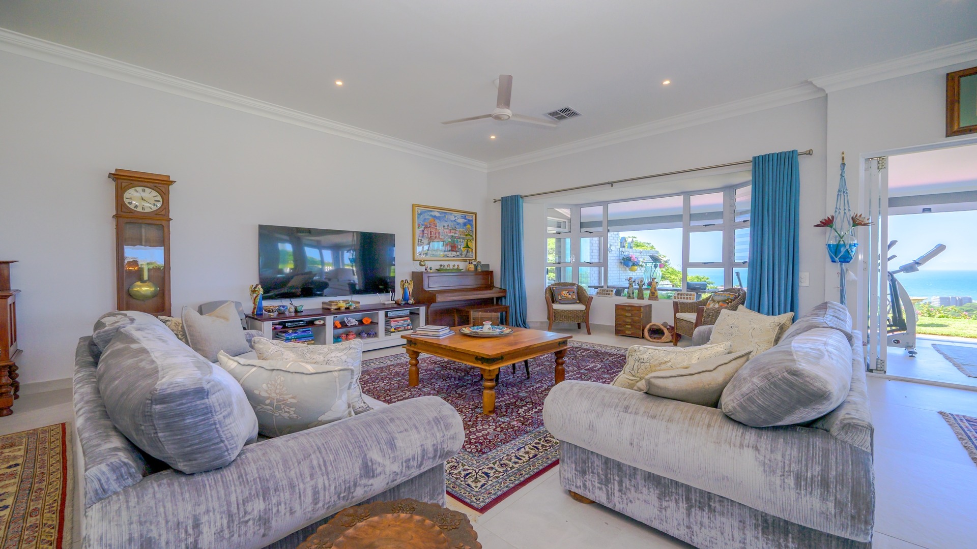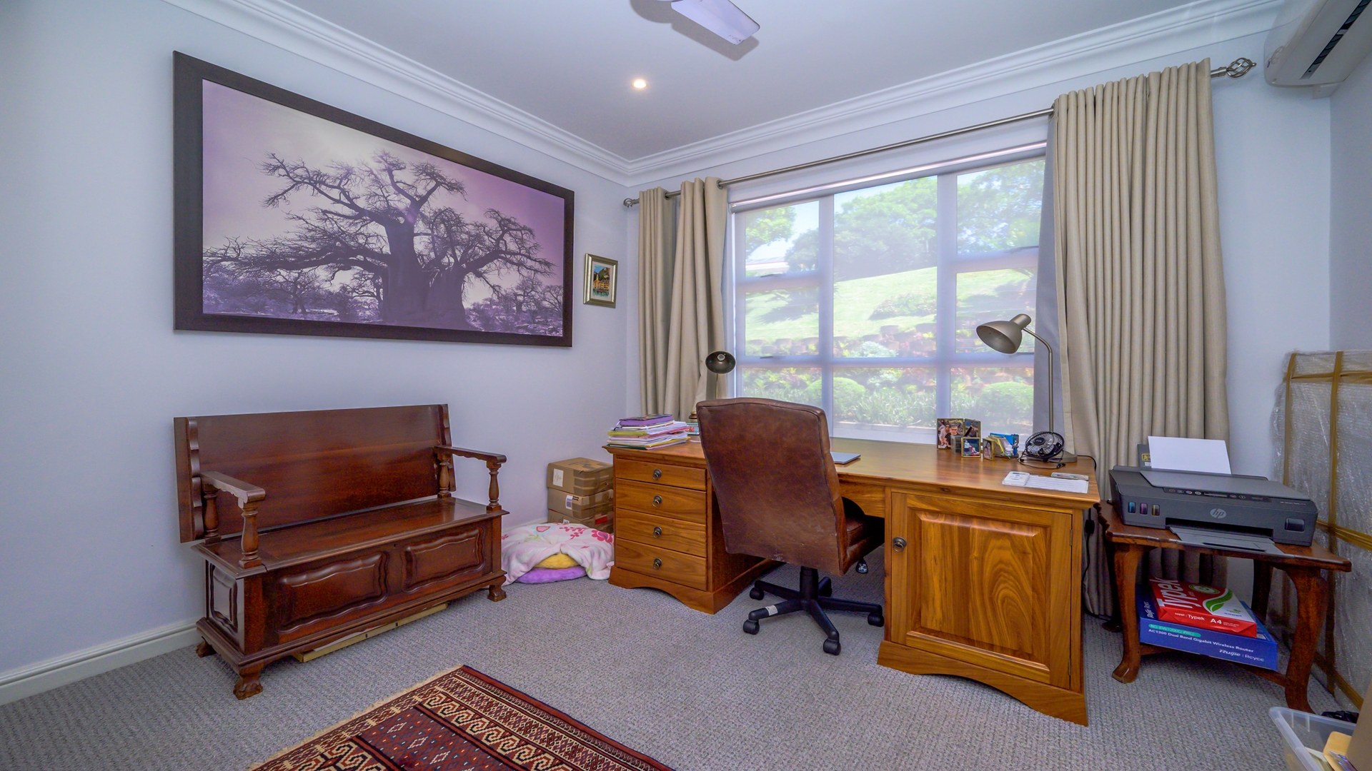 Adding to the home’s versatility, a separate self-contained granny flat offers privacy and comfort, complete with a bedroom, en-suite bathroom, built-in cupboards, and a lounge—all enjoying beautiful sea and garden views. This space is ideal for extended family or guests, staff quarters or to generate rental income.