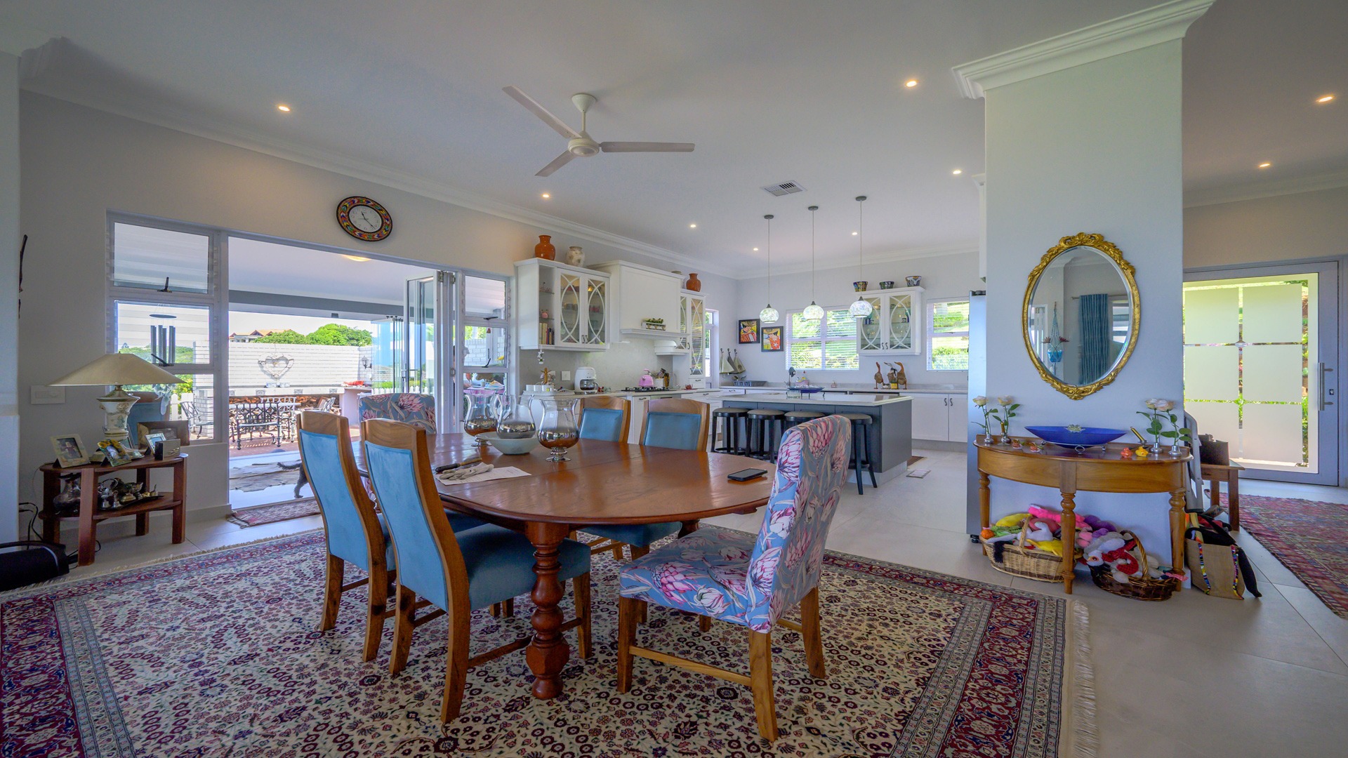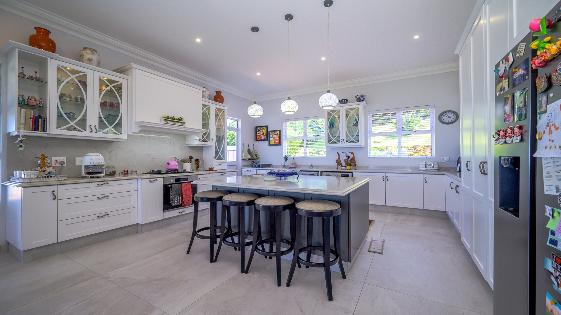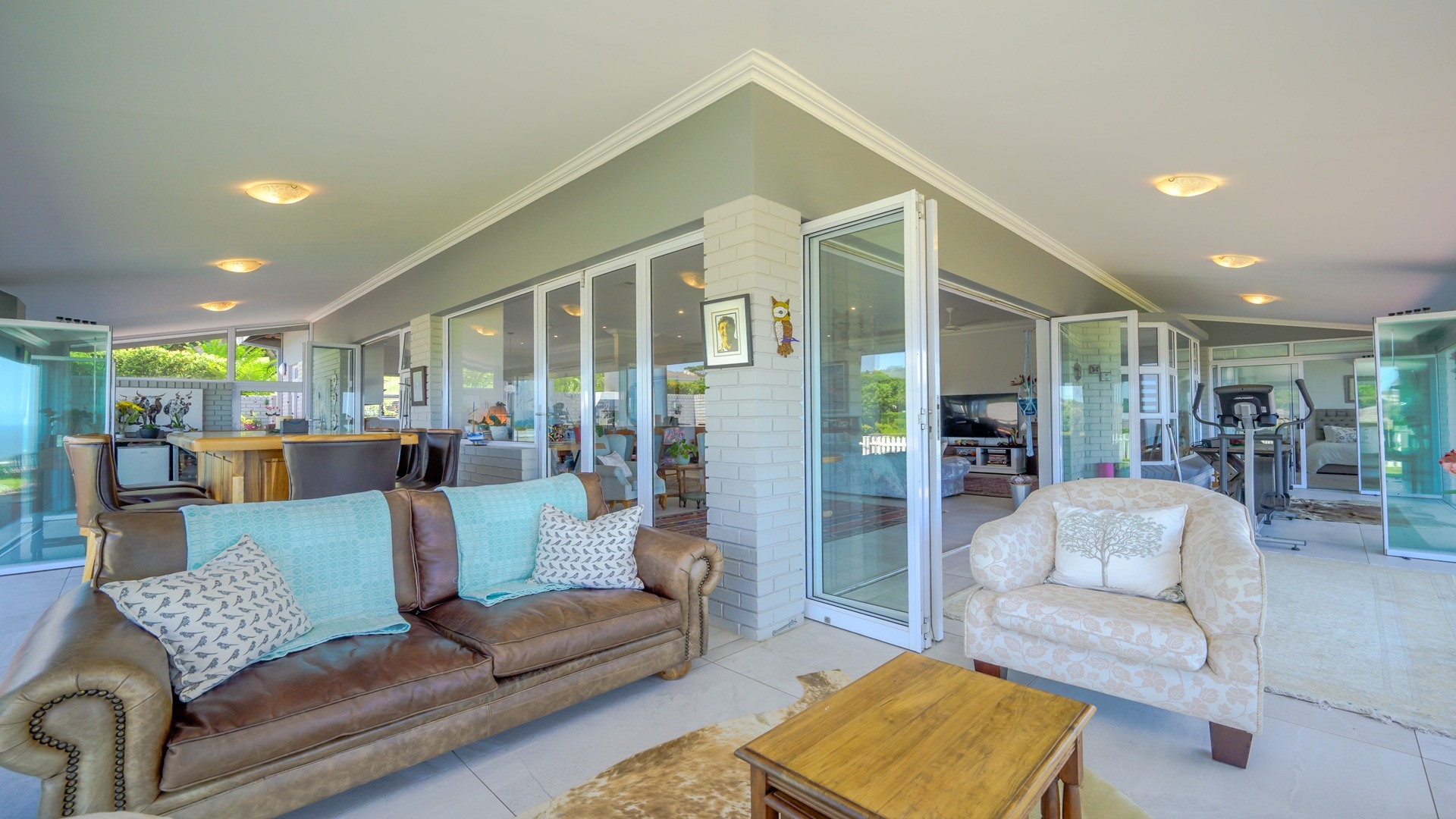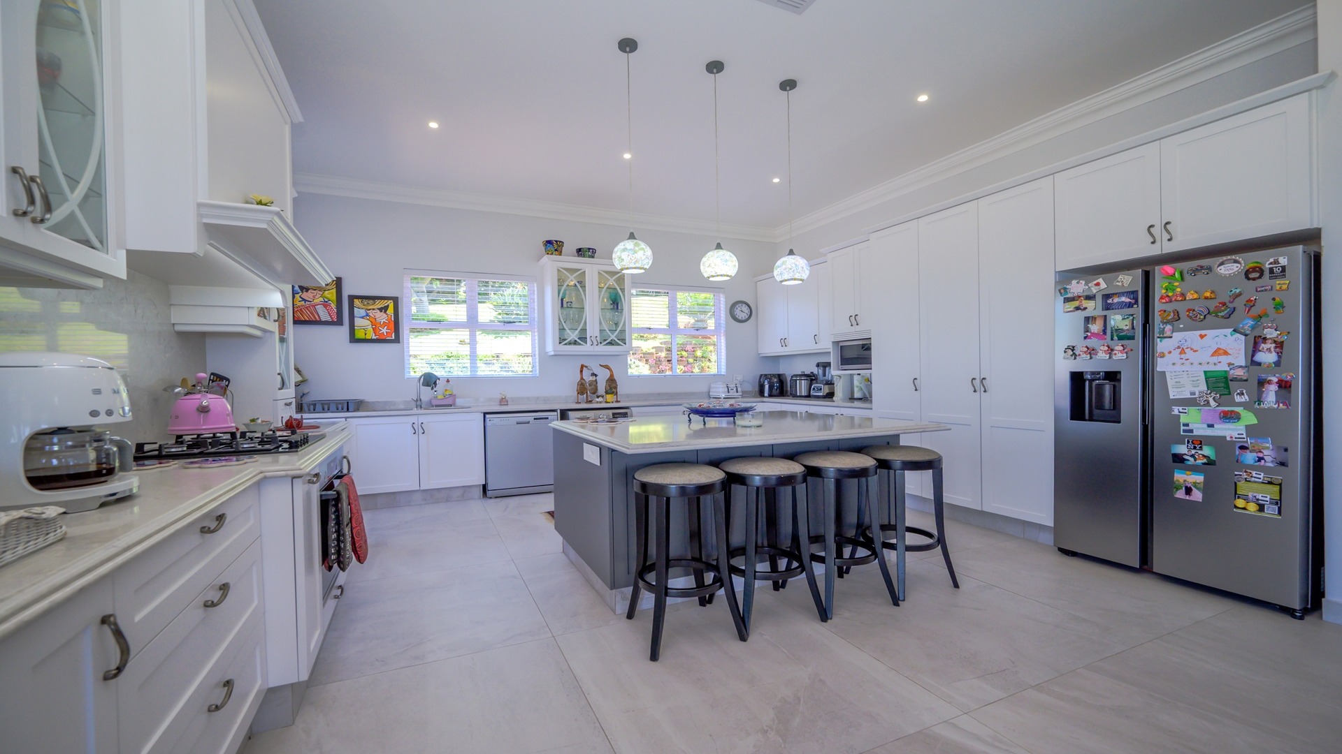 The home’s seamless indoor-outdoor integration is further enhanced by a large wrap-around patio enclosed with stack doors, leading to a built-in braai and entertainment area, for great times with family and friends, whilst enjoying uninterrupted views.