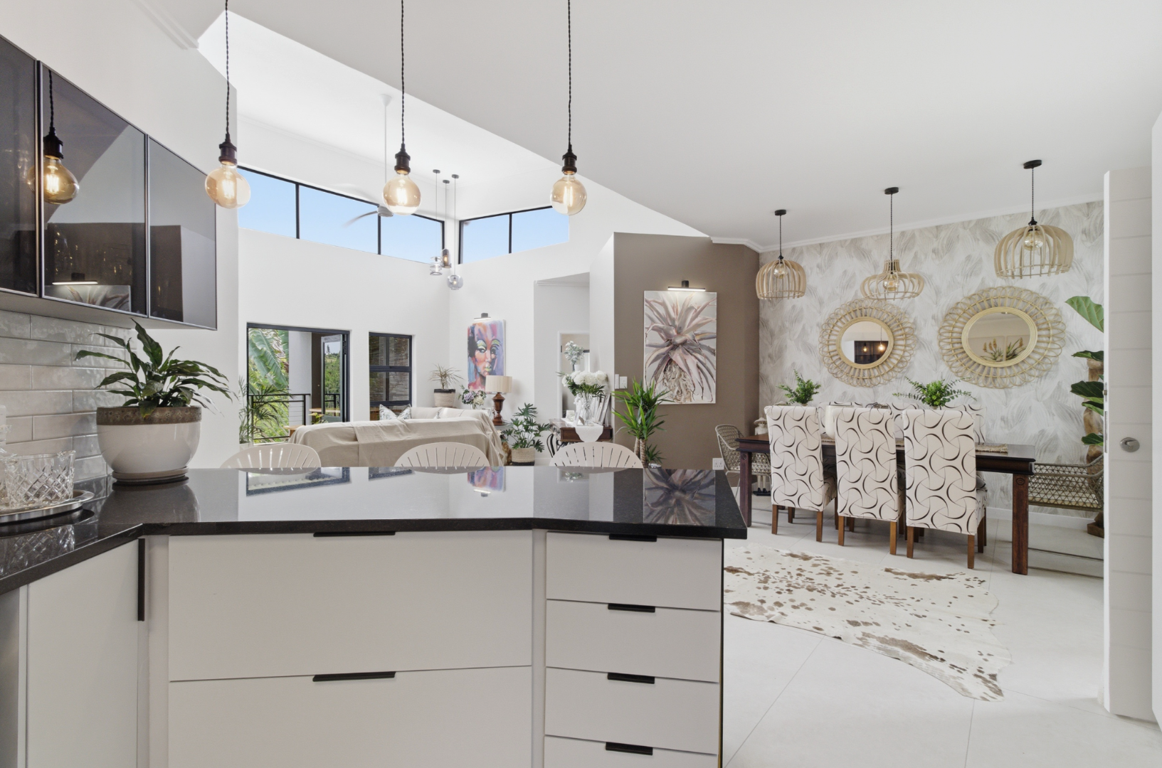 Step inside to discover a light-filled open-plan living space where the contemporary kitchen flows effortlessly into the dining and lounge areas, creating a welcoming environment ideal for both relaxed everyday living and effortless entertaining. Large sliding doors open onto a covered patio, where uninterrupted views across the dam provide the perfect backdrop for morning coffee or evening sundowners.