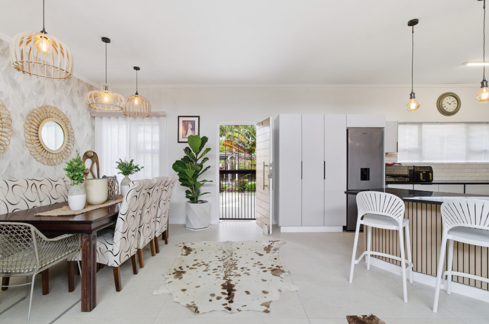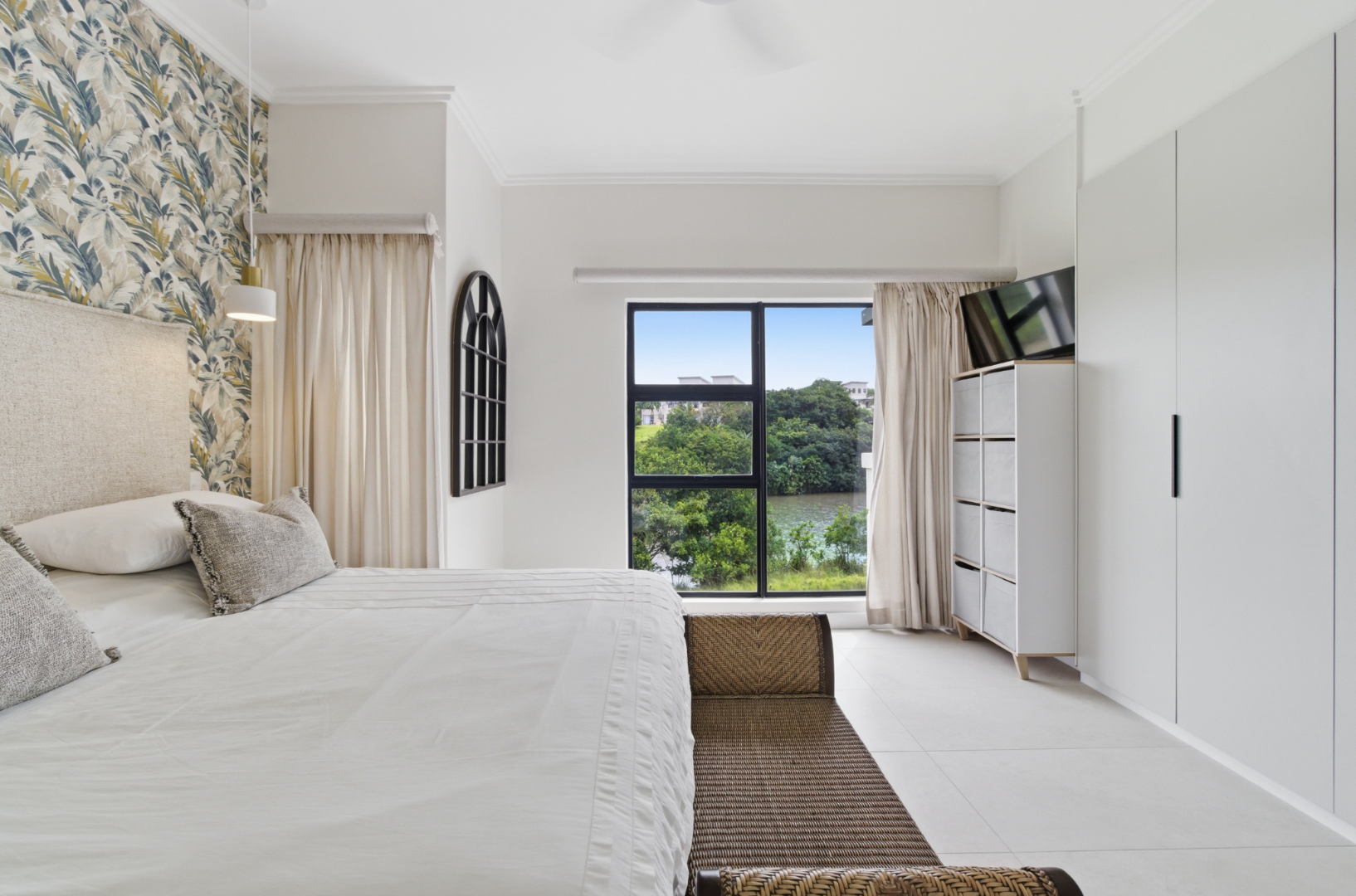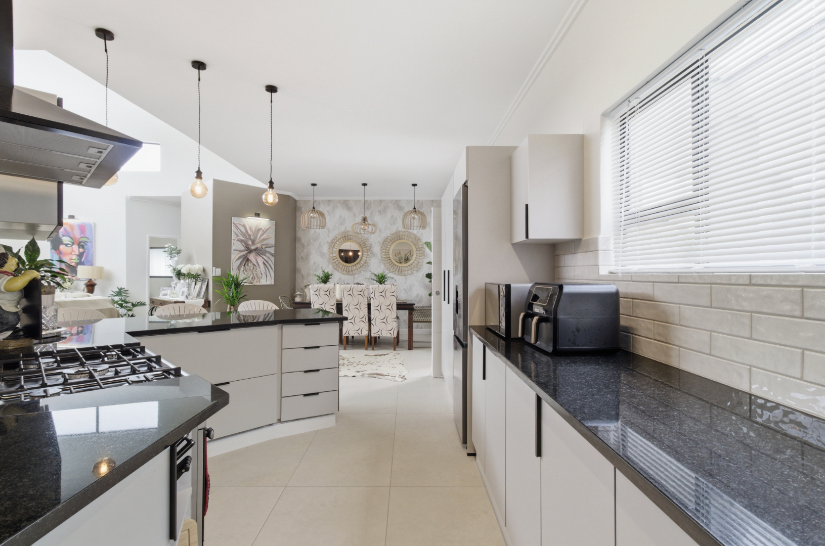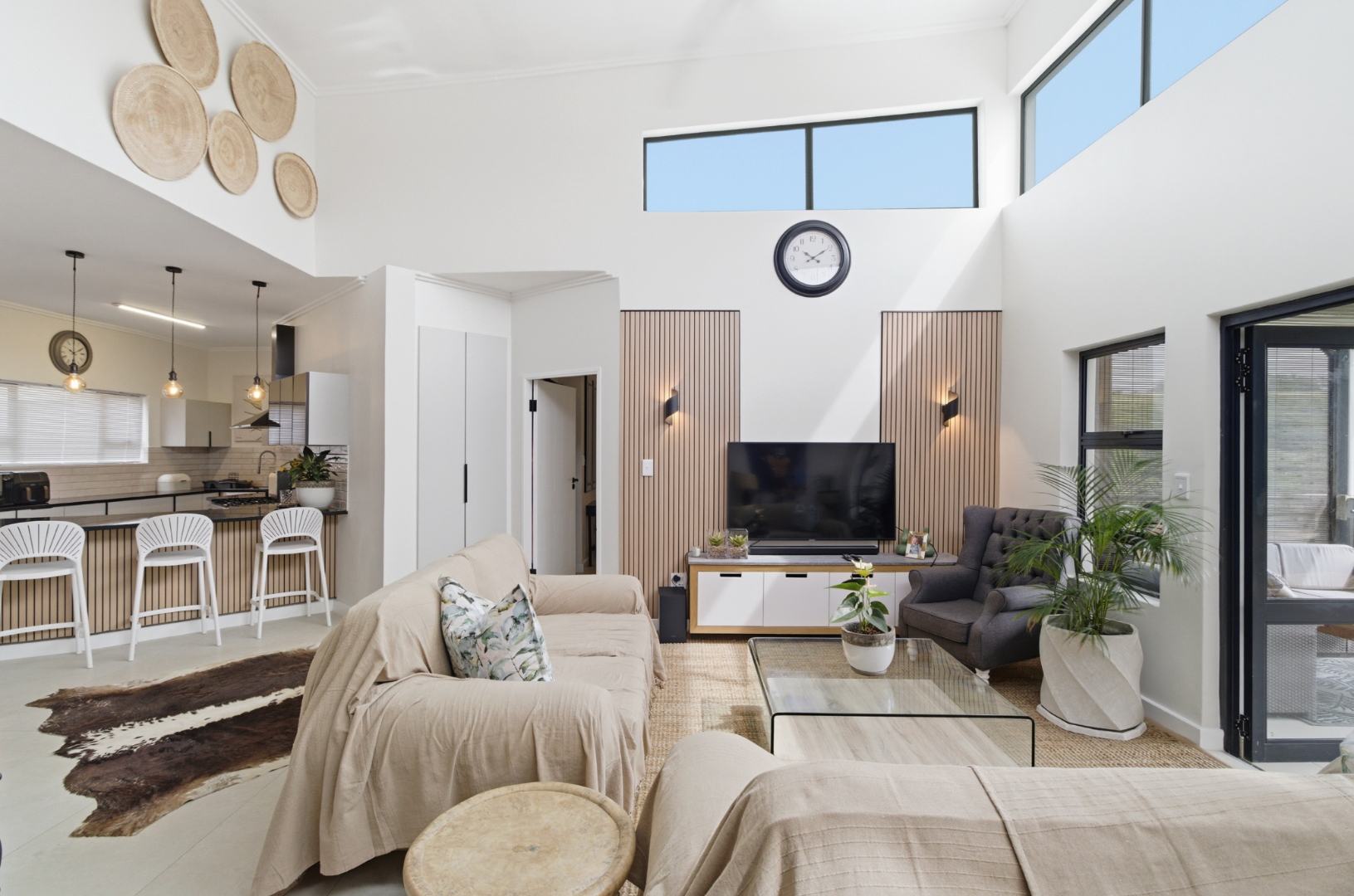 Step inside to discover a light-filled open-plan living space where the contemporary kitchen flows effortlessly into the dining and lounge areas, creating a welcoming environment ideal for both relaxed everyday living and effortless entertaining. Large sliding doors open onto a covered patio, where uninterrupted views across the dam provide the perfect backdrop for morning coffee or evening sundowners.