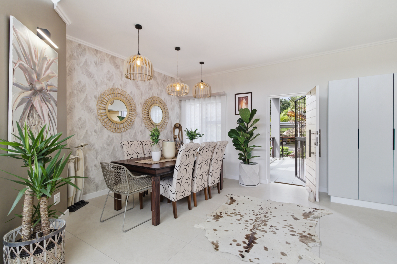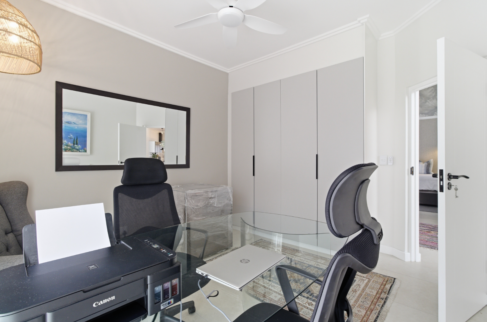 The generous main bedroom is a peaceful retreat, complete with its own stylish en-suite bathroom and ample cupboard space. Two additional bedrooms are well-sized and share a sleek, modern bathroom, making the home perfectly suited to families, guests, or a work-from-home setup.