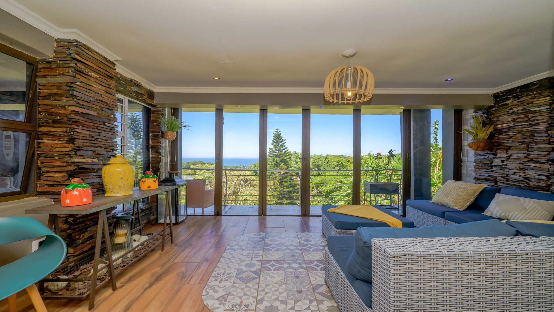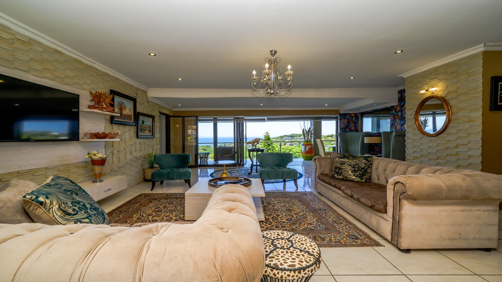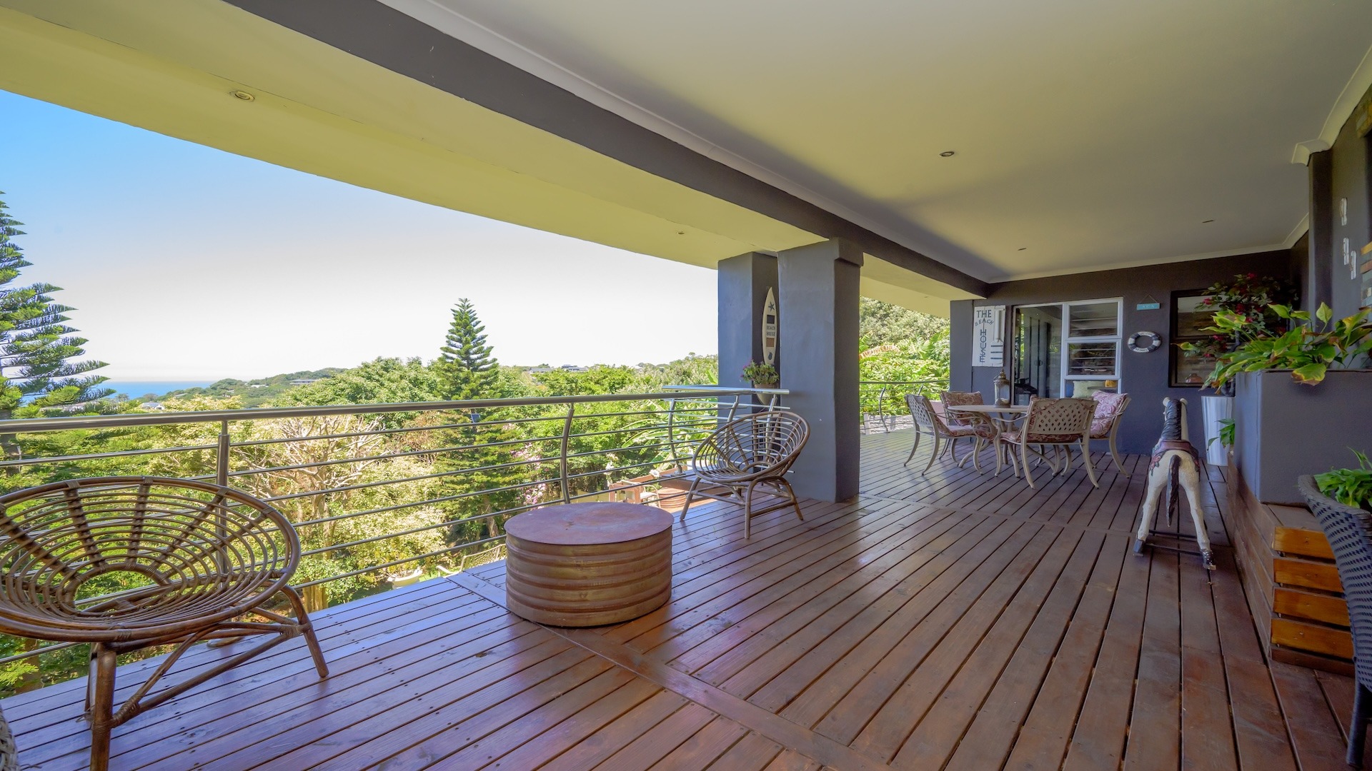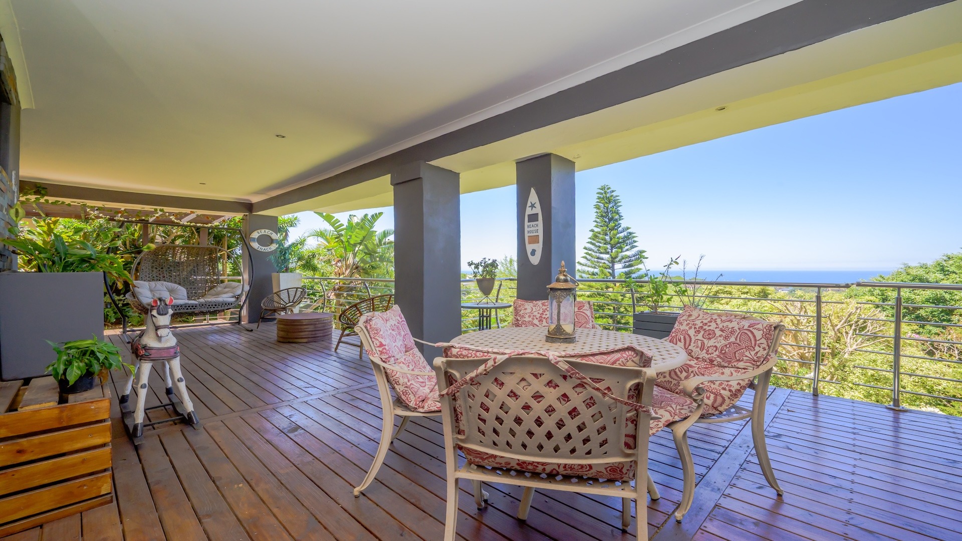 Accommodation comprises five well-proportioned bedrooms and four bathrooms, three of which are en-suite, ensuring privacy and convenience for all residents. The thoughtful design extends to the outdoor areas, where a spacious patio, deck, and balcony invite residents to enjoy the scenic and sea views. The property is pet-friendly and includes staff quarters and domestic rooms, adding to its practical appeal.