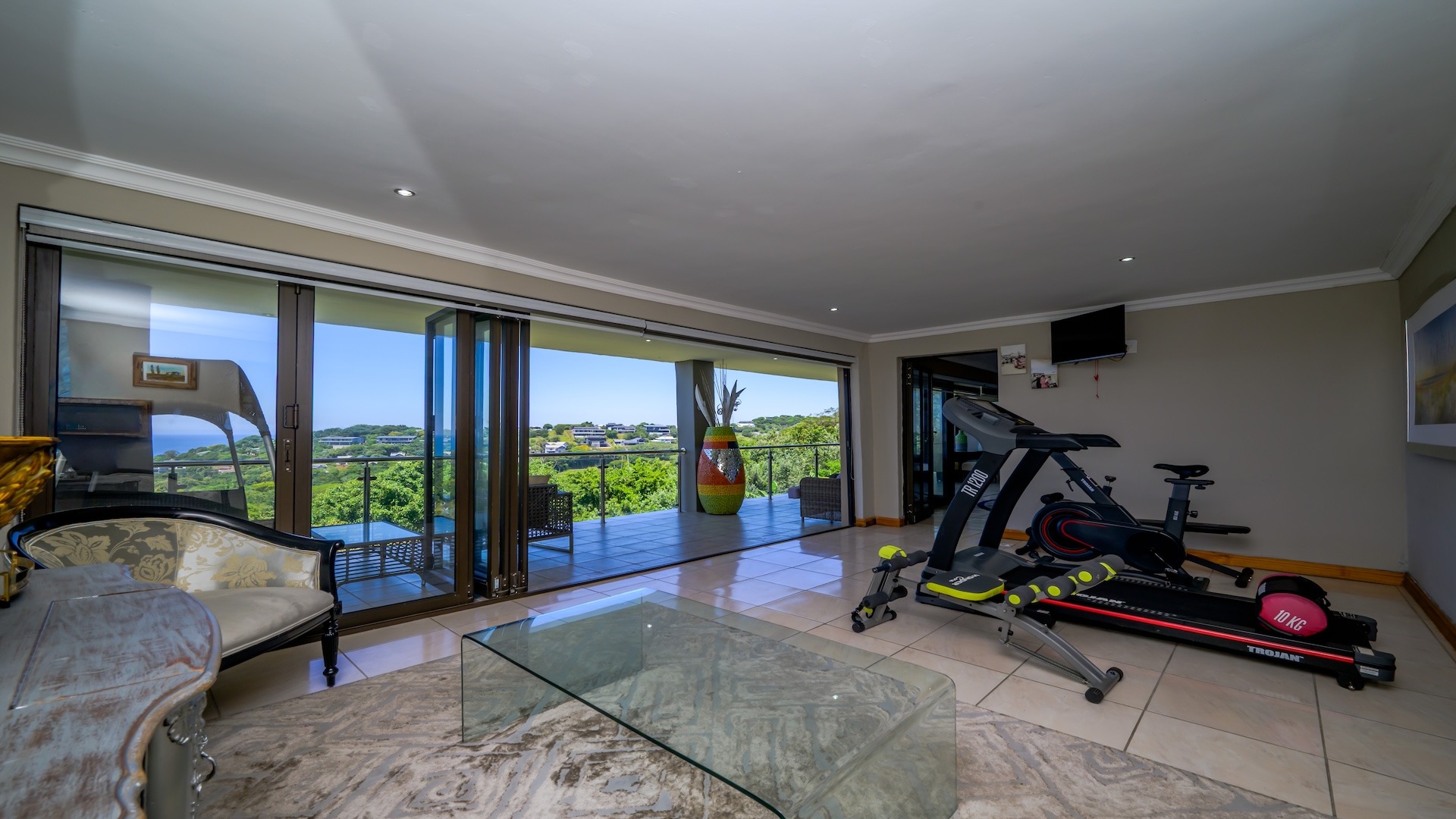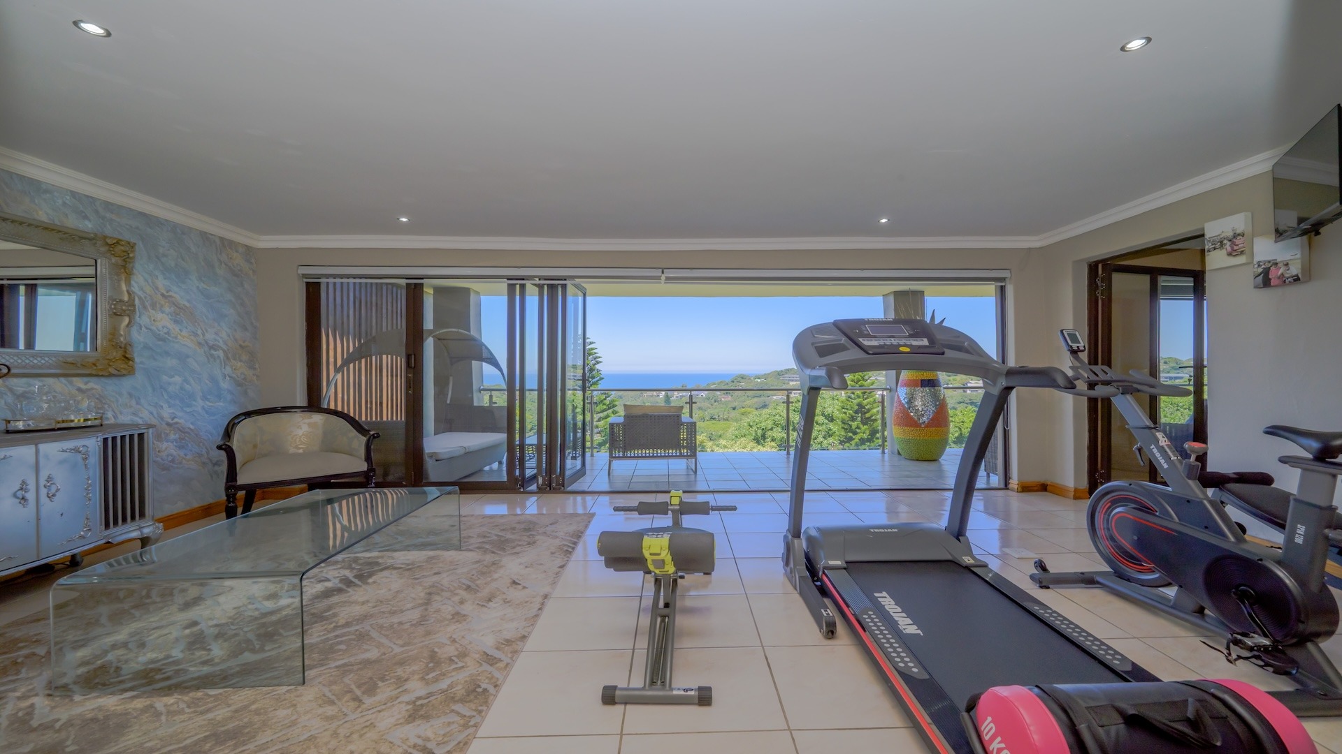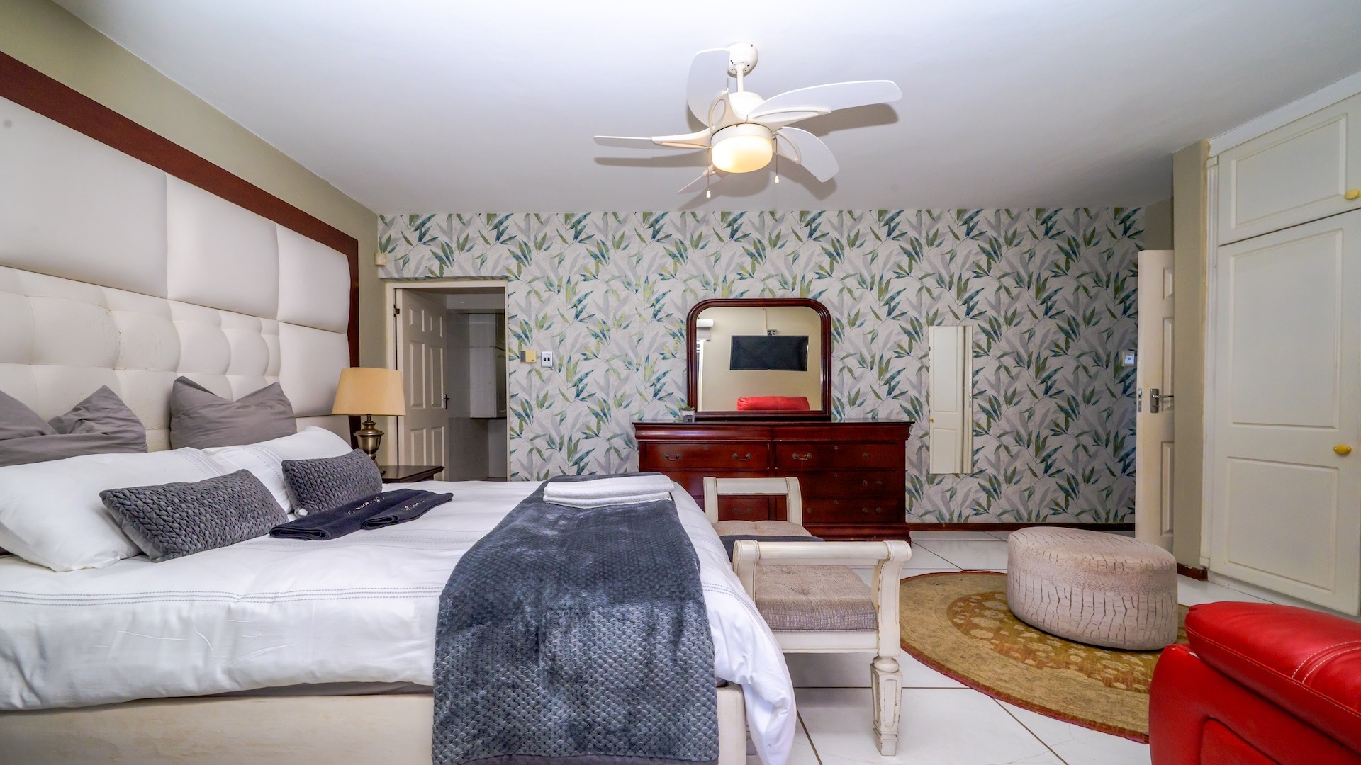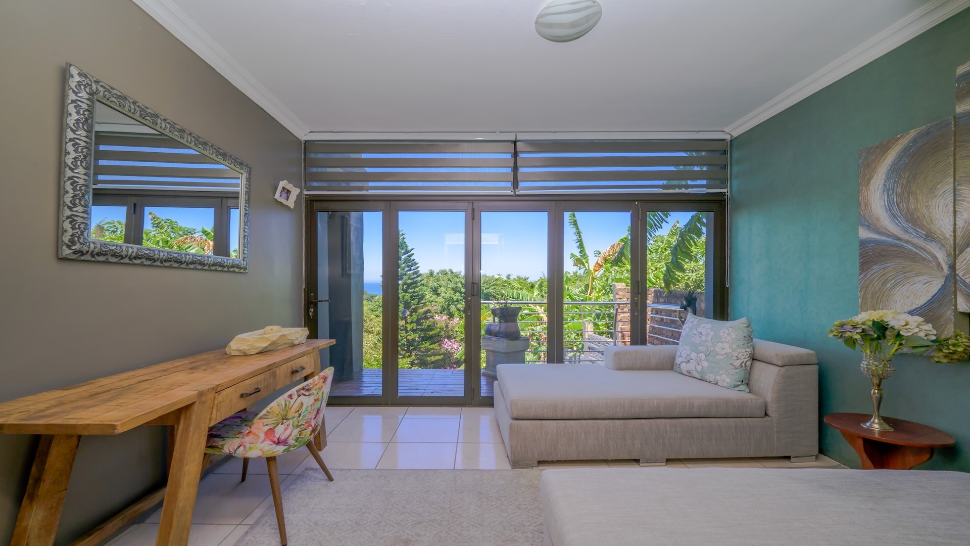 Accommodation comprises five well-proportioned bedrooms and four bathrooms, three of which are en-suite, ensuring privacy and convenience for all residents. The thoughtful design extends to the outdoor areas, where a spacious patio, deck, and balcony invite residents to enjoy the scenic and sea views. The property is pet-friendly and includes staff quarters and domestic rooms, adding to its practical appeal.