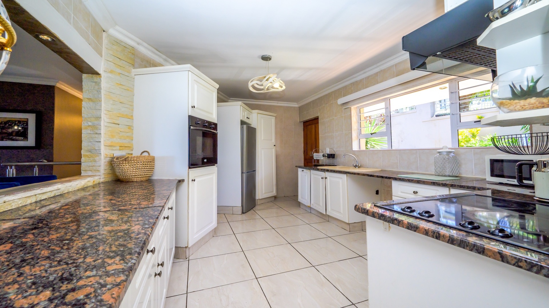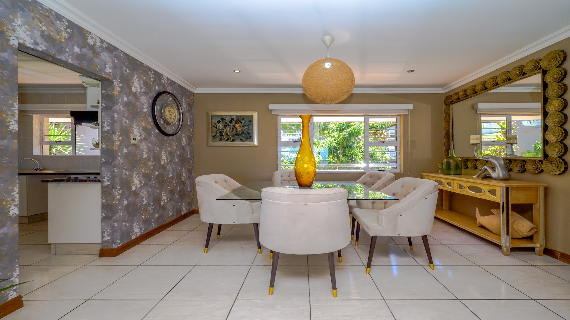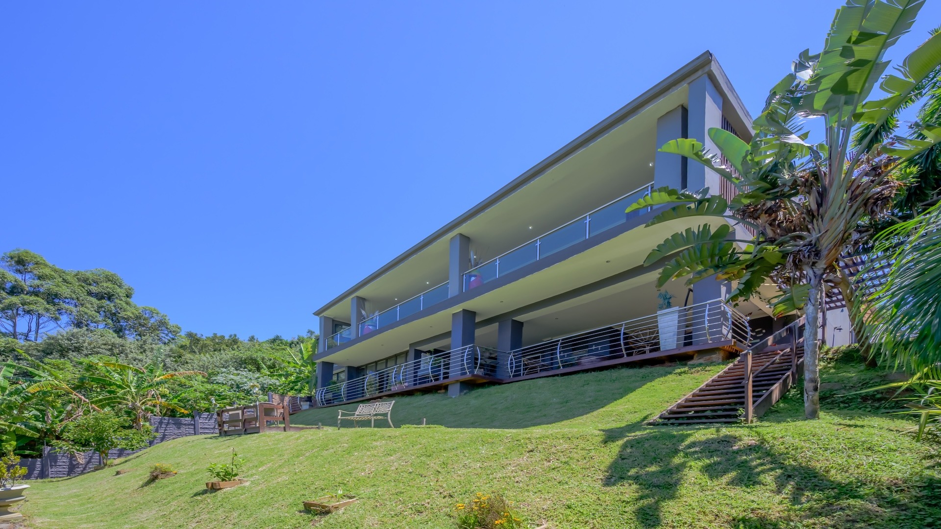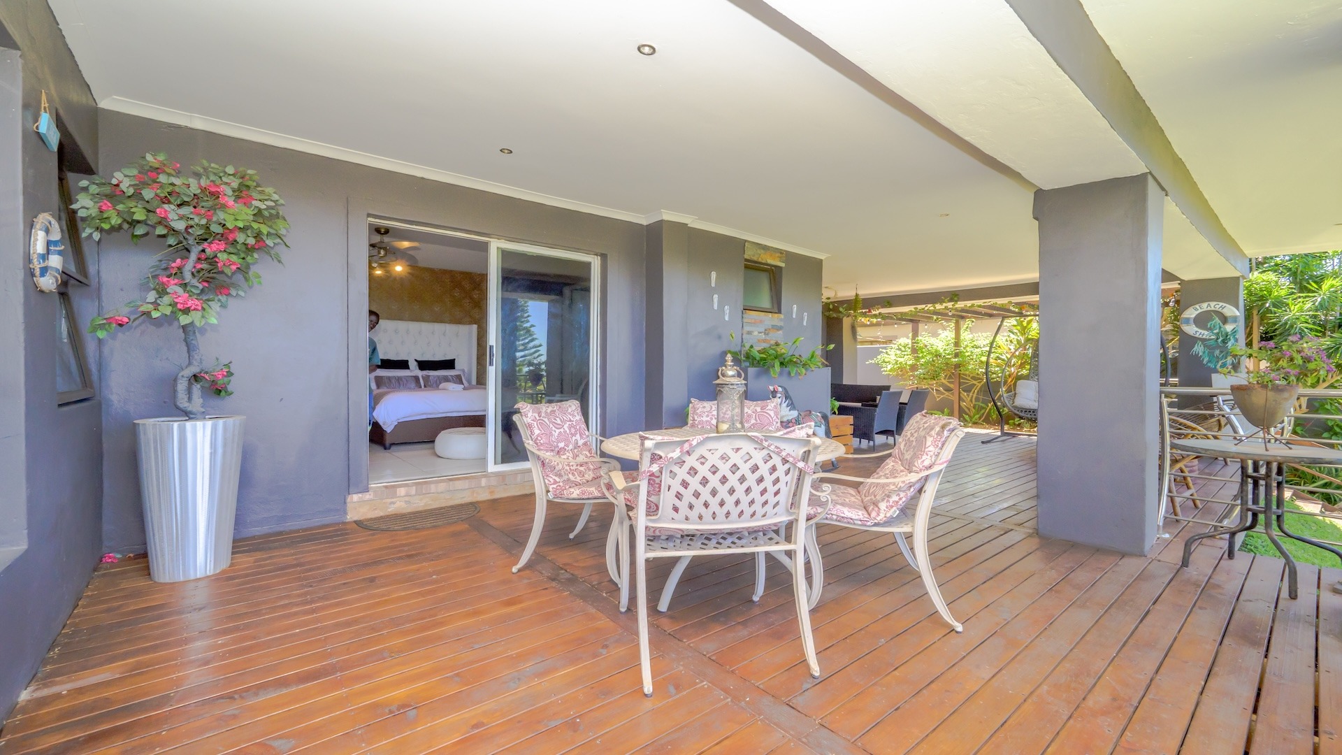 Discover this exceptional residential property nestled in a tranquil cul-de-sac within the desirable coastal suburb of Salt Rock, Ballito. This spacious home, set on a generous 1255 sqm erf, offers a blend of comfort and functionality, ideal for family living in South Africa's picturesque KwaZulu-Natal region. The property boasts a welcoming kerb appeal, featuring a well-maintained garden and paving leading to the entrance.