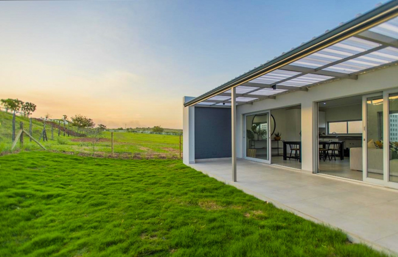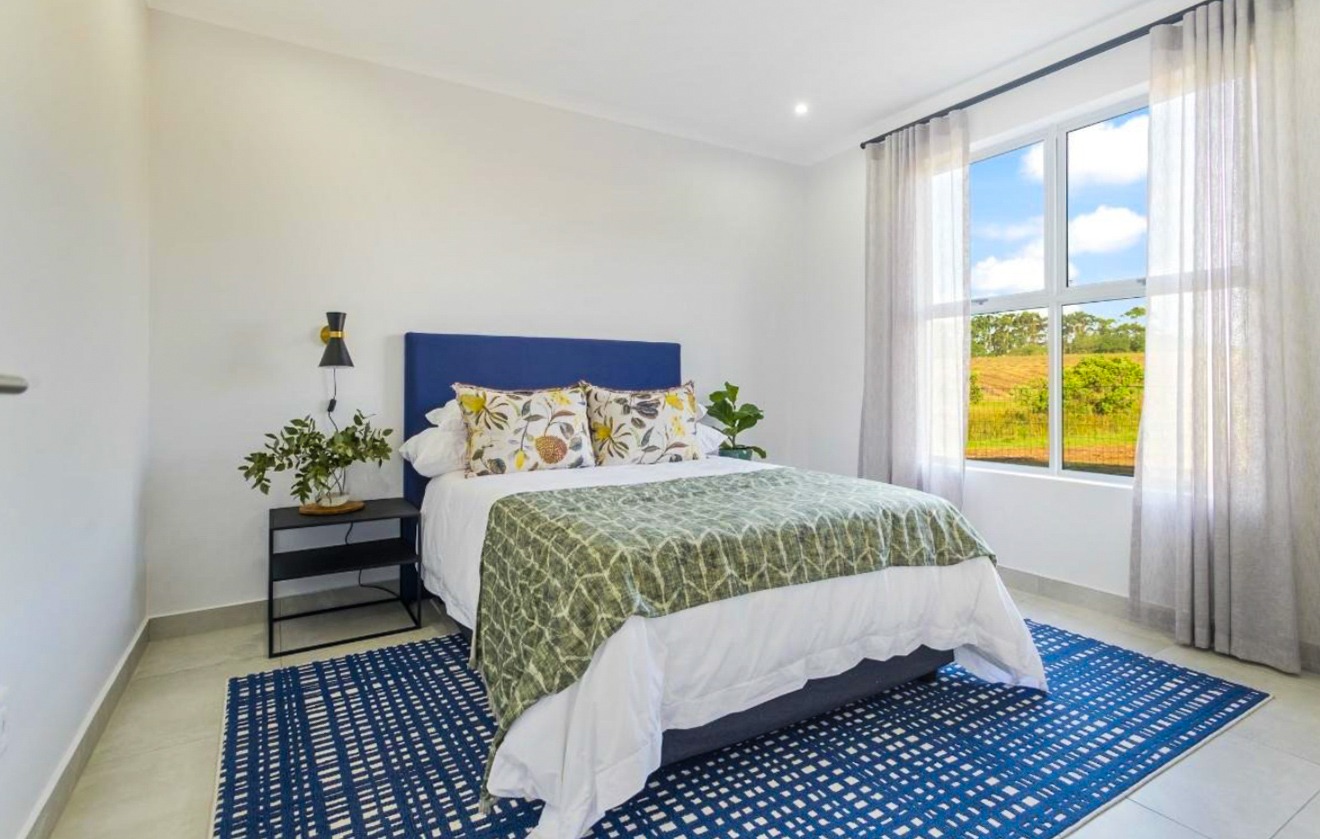 Discover an exquisite modern sanctuary nestled within a prestigious security estate in Sheffield Beach, Ballito. This sophisticated 150 sqm residence epitomizes contemporary luxury, offering a harmonious blend of elegant design and seamless indoor-outdoor living. The luminous open-plan interior encompasses a chic lounge, a dedicated dining area, and a state-of-the-art kitchen, all bathed in abundant natural light streaming through expansive sliding glass doors. These doors effortlessly connect the living spaces to a private paved patio and a verdant lawn, creating an idyllic setting for relaxation and entertaining.