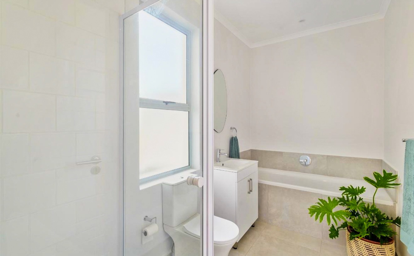 This meticulously designed home features two generously proportioned bedrooms and two impeccably appointed bathrooms, ensuring comfort and privacy for residents. Each space is crafted with a clean aesthetic, neutral palettes, and modern finishes, providing a serene retreat. The property’s kerb appeal is undeniable, with its striking modern architecture, pristine white exterior, and a welcoming paved driveway, hinting at the refined lifestyle within.