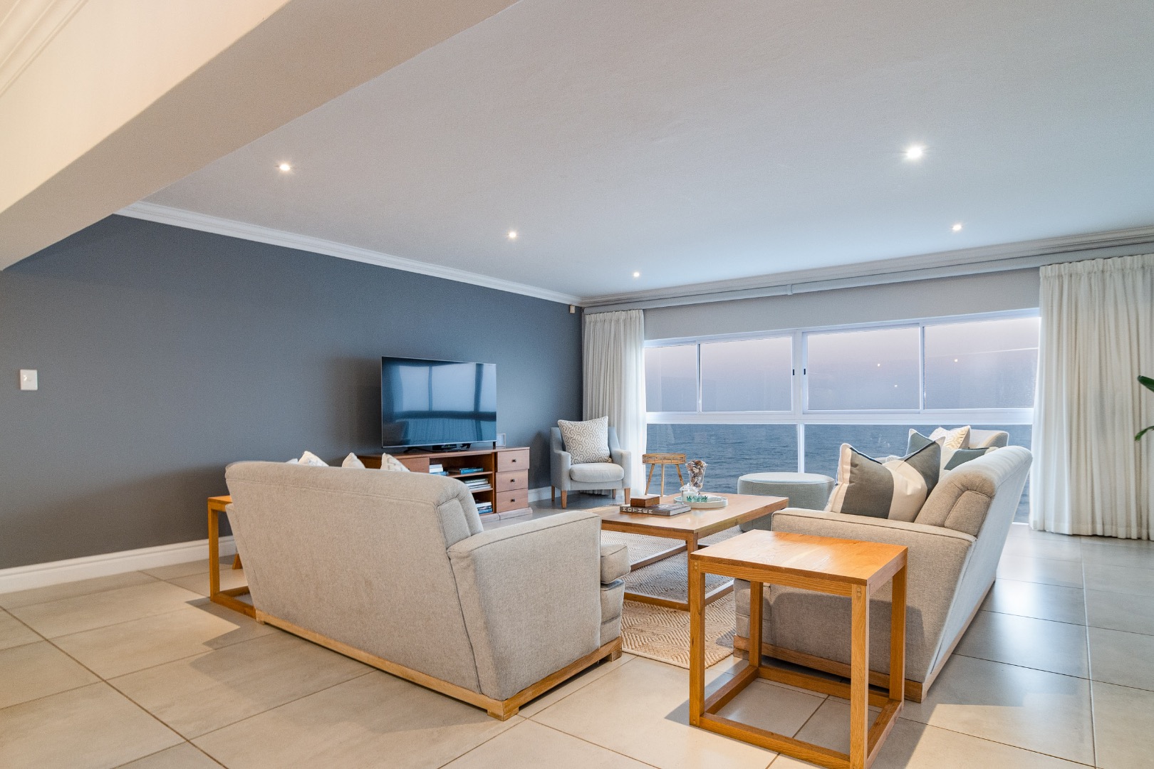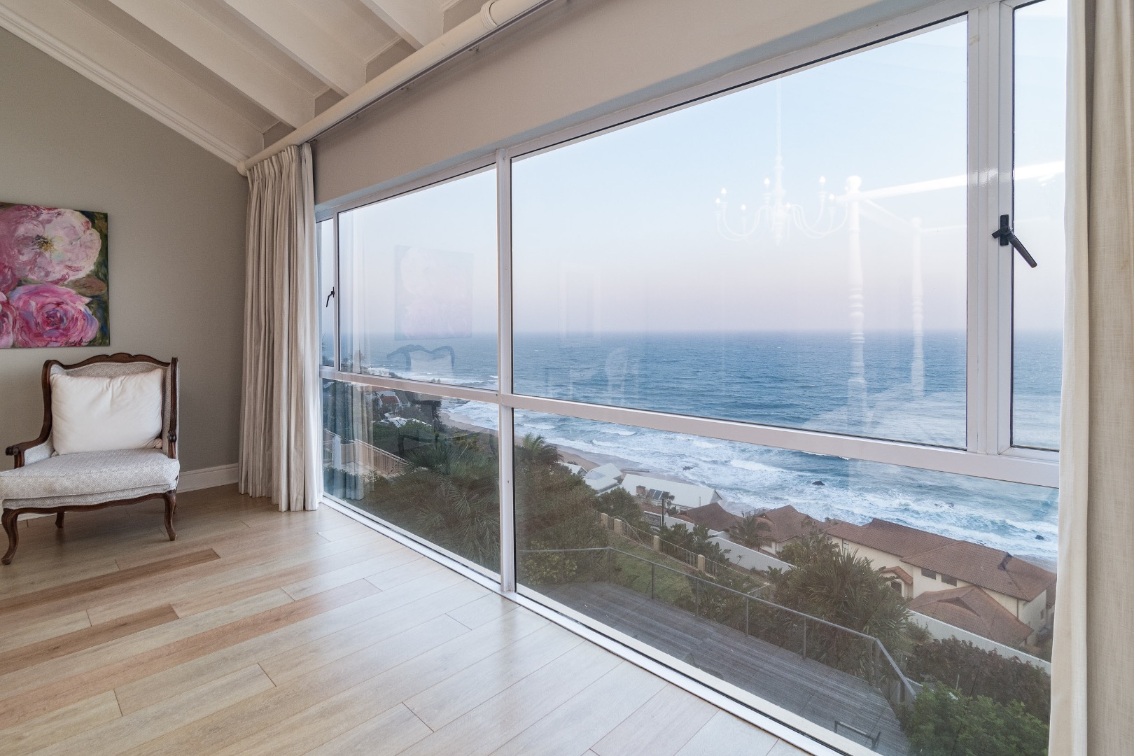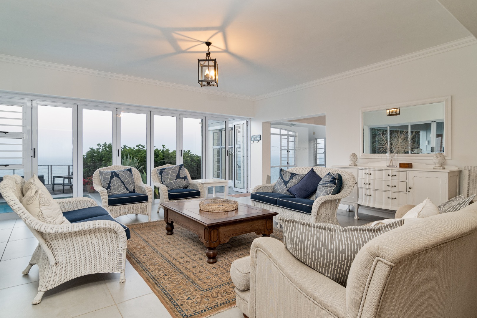 with large floor-to-ceiling windows and soaring ceilings that showcase the stunning ocean views and flood the space with natural light. The