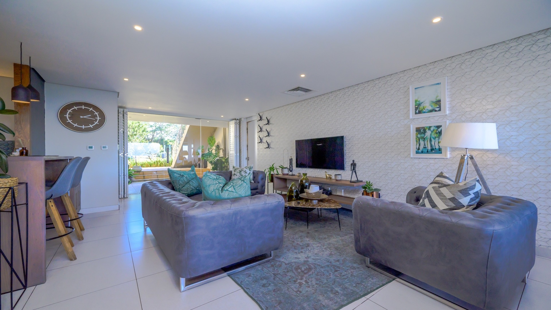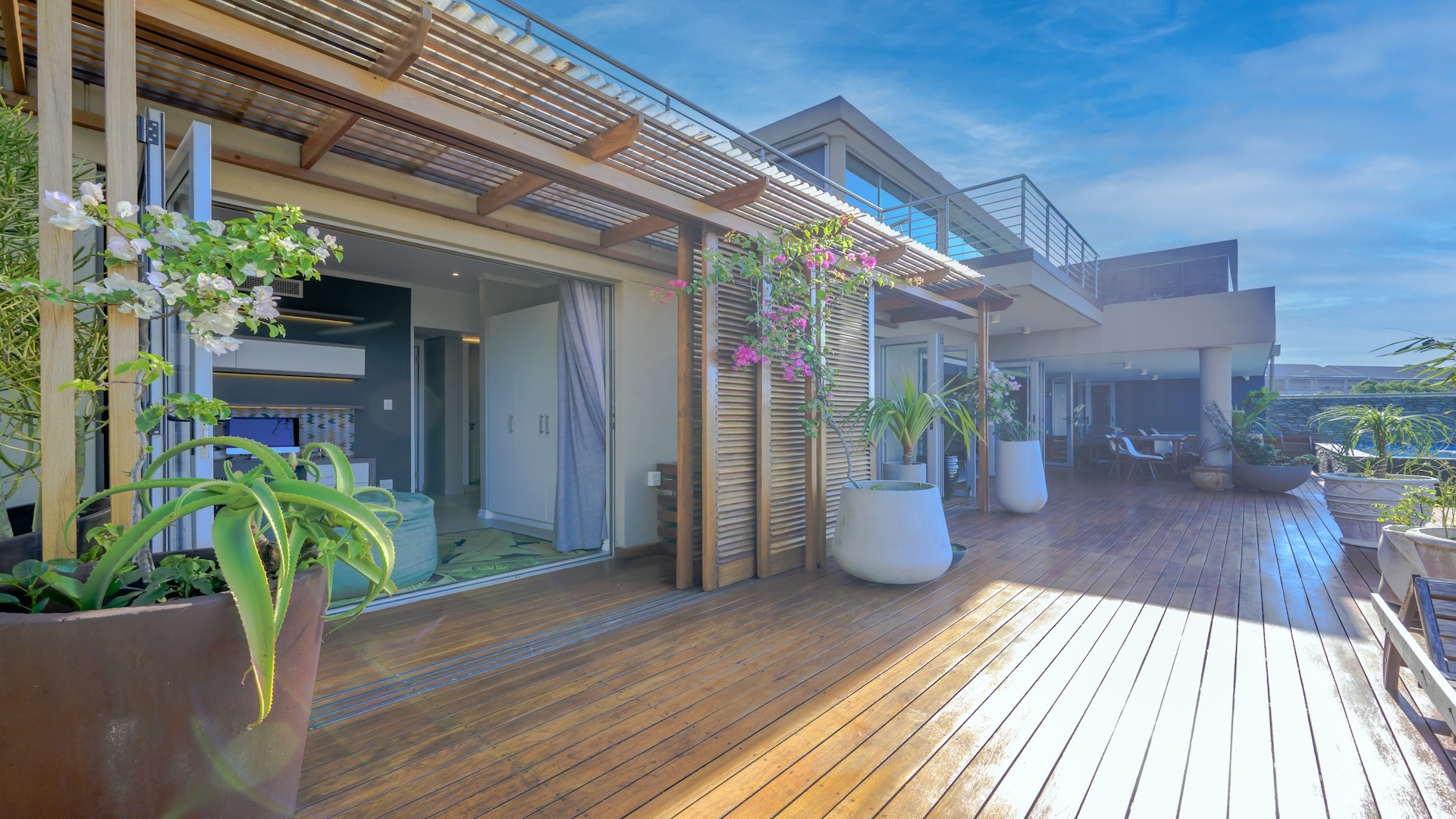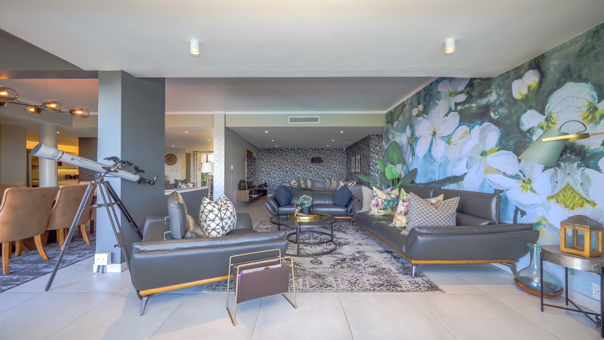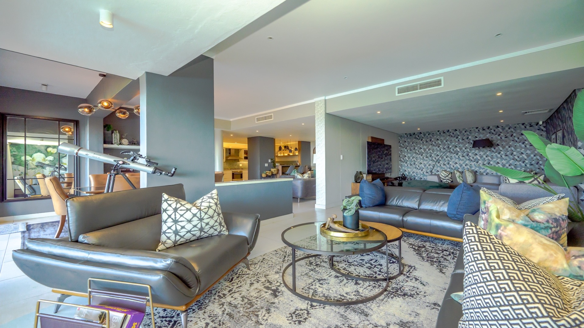 This exquisite sectional titled apartment boasts an expansive open-plan design, seamlessly connecting living, dining, and kitchen spaces, creating an inviting and fluid atmosphere perfect for entertaining and relaxed living.