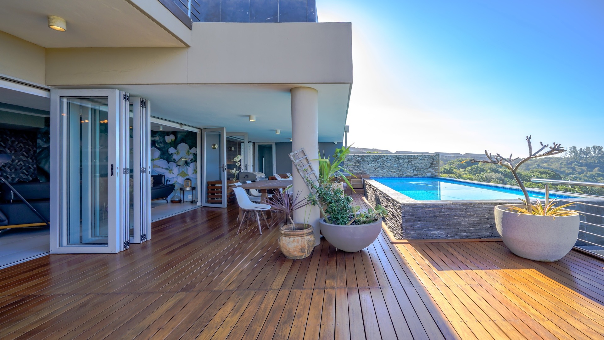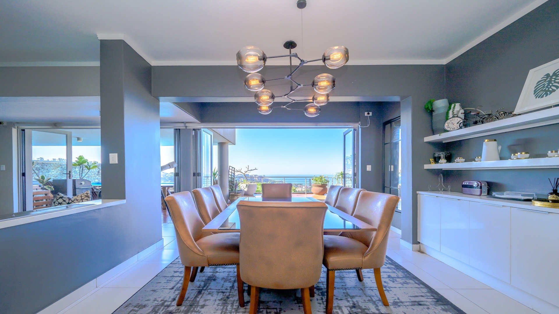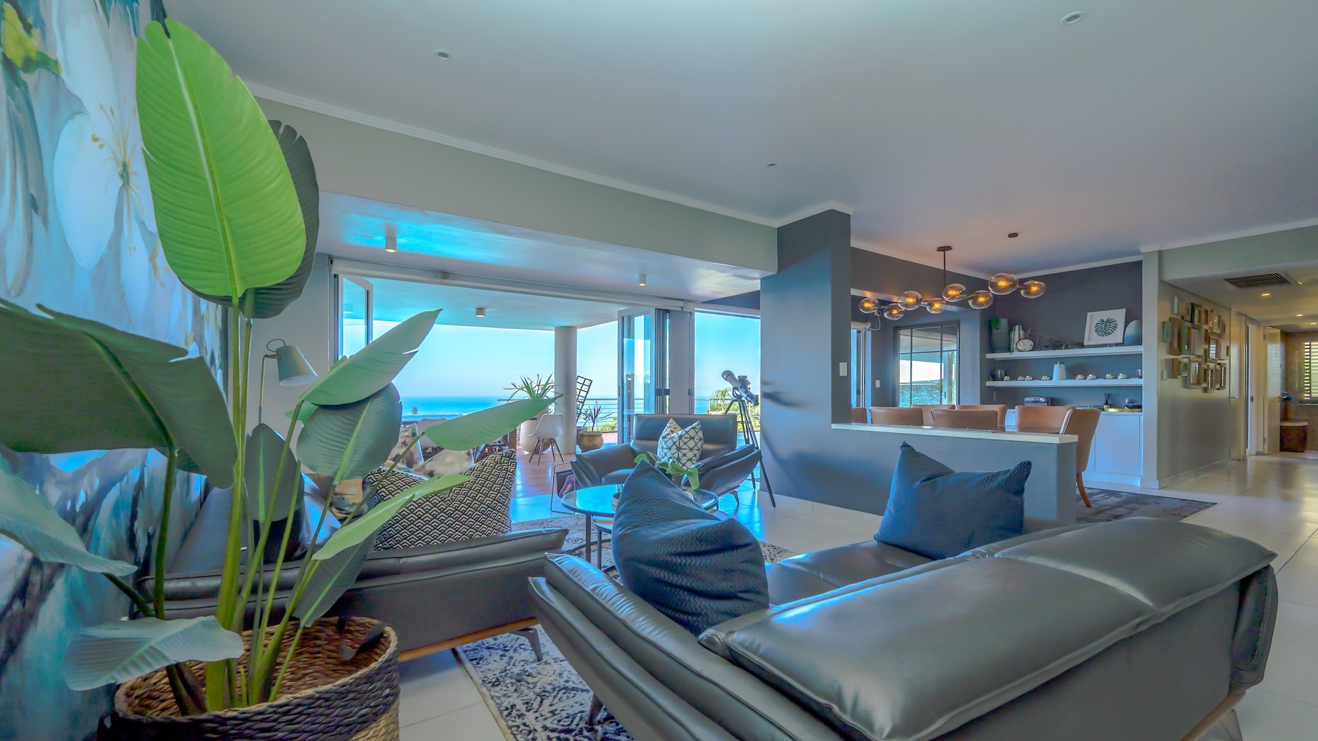 The heart of the home, offering uninterrupted flow from the kitchen to the lounge and dining area, creating a harmonious space for daily living or entertaining guests. Sliding doors lead out to a private terrace with breath taking views of the ocean.