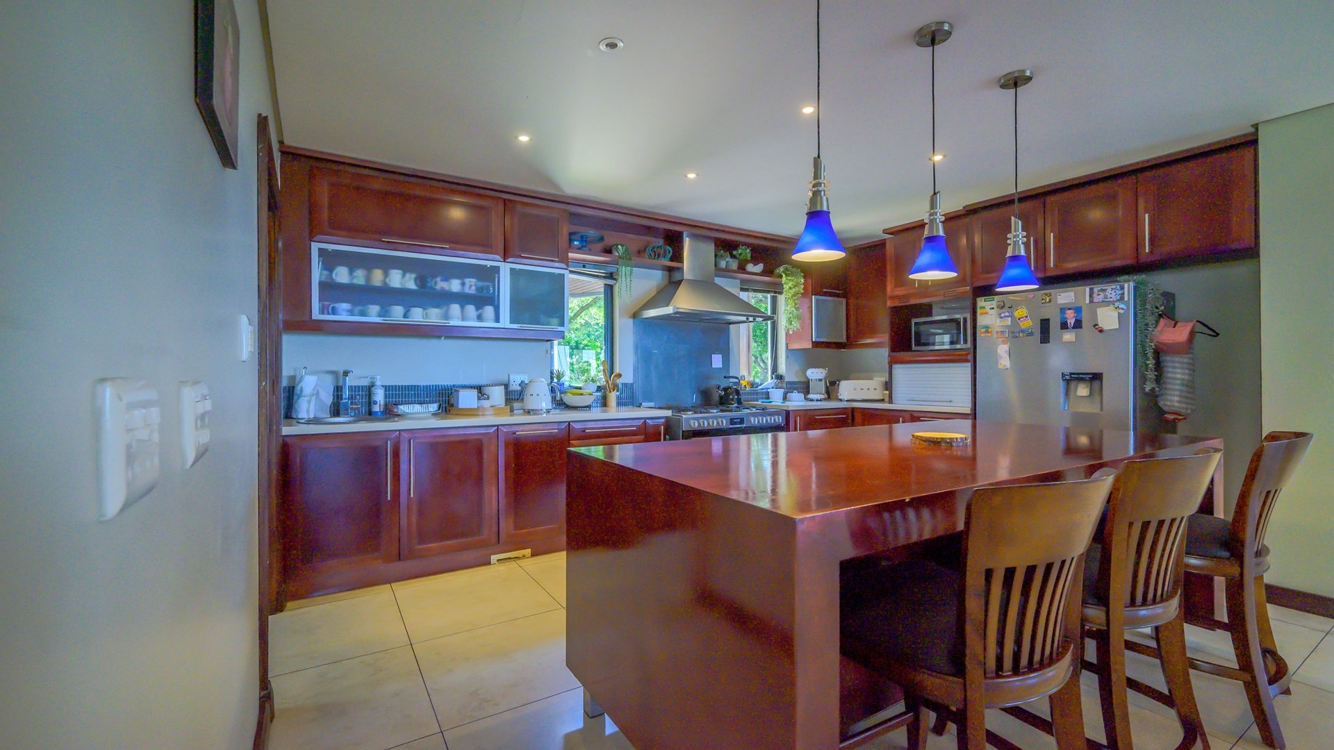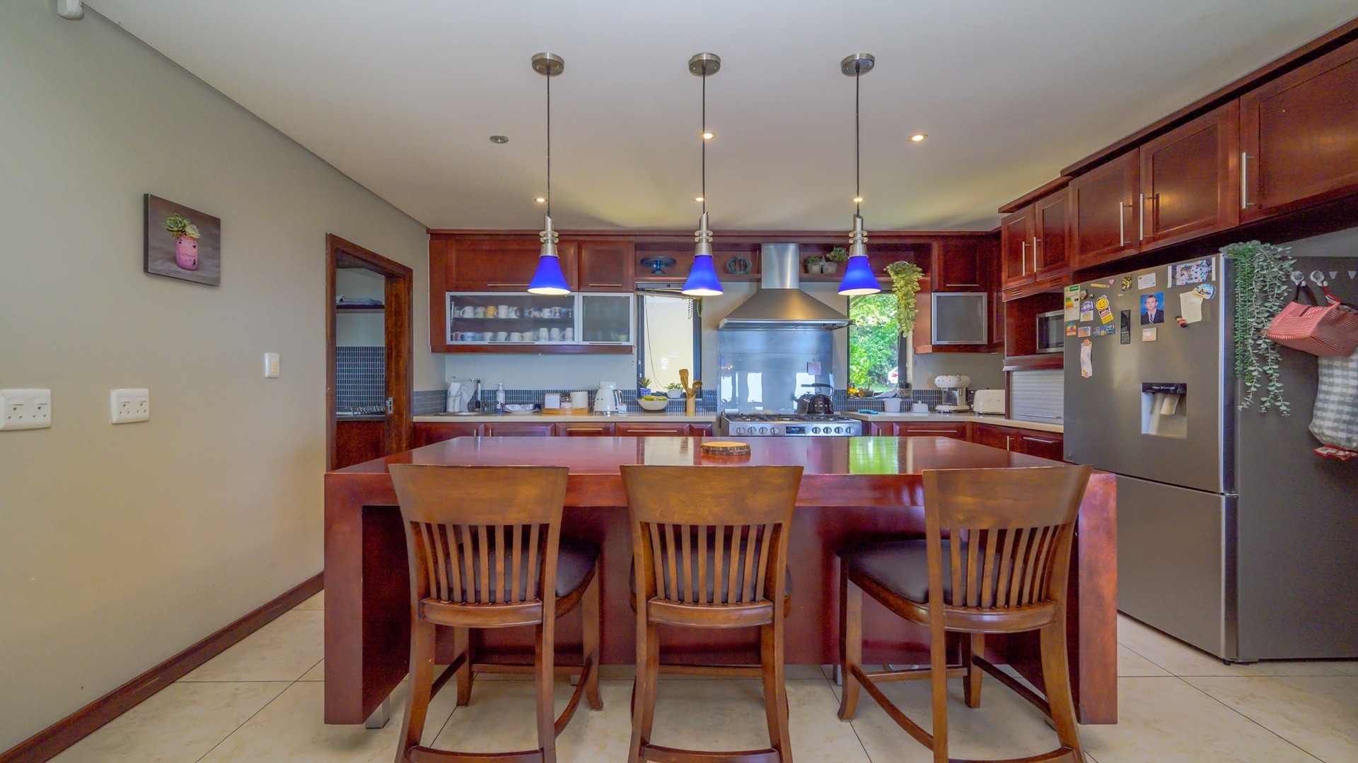 As you step inside, you are welcomed by an open and airy layout, where the living areas seamlessly flow onto an expansive patio—perfect for entertaining while enjoying the magnificent sea views. The well-appointed kitchen boasts ample cupboard space and leads into a separate scullery for added functionality.