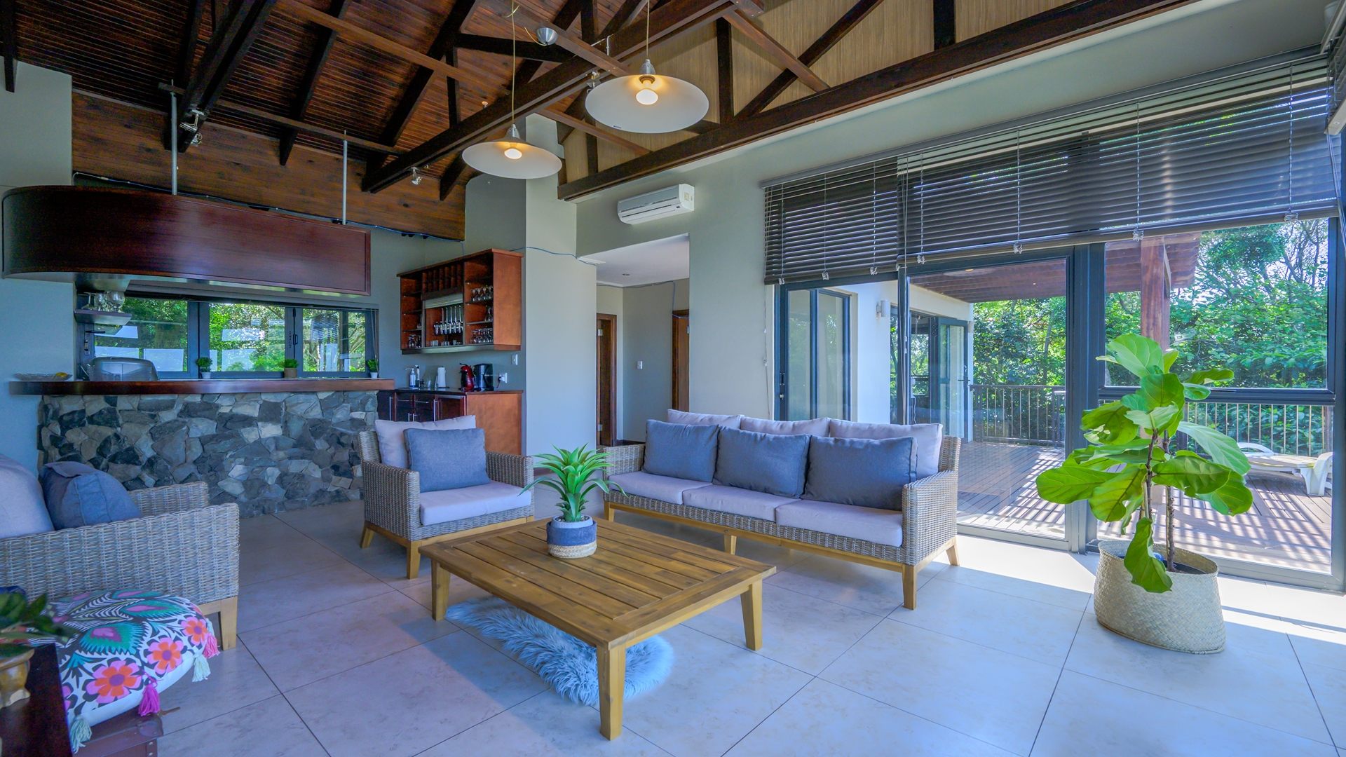 - Elegant bar area leading onto a second, sheltered patio—ideal for use during inclement weather