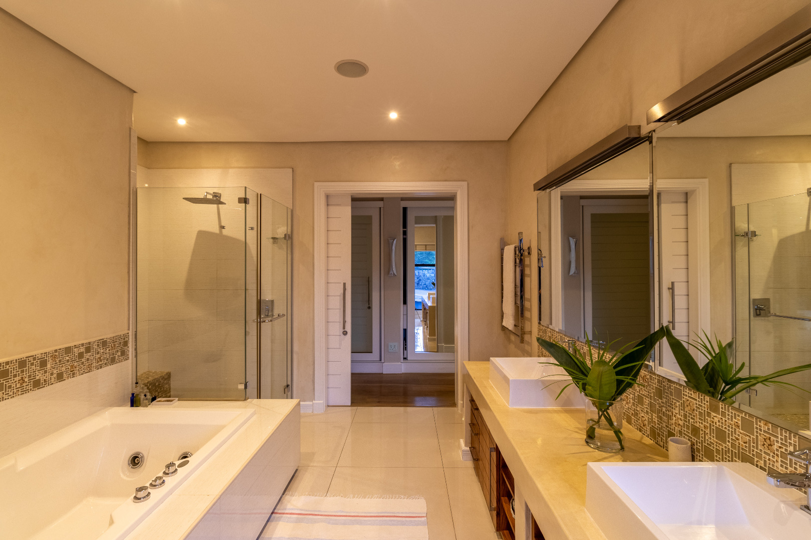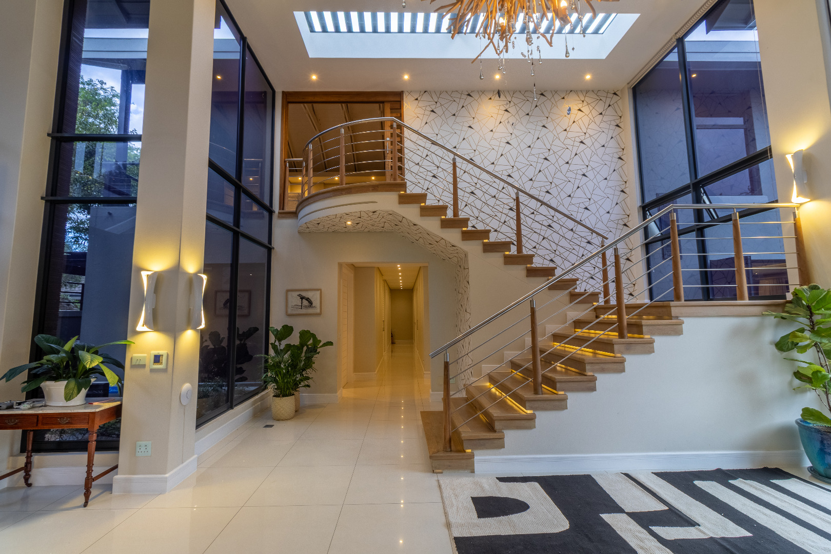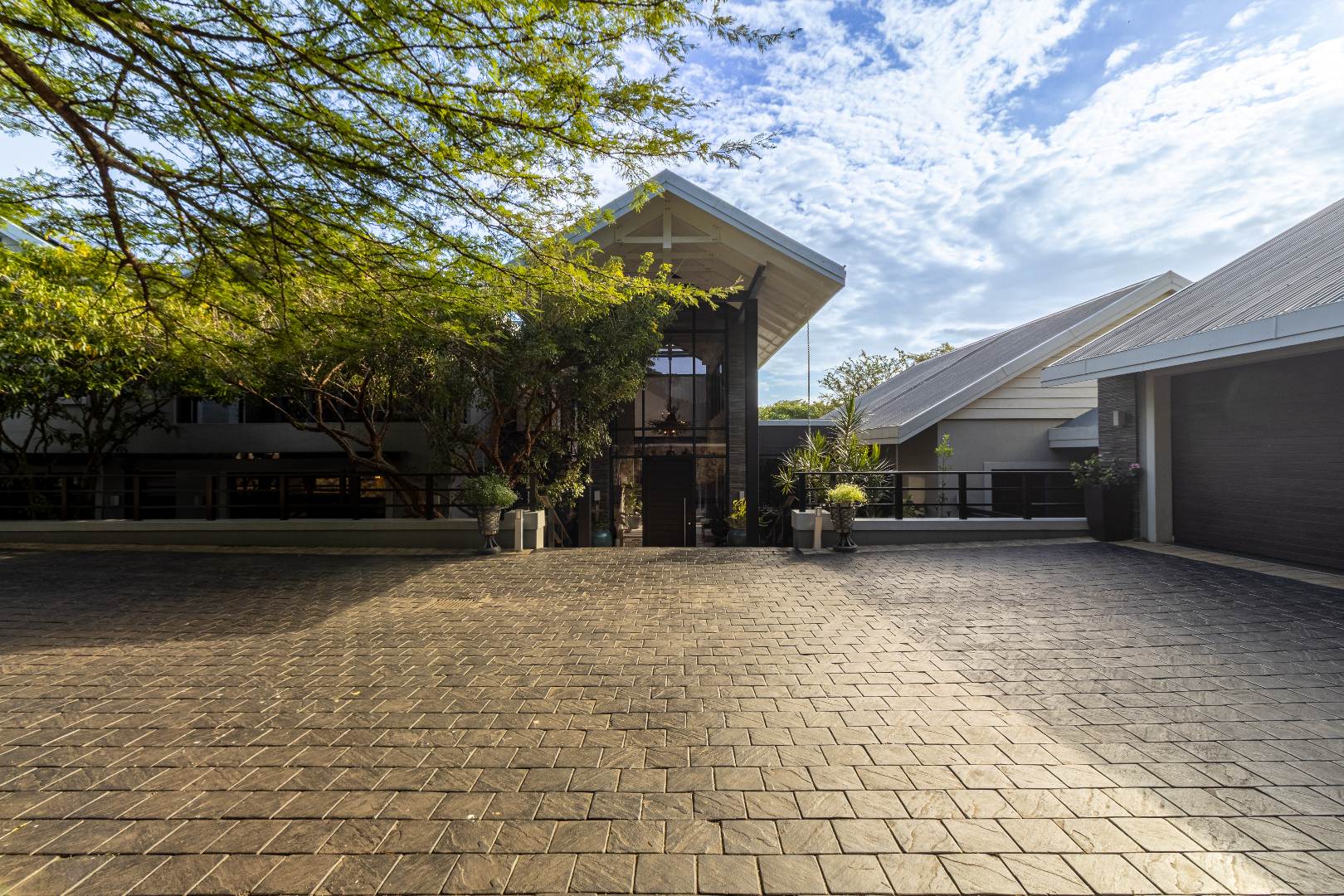 As you approach the home, you're welcomed by a dramatic double-volume glass entrance, setting the tone for what lies beyond. The architecture blends earthy textures with sleek modern finishes, creating a seamless connection between luxury living and nature.