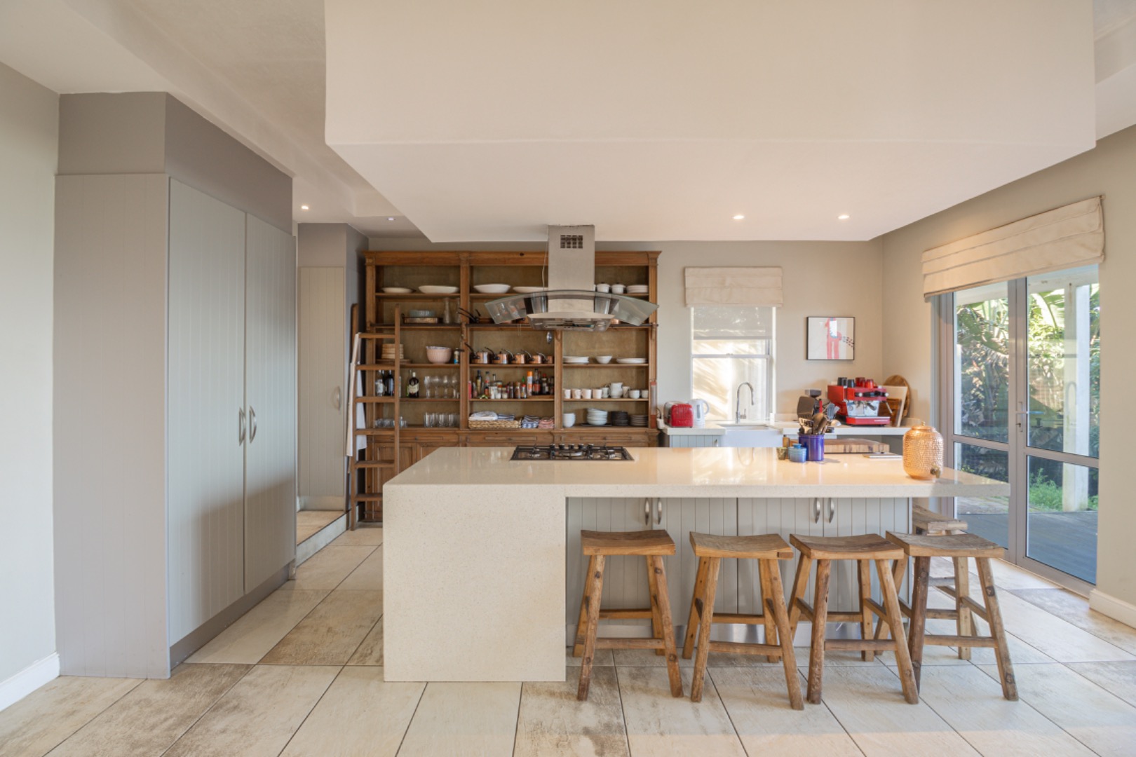 The heart of the home is a contemporary kitchen equipped with a central island, gas stove, and ample cabinetry, flowing effortlessly into the main living space and connecting directly to the outdoor entertainment area. A unique highlight of this property is its dual-living potential. With a flexible floor plan that allows it to be divided into two separate 'units' - a three-bedroom home and a two-bedroom suite - this property is ideal for two families looking to invest together or for those seeking a home with strong income-generating potential.