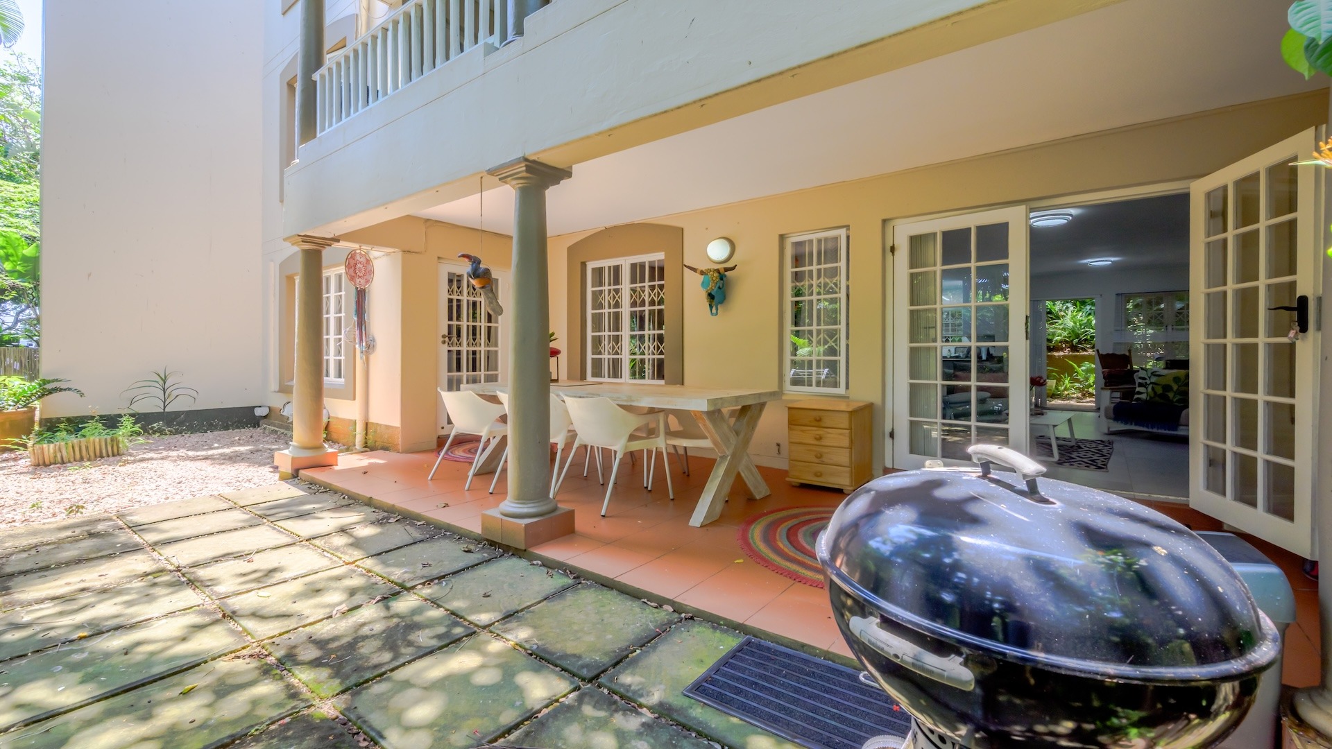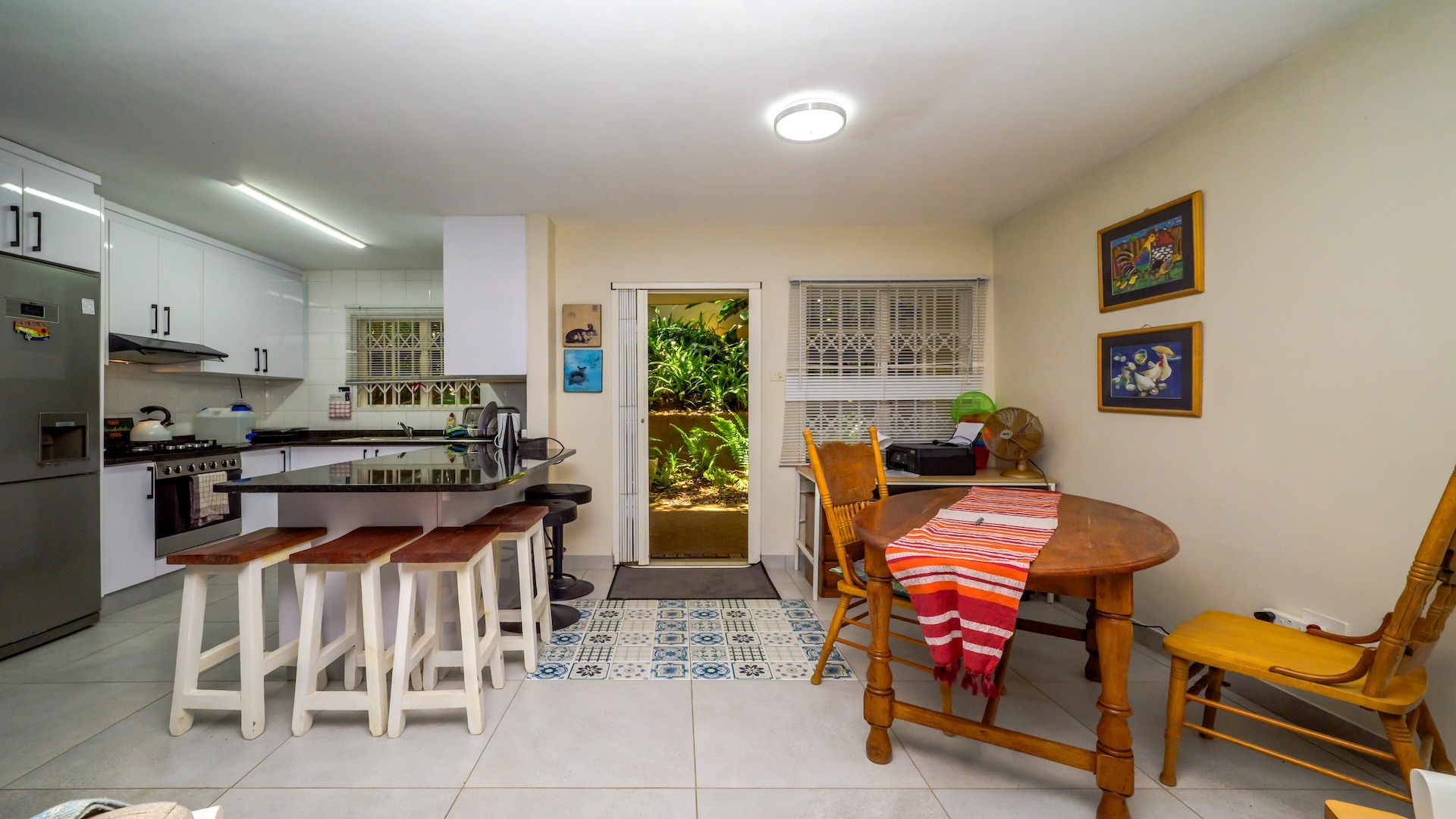 Come and discover this lovely 3-bedroom home nestled in a friendly complex in Willard Beach, Ballito. With a comfortable floor size of 118 sqm, this spot is perfect for anyone looking for a relaxed coastal lifestyle. You'll love being so close to the beach and enjoying the vibrant Ballito atmosphere. Step inside and you'll find a bright and airy open-plan living, dining, and kitchen area. The modern tiled flooring keeps things fresh, and there's plenty of natural light streaming in. The kitchen boasts modern cabinets and a handy breakfast bar, making it a great space for casual meals or entertaining friends. It all flows nicely, creating a welcoming vibe for everyday living. This home offers three comfy bedrooms, providing ample space for family or guests. There's one main bathroom and an additional ensuite bathroom, giving everyone their own bit of privacy and convenience. It’s a practical layout that just works. Outside, you'll find a fantastic covered patio area, complete with a BBQ grill – ideal for those sunny South African braais and outdoor dining. The property also features a lush garden, perfect for unwinding. But the real showstopper is the unique, irregularly shaped swimming pool, surrounded by mature tropical landscaping. It’s like having your own private oasis! Plus, there's a garage and an additional parking spot for your vehicles. Living in a complex means you get that extra peace of mind, with an access gate for security. It’s all about enjoying your home without a worry. This property truly offers a wonderful blend of indoor comfort and outdoor enjoyment, making it a great find in Ballito. Key Features: * 3 Bedrooms, 2 Bathrooms (1 ensuite) * Open-plan living, dining, and kitchen * Modern kitchen with breakfast bar * Covered outdoor patio with BBQ * Lush garden and unique swimming pool * Garage and additional parking * Complex living with access gate * 118 sqm floor size