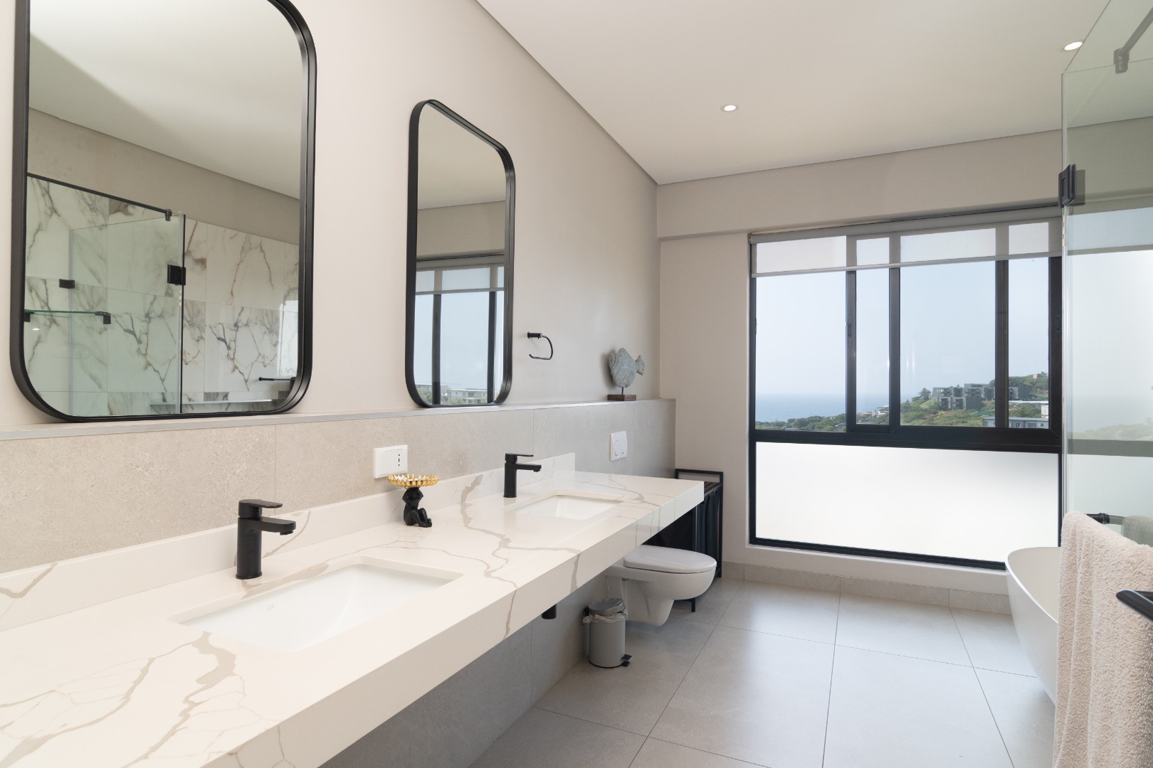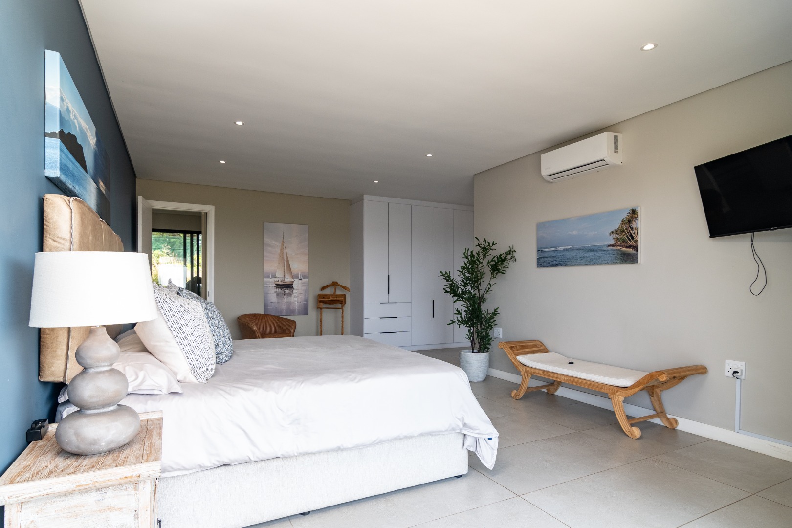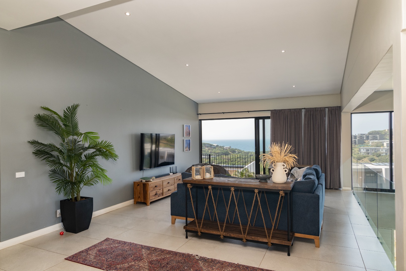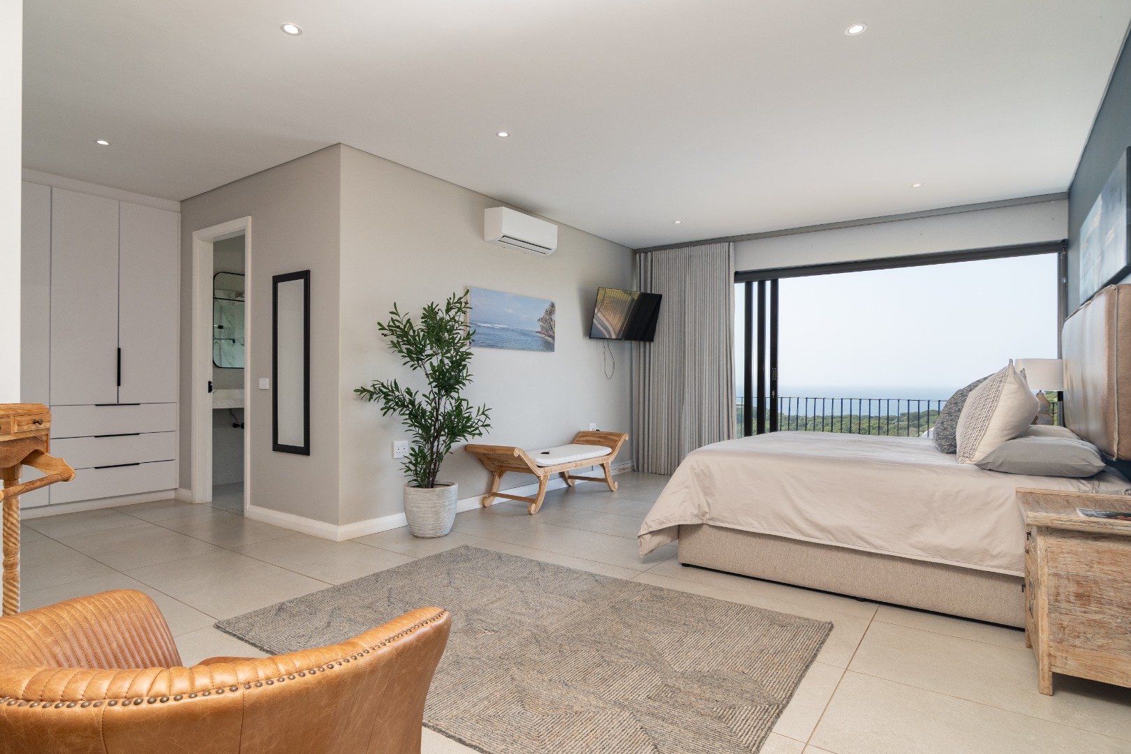 Upon entering, you are welcomed by a striking double-volume entrance hall featuring an elegant staircase that leads to the main living areas. The free-flowing layout maximizes natural light and views, with glass sliding doors opening onto an extended patio on the sea-facing side — the perfect spot to take in the scenery from both the living areas and the master suite. The patio on the other side of the home, flows effortlessly to the garden and pool area, designed with privacy in mind and sheltered from the prevailing coastal winds.