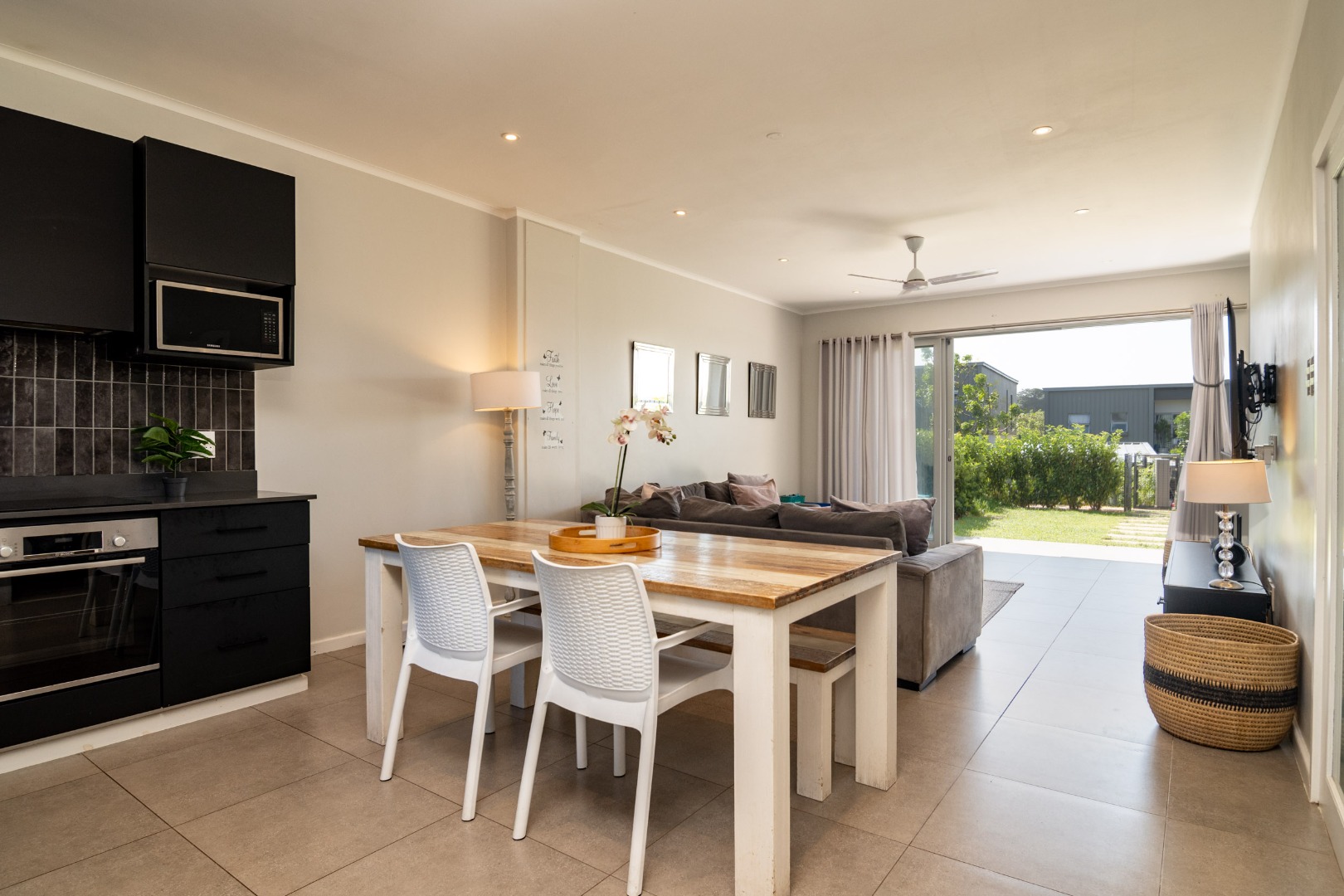 This stunning duplex offers a thoughtfully designed open-plan living area, featuring a lounge, dining space, kitchen, and a study nook, all seamlessly flowing onto a covered patio and one of the largest gardens. The ground level also includes a guest toilet, laundry area, and a convenient storage room.