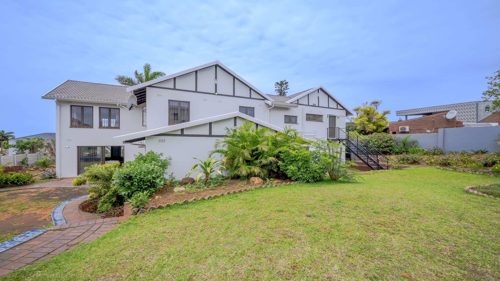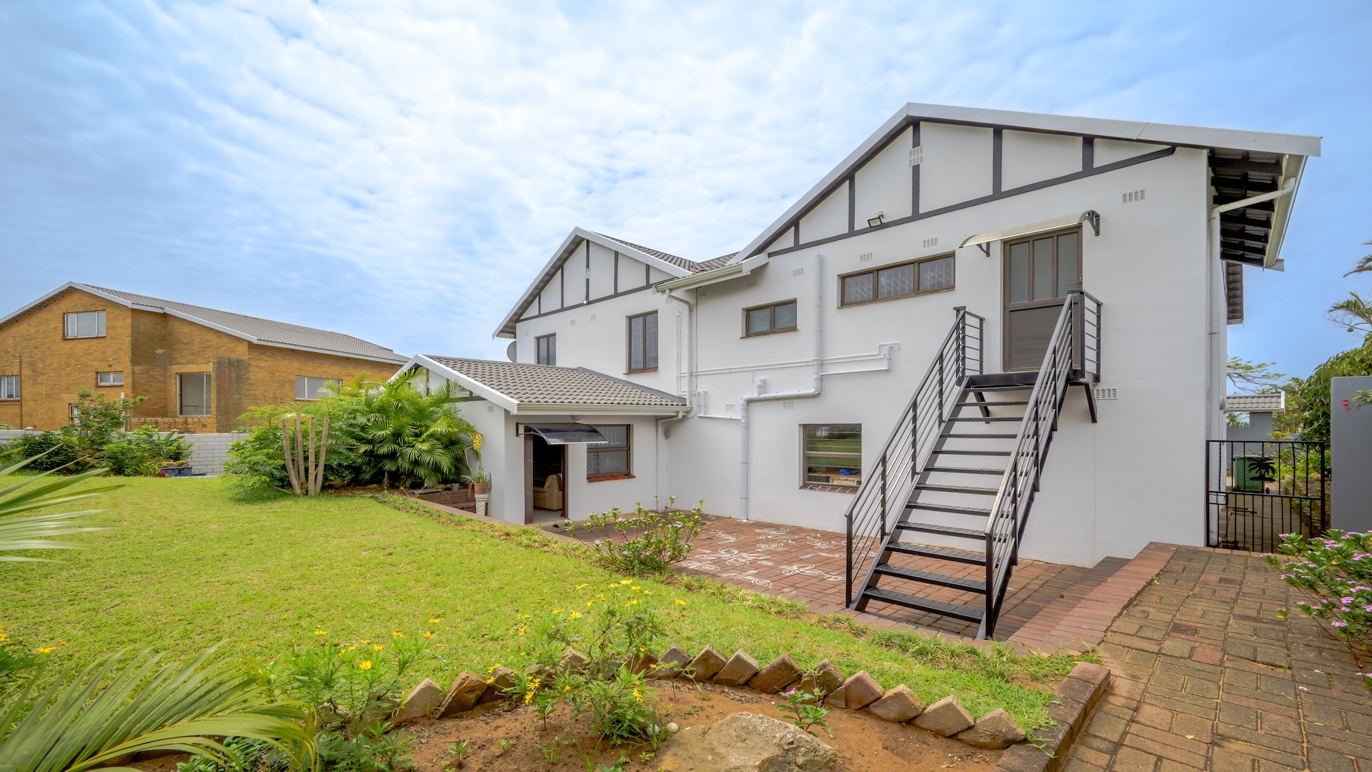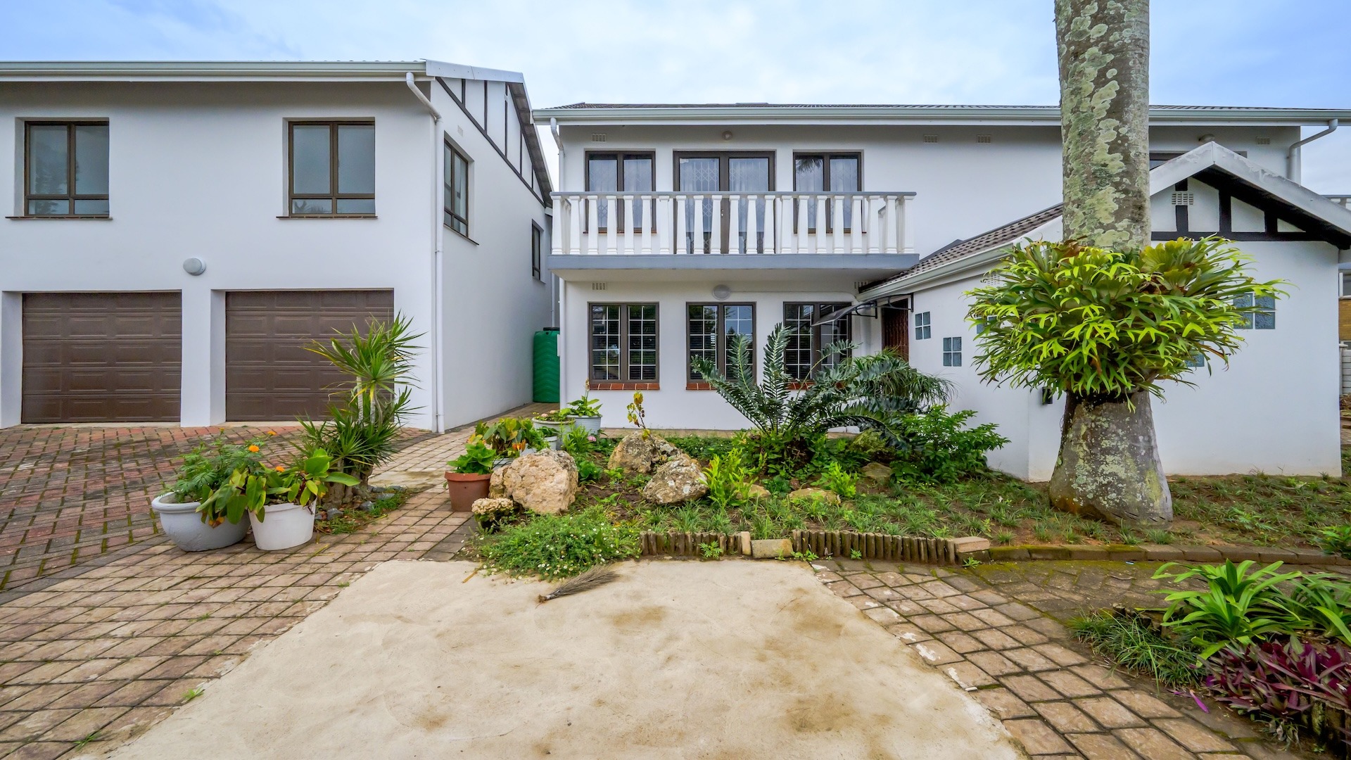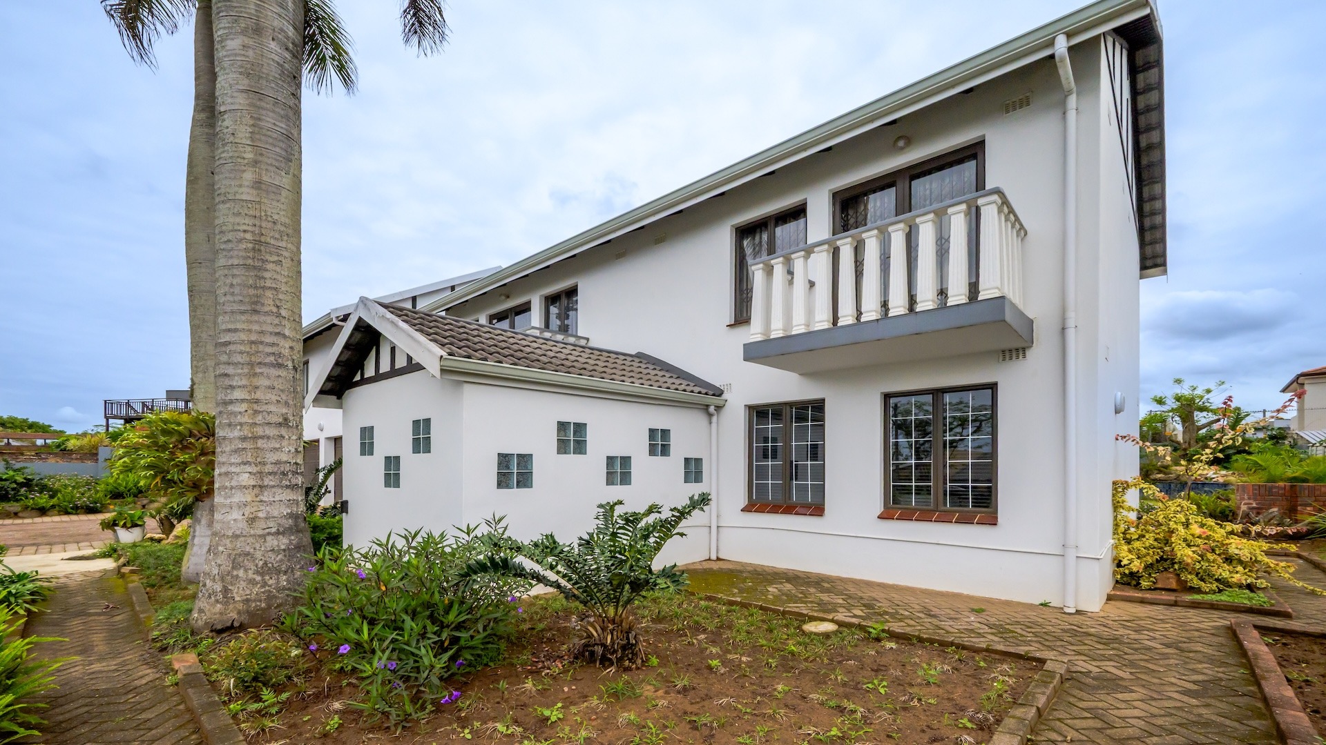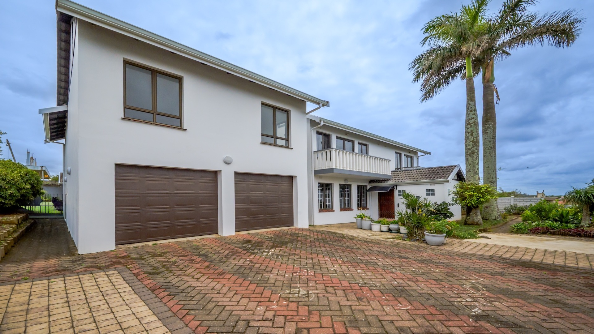 This impressive 4-bedroom, 3-bathroom residence in Desainagar offers comfort and functionality. The property features a modern white exterior with an upper-level balcony and a partially landscaped garden. Inside, find two spacious lounges and a dining room. The modern kitchen boasts new white cabinetry, dark countertops, and integrated appliances, flowing into an open-plan area. A notable flatlet potential exists, accessible via an external staircase. Outdoor amenities include a brick patio, a large paved driveway, and three garages. Pets are allowed. Located in Desainagar, this home provides a serene suburban lifestyle. Key Features: * 4 Bedrooms, 3 Bathrooms * 2 Lounges, 1 Dining Room * Modern Kitchen with New Appliances * Flatlet Potential with External Access * 3 Garages, 4 Parking Bays * Balcony and Patio * Landscaped Garden, Paved Driveway * Pet-Friendly