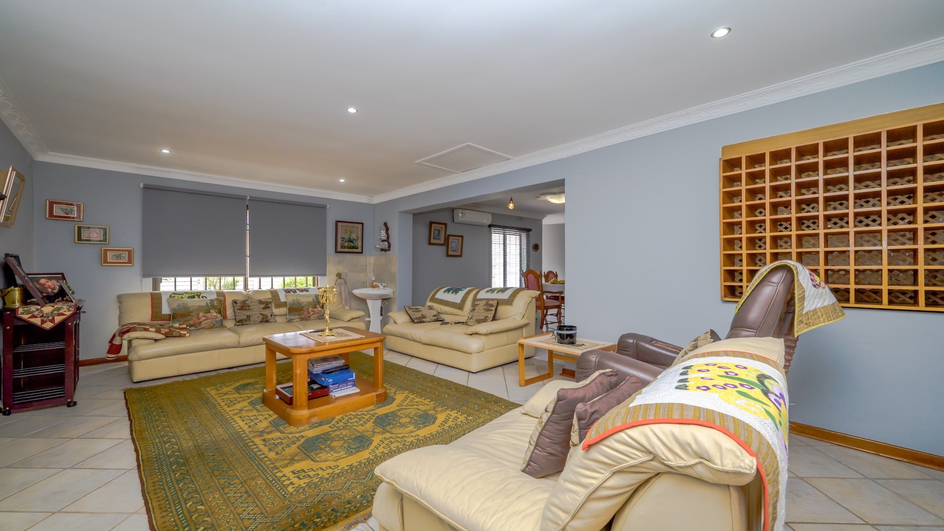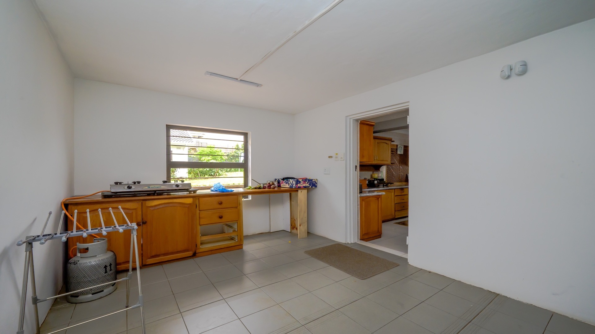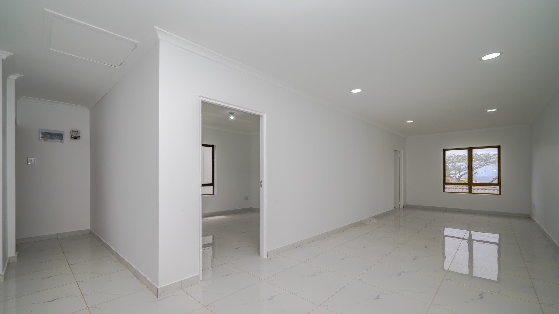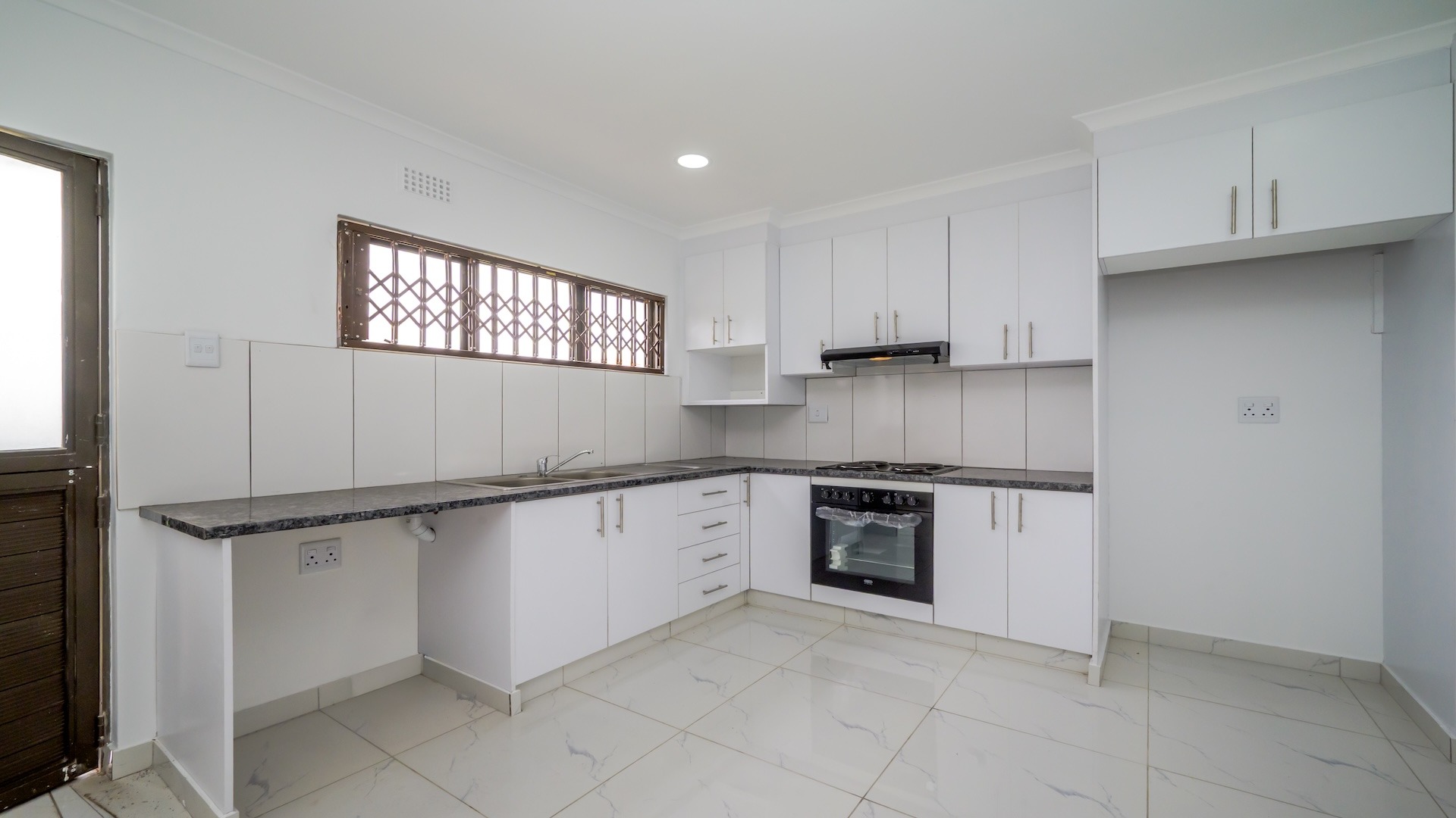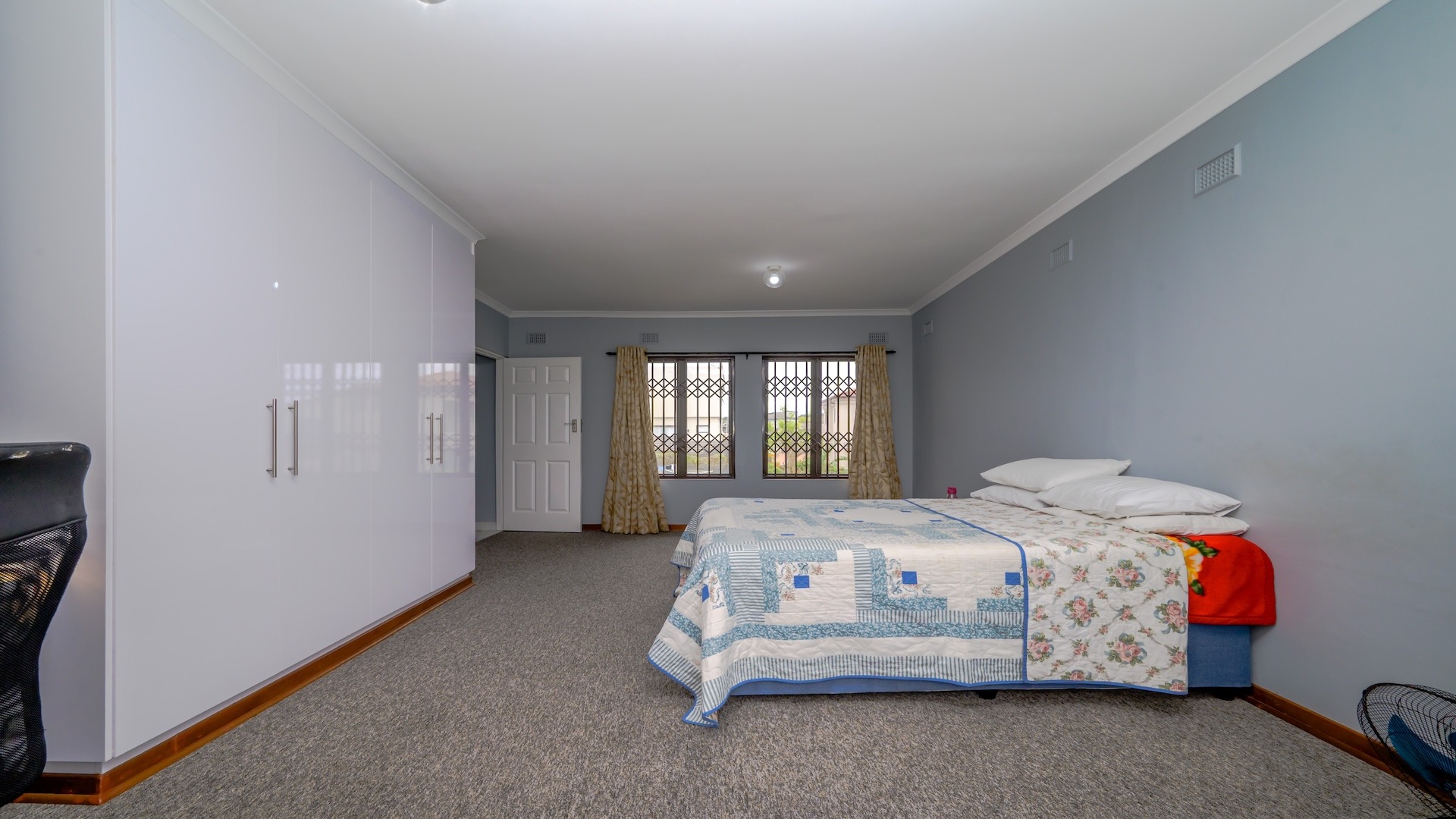 This impressive 4-bedroom, 3-bathroom residence in Desainagar offers comfort and functionality. The property features a modern white exterior with an upper-level balcony and a partially landscaped garden. Inside, find two spacious lounges and a dining room. The modern kitchen boasts new white cabinetry, dark countertops, and integrated appliances, flowing into an open-plan area. A notable flatlet potential exists, accessible via an external staircase. Outdoor amenities include a brick patio, a large paved driveway, and three garages. Pets are allowed. Located in Desainagar, this home provides a serene suburban lifestyle. Key Features: * 4 Bedrooms, 3 Bathrooms * 2 Lounges, 1 Dining Room * Modern Kitchen with New Appliances * Flatlet Potential with External Access * 3 Garages, 4 Parking Bays * Balcony and Patio * Landscaped Garden, Paved Driveway * Pet-Friendly