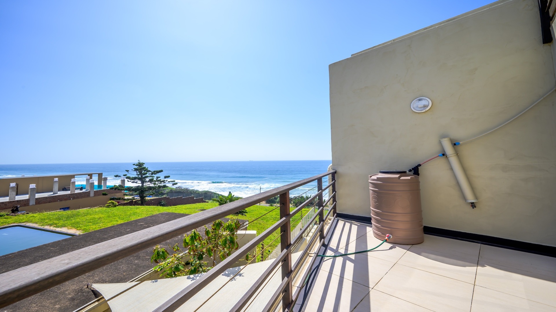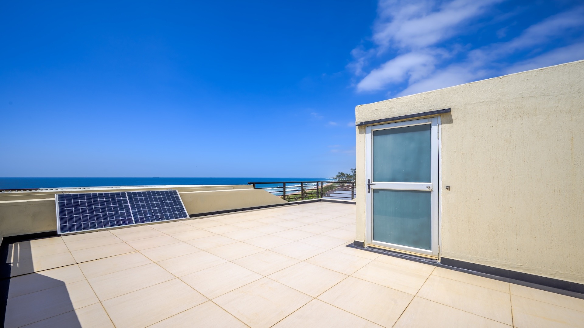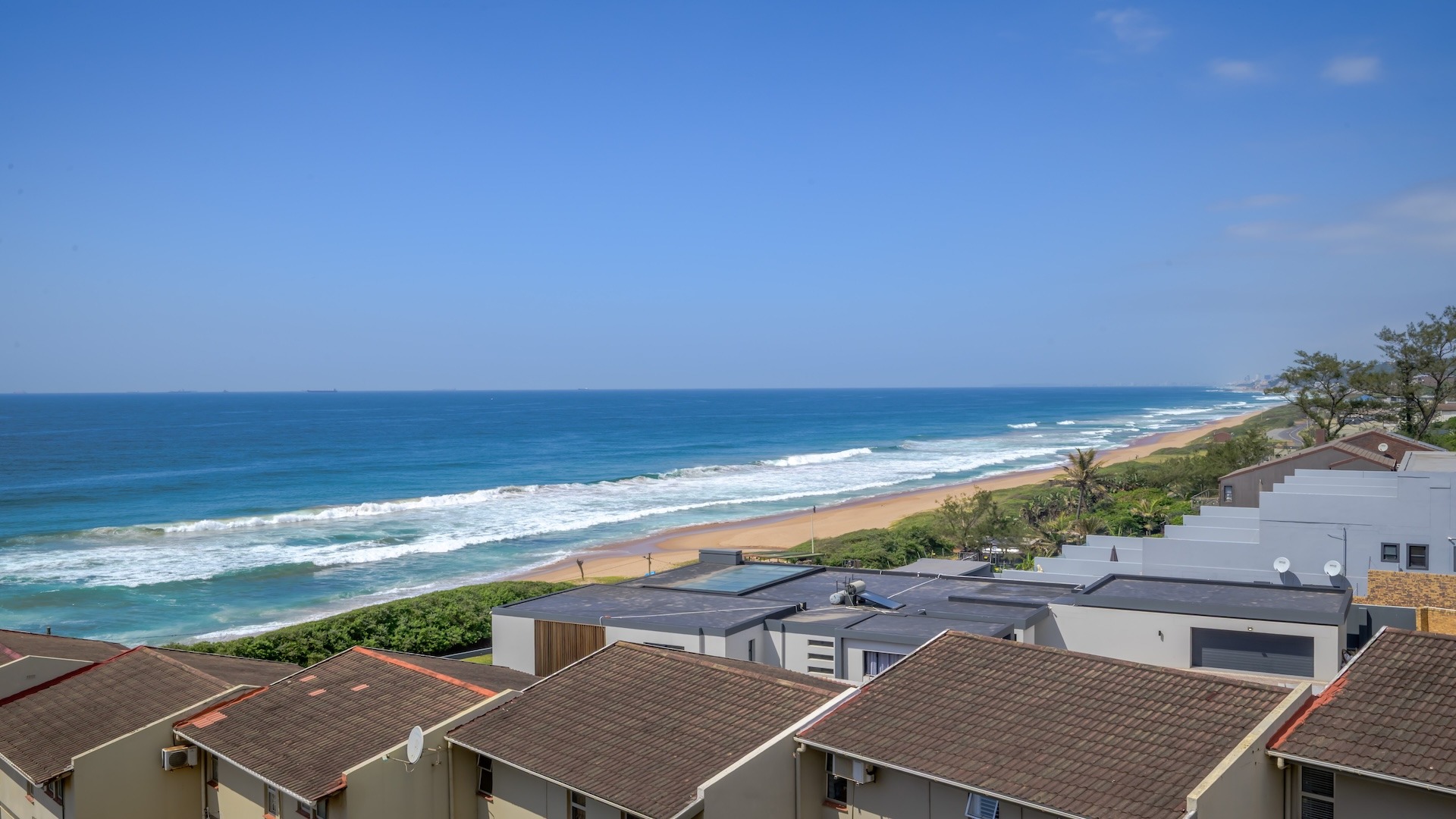 Discover exceptional coastal living in this 3-bedroom, 2-bathroom residence within a desirable complex in La Mercy, South Africa. Boasting expansive panoramic ocean views, this property offers a serene backdrop to everyday life, with elevated perspectives of the vibrant blue ocean and sandy beach.