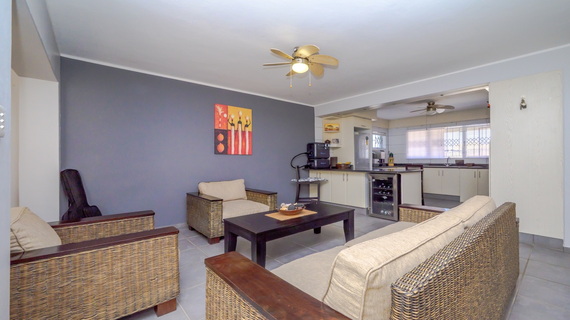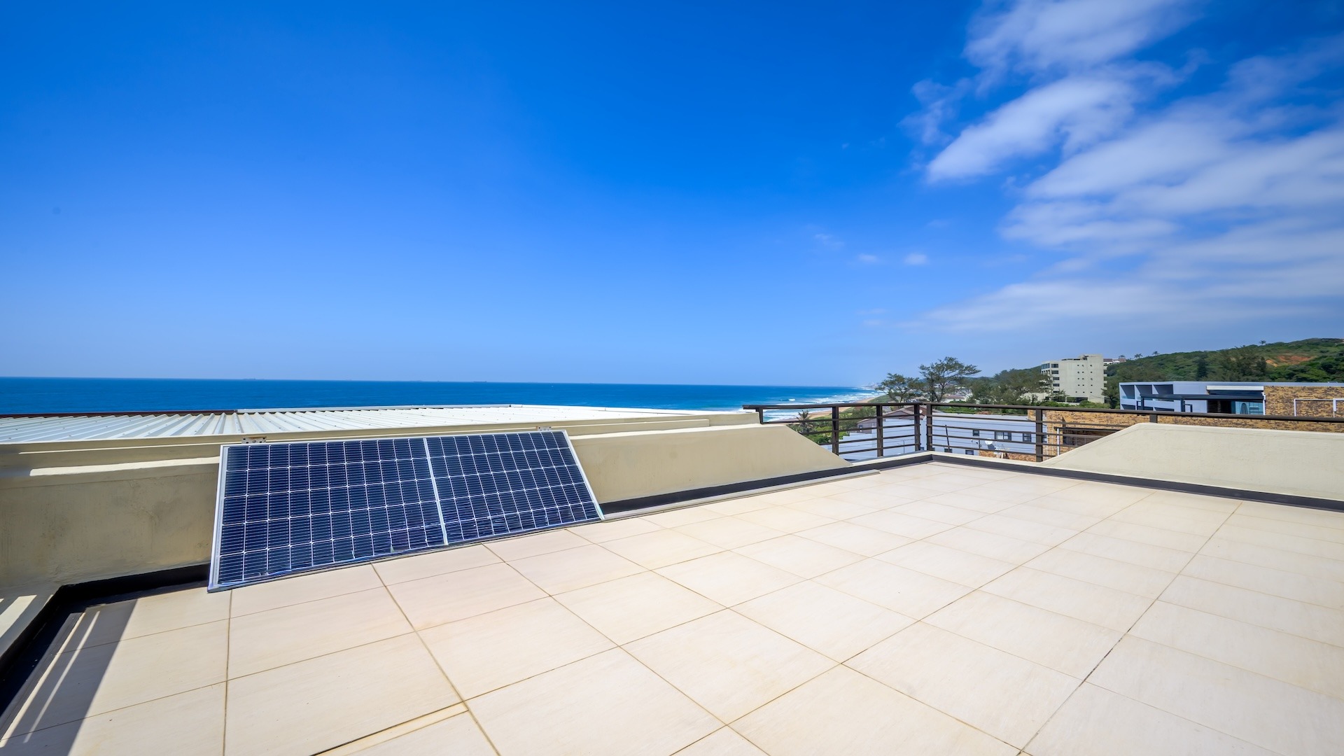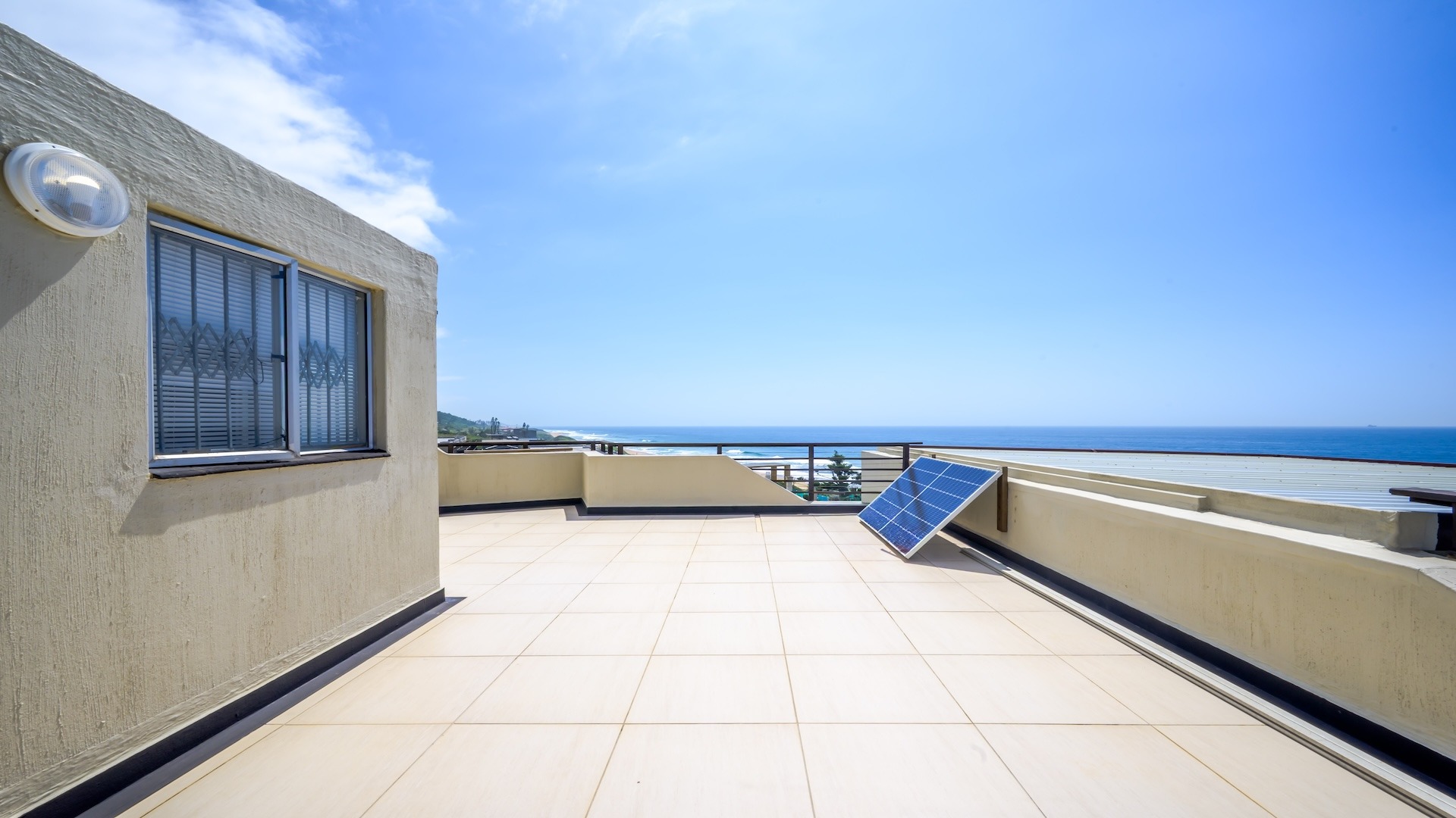 Discover exceptional coastal living in this 3-bedroom, 2-bathroom residence within a desirable complex in La Mercy, South Africa. Boasting expansive panoramic ocean views, this property offers a serene backdrop to everyday life, with elevated perspectives of the vibrant blue ocean and sandy beach.