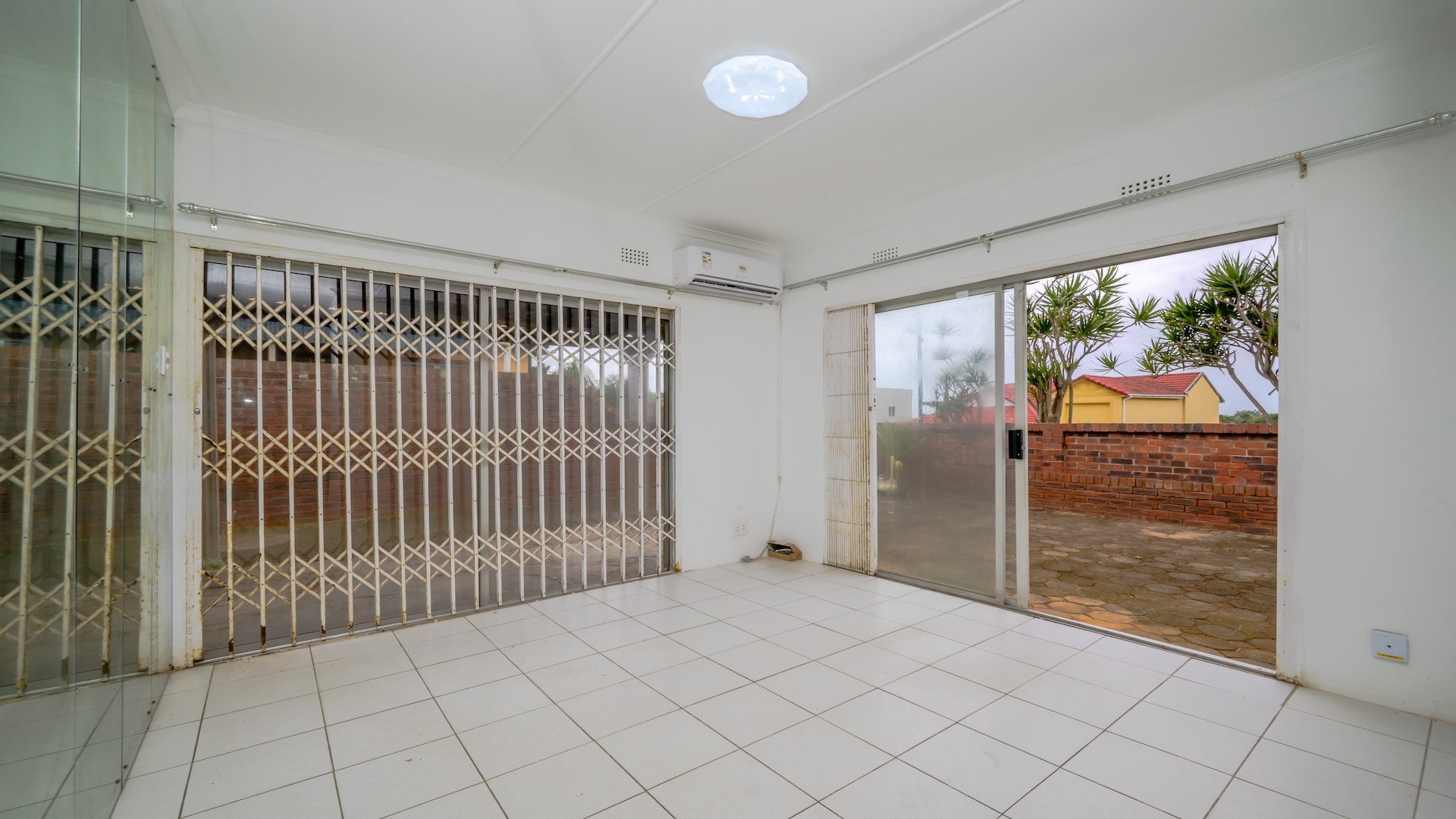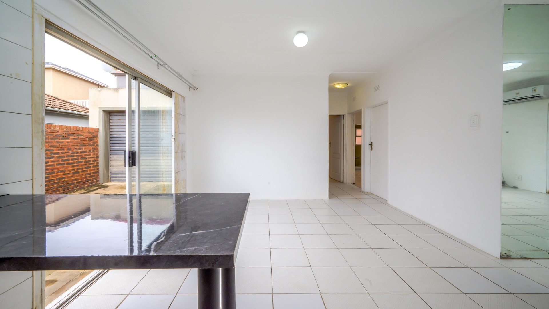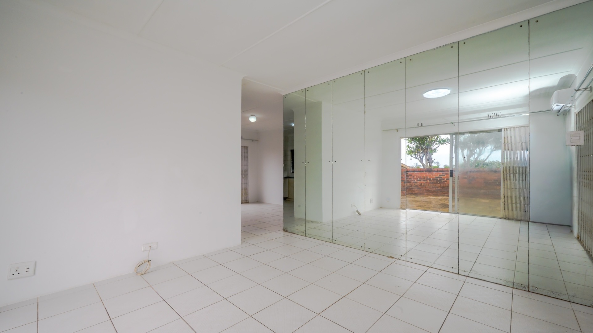 Step inside and you'll find a bright and airy open-plan living area that flows nicely into the kitchen. The kitchen is super functional with a built-in oven, plenty of cabinet space, and even a breakfast bar – perfect for quick meals or catching up over coffee. The white tiled floors and walls throughout the main living spaces keep things feeling fresh and easy to maintain. Plus, there's an air conditioning unit to keep you cool during those warm Tongaat days!