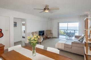This exquisite 109 sqm residence immediately captivates with its expansive private balcony, a true masterpiece offering breathtaking, panoramic ocean views framed by verdant trees. Imagine hosting soirées with the built-in brick barbecue, where the gentle sea breeze and endless horizon create an idyllic backdrop. Modern glass railings ensure an unobstructed vista, inviting the majestic coastal scenery directly into your living space. A dedicated parking bay adds to the convenience of this exclusive coastal haven.