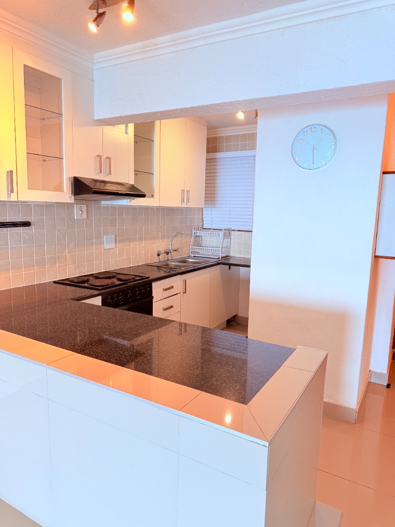 Two generously proportioned bedrooms provide tranquil retreats, complemented by a well-appointed bathroom, ensuring comfort and privacy. Residing within a secure gated community and security complex, this property offers ultimate peace of mind, allowing you to fully immerse yourself in the luxurious coastal lifestyle.