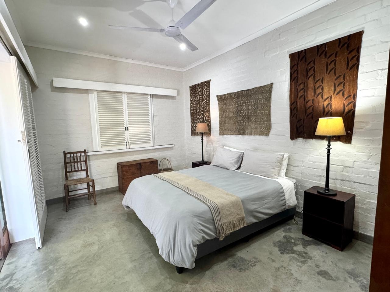 Crisp white shutters throughout enhance the relaxed coastal aesthetic and allow you to control light and airflow with ease. The main open plan living area forms the heart of the home — opening fully on both sides to two distinct courtyards each offering it’s own experience.