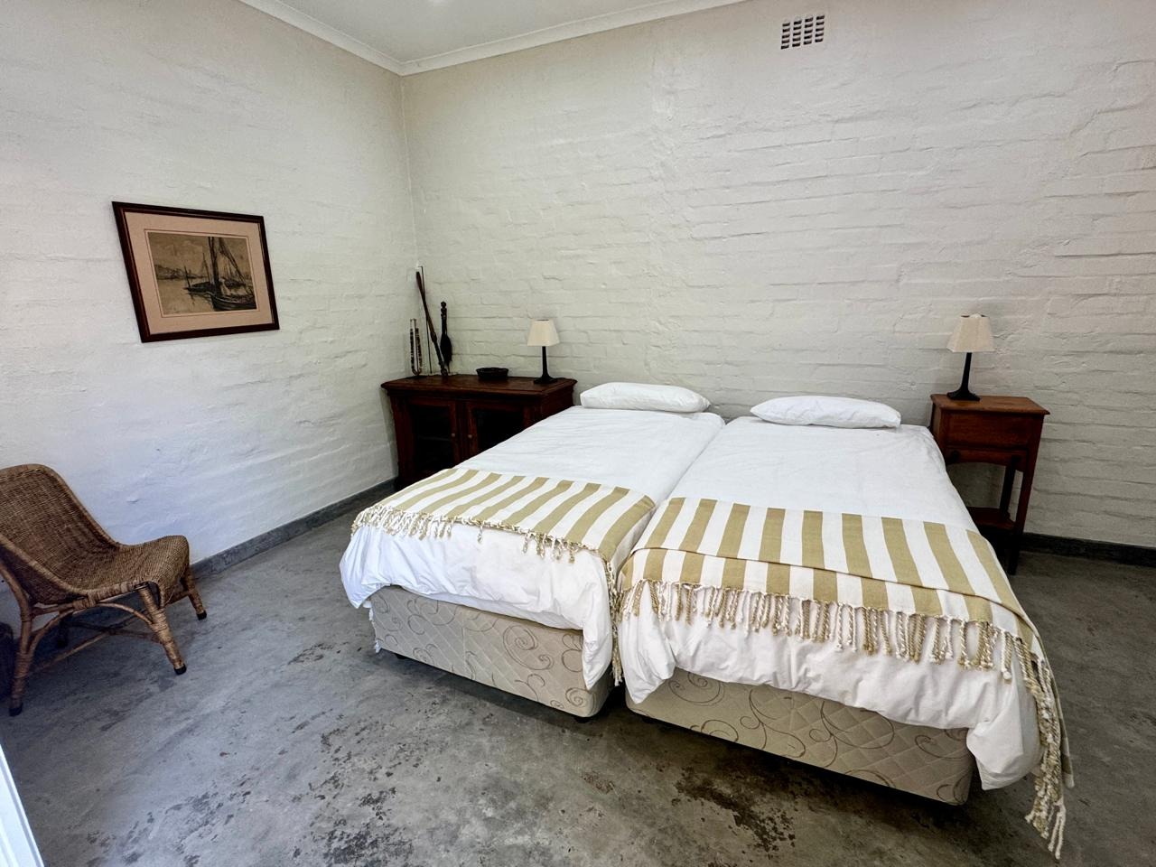 A private wooden walkway winds through dune vegetation to your own secluded beach lookout. From here you can watch whales and dolphins, enjoy the sunrise over the ocean or sundowners while watching the waves. The view is 180 degrees and uninterrupted.