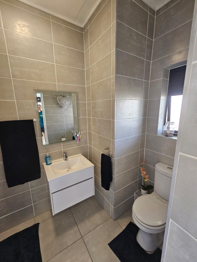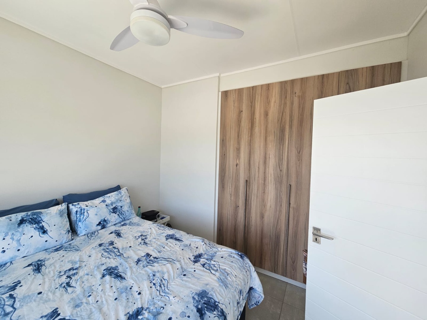 The apartment comes fully furnished, providing convenience and contemporary comfort, excluding linen. The bedroom is well-sized with built-in cupboards, and the bathroom is modern and neatly finished.
