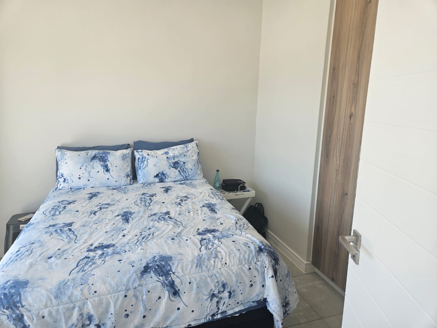 The apartment comes fully furnished, providing convenience and contemporary comfort, excluding linen. The bedroom is well-sized with built-in cupboards, and the bathroom is modern and neatly finished.