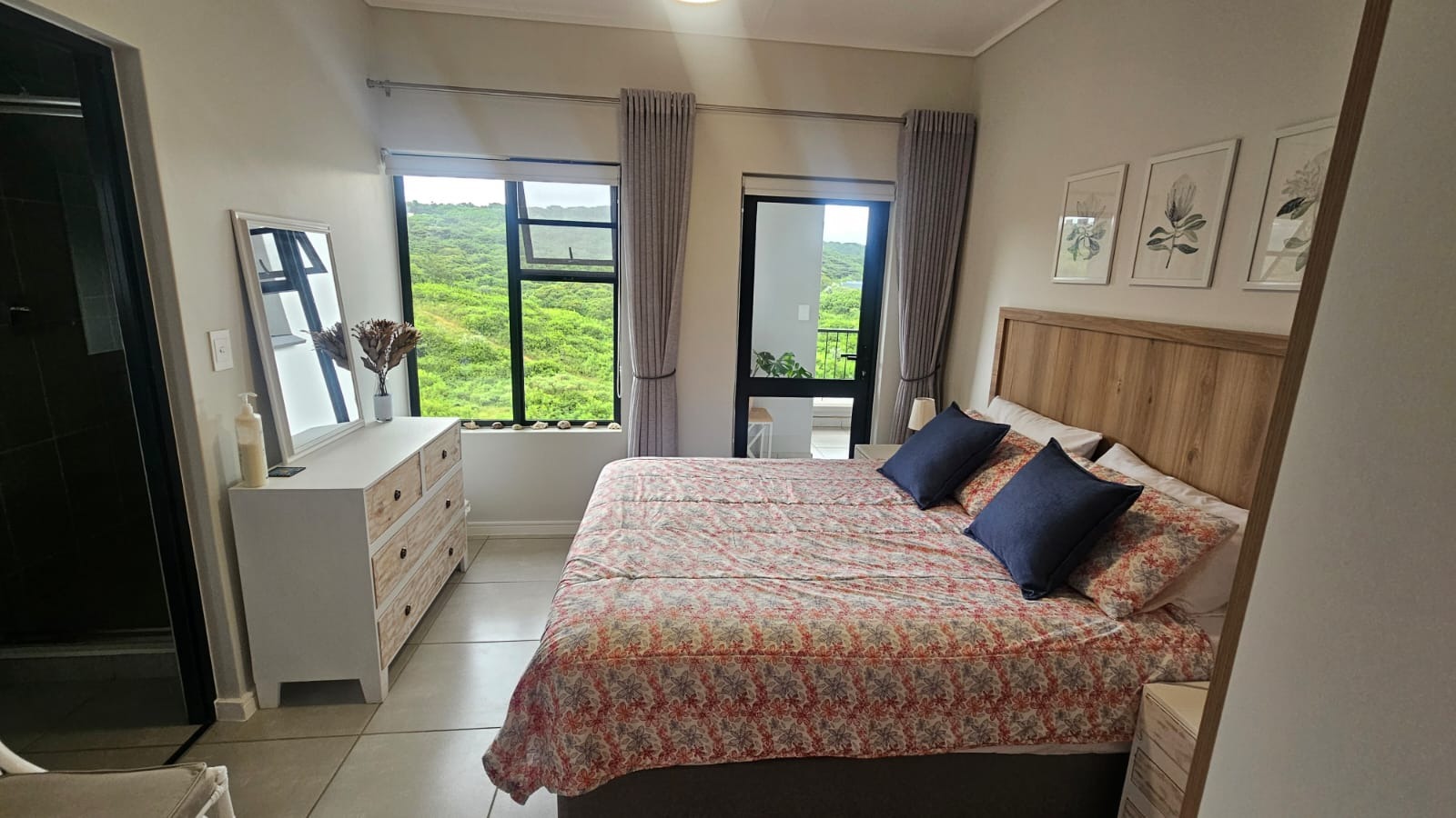 The main bedroom features an en-suite bathroom and opens directly onto a covered balcony, where you can enjoy tranquil, unobstructed views over lush greenery — with no buildings in front, ensuring privacy and a serene outlook.