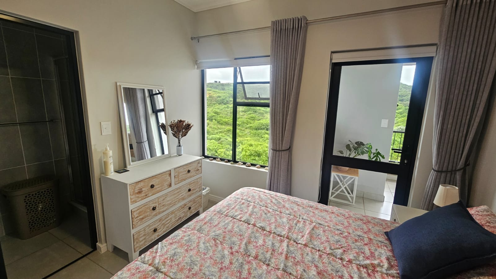 The main bedroom features an en-suite bathroom and opens directly onto a covered balcony, where you can enjoy tranquil, unobstructed views over lush greenery — with no buildings in front, ensuring privacy and a serene outlook.