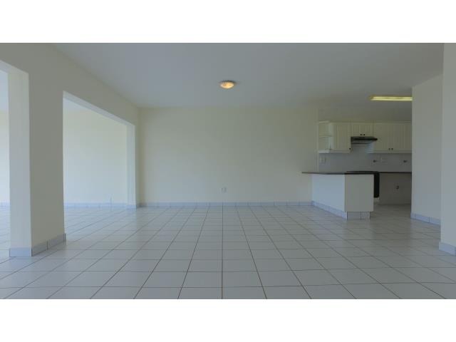 This 3-bedroom, 2-bathroom residential rental in Ballito Central offers a superb coastal lifestyle. The unfurnished interior presents a blank canvas, featuring spacious open-plan living areas. Distant sea views and lush green surroundings, perfect for relaxation. The contemporary kitchen boasts white cabinetry, dark countertops, a built-in hob, and a convenient breakfast bar, ideal for everyday living.