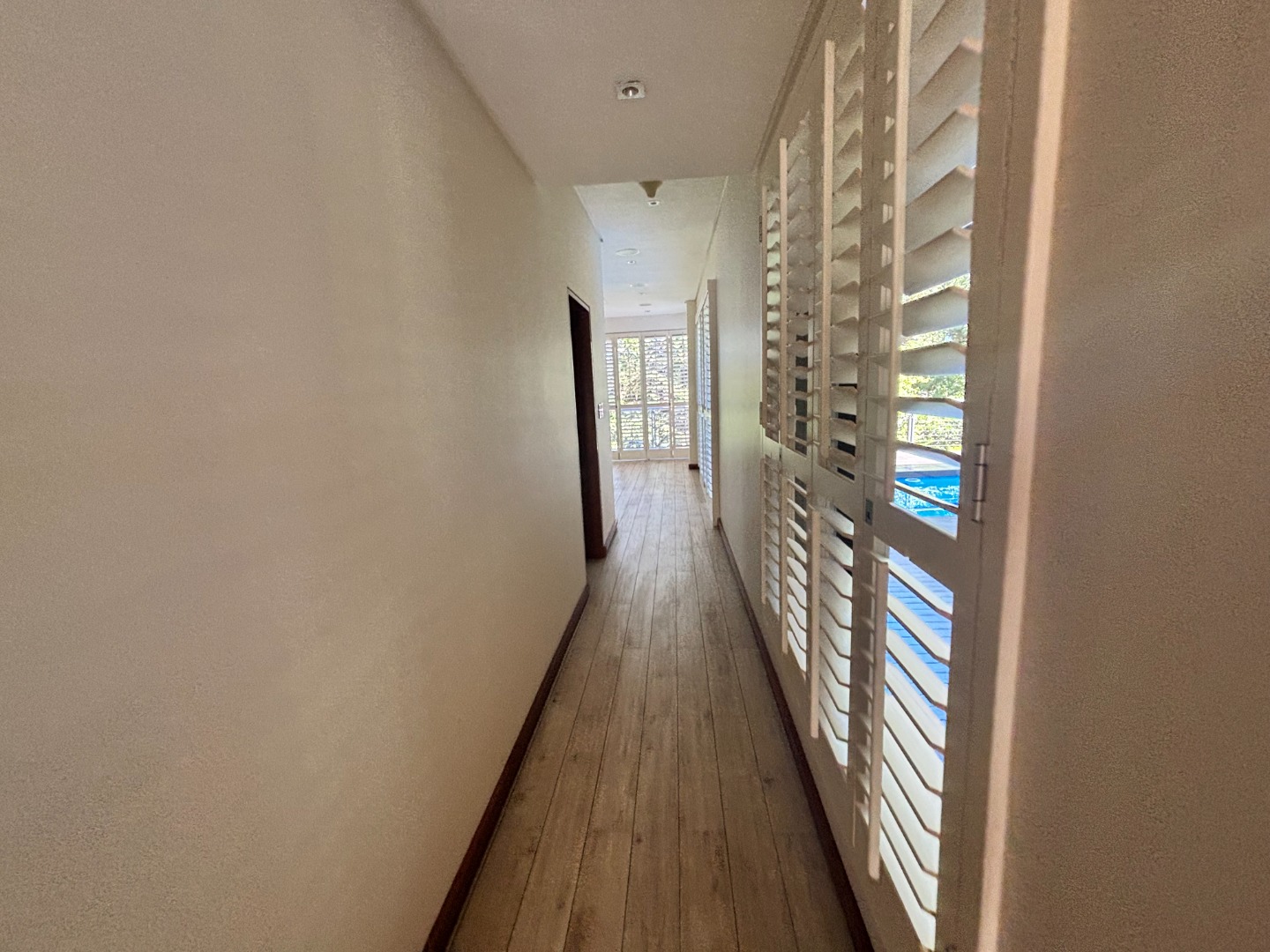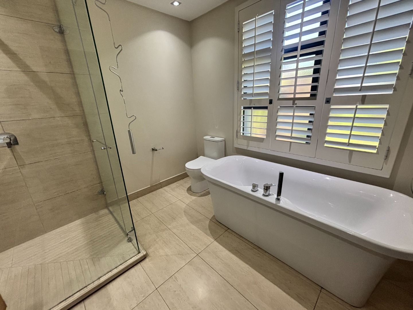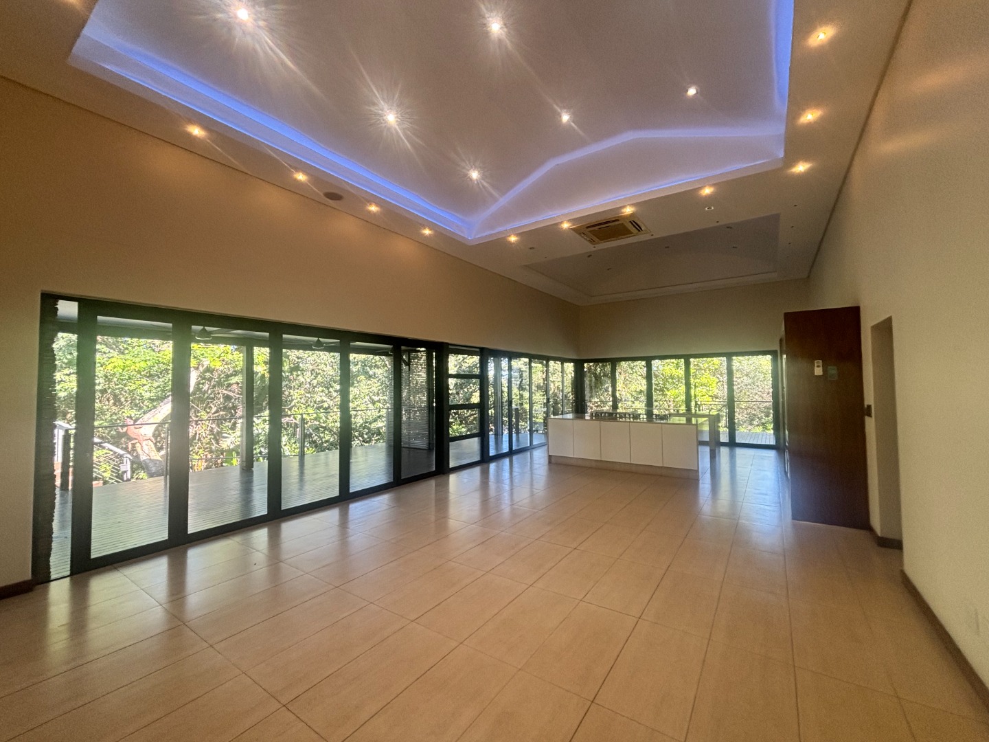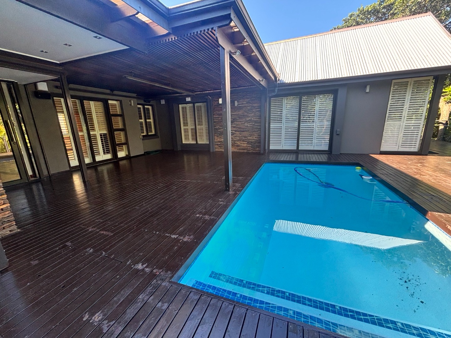 Discover modern living in this spacious 3-bedroom, 3.5-bathroom residence available for rent within the prestigious Simbithi Eco Estate in Ballito, South Africa. Each of the three bedrooms boasts its own en-suite bathroom, ensuring privacy and comfort, while a convenient guest toilet is also available. The property includes a flatlet, offering versatile living options. The main living area features expansive floor-to-ceiling glass doors that open onto a large deck, providing panoramic views of lush greenery and direct access to a sparkling swimming pool and a built-in braai area, perfect for entertaining.