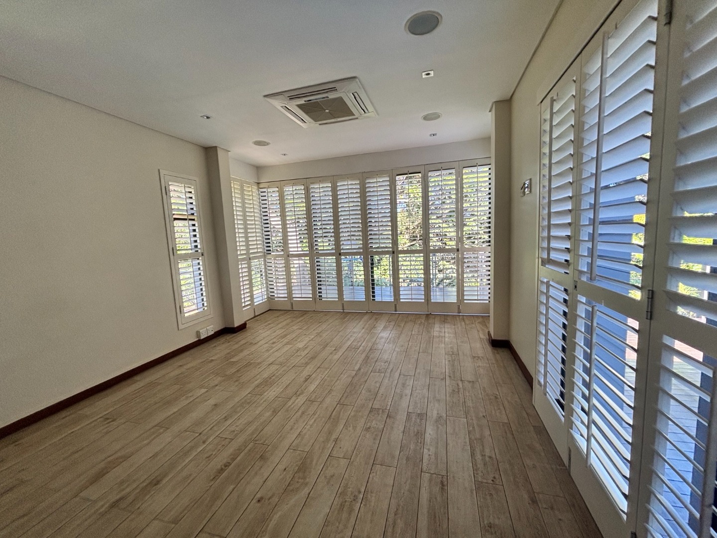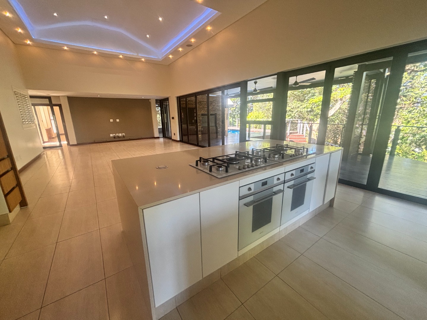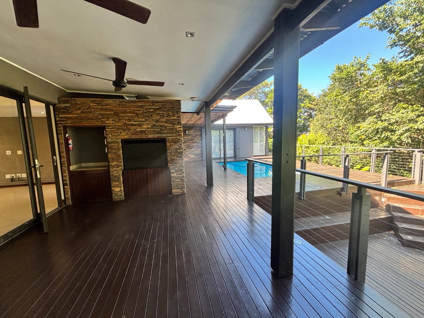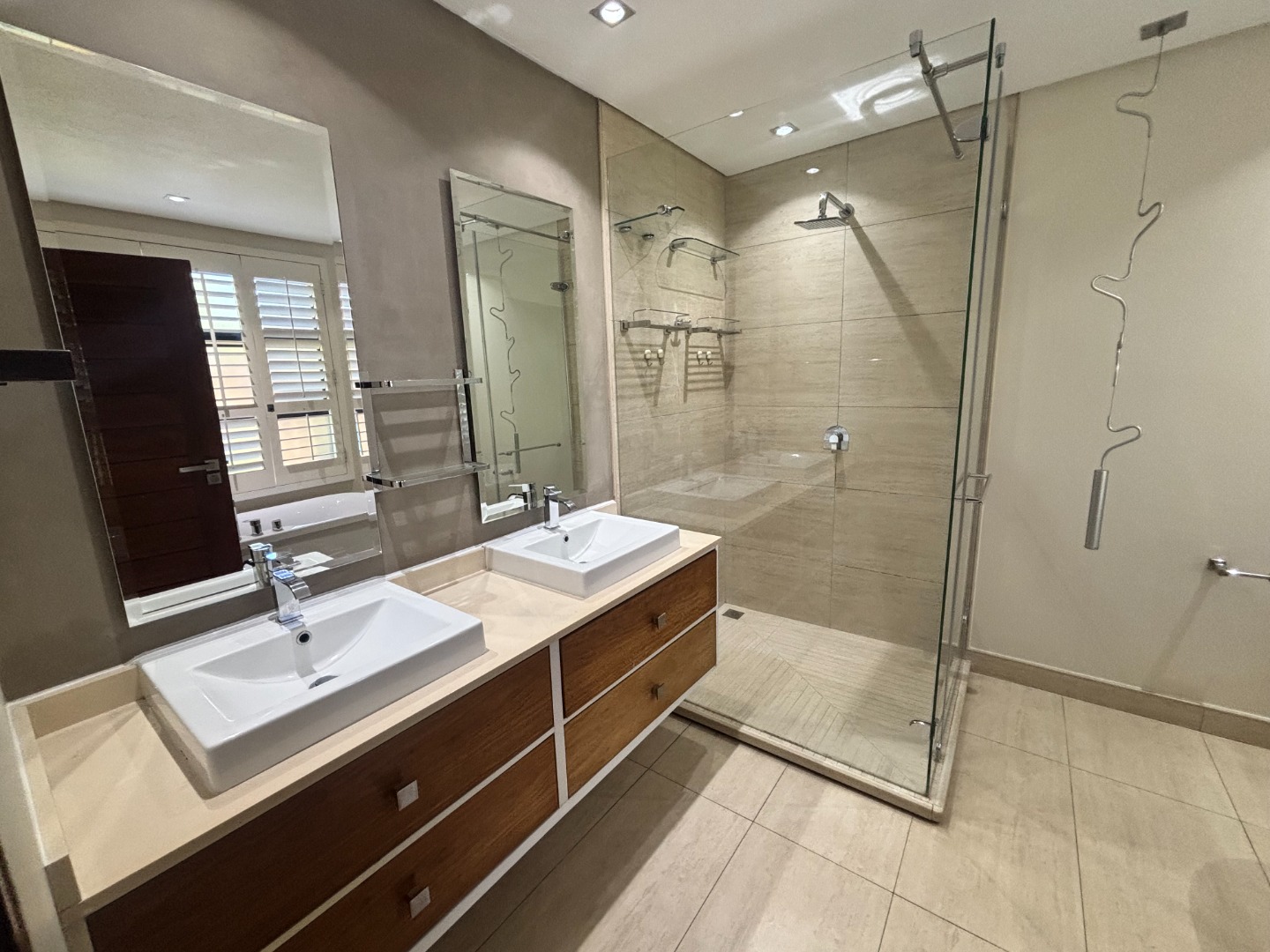 Discover modern living in this spacious 3-bedroom, 3.5-bathroom residence available for rent within the prestigious Simbithi Eco Estate in Ballito, South Africa. Each of the three bedrooms boasts its own en-suite bathroom, ensuring privacy and comfort, while a convenient guest toilet is also available. The property includes a flatlet, offering versatile living options. The main living area features expansive floor-to-ceiling glass doors that open onto a large deck, providing panoramic views of lush greenery and direct access to a sparkling swimming pool and a built-in braai area, perfect for entertaining.