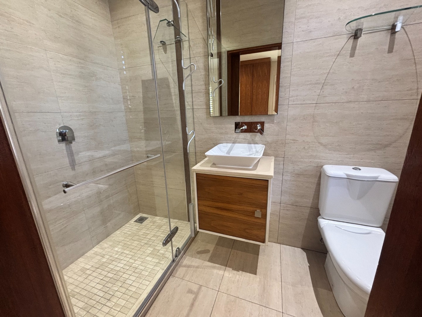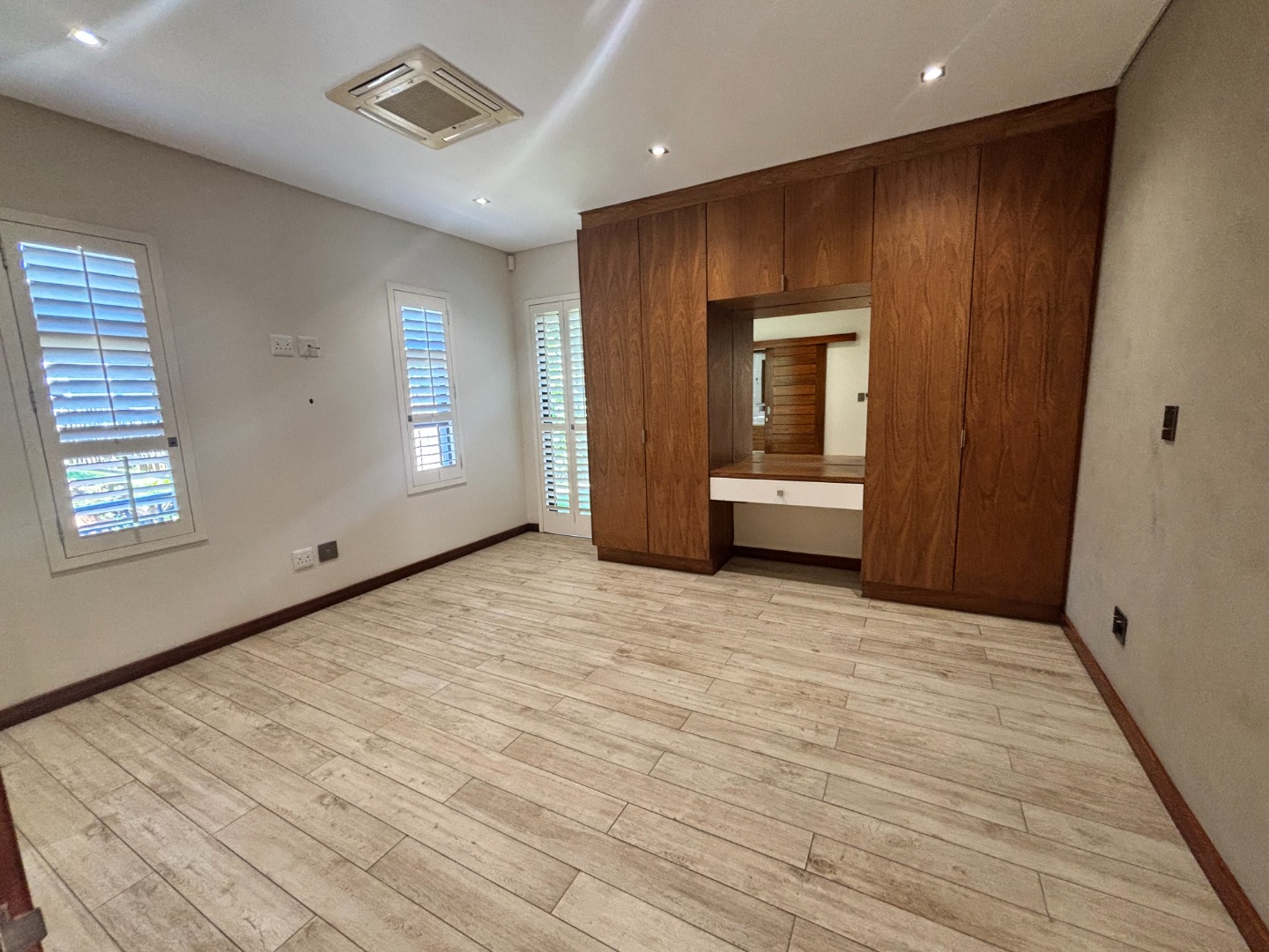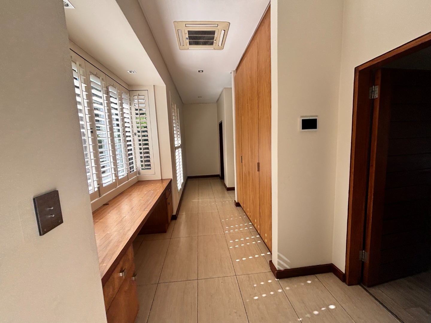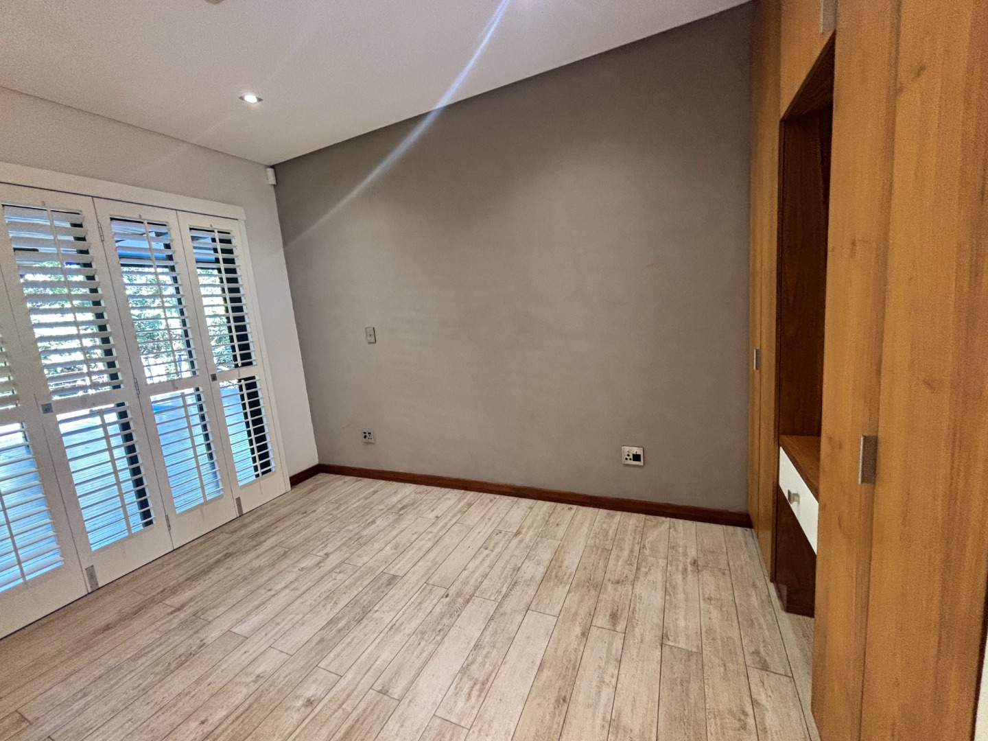 Discover modern living in this spacious 3-bedroom, 3.5-bathroom residence available for rent within the prestigious Simbithi Eco Estate in Ballito, South Africa. Each of the three bedrooms boasts its own en-suite bathroom, ensuring privacy and comfort, while a convenient guest toilet is also available. The property includes a flatlet, offering versatile living options. The main living area features expansive floor-to-ceiling glass doors that open onto a large deck, providing panoramic views of lush greenery and direct access to a sparkling swimming pool and a built-in braai area, perfect for entertaining.