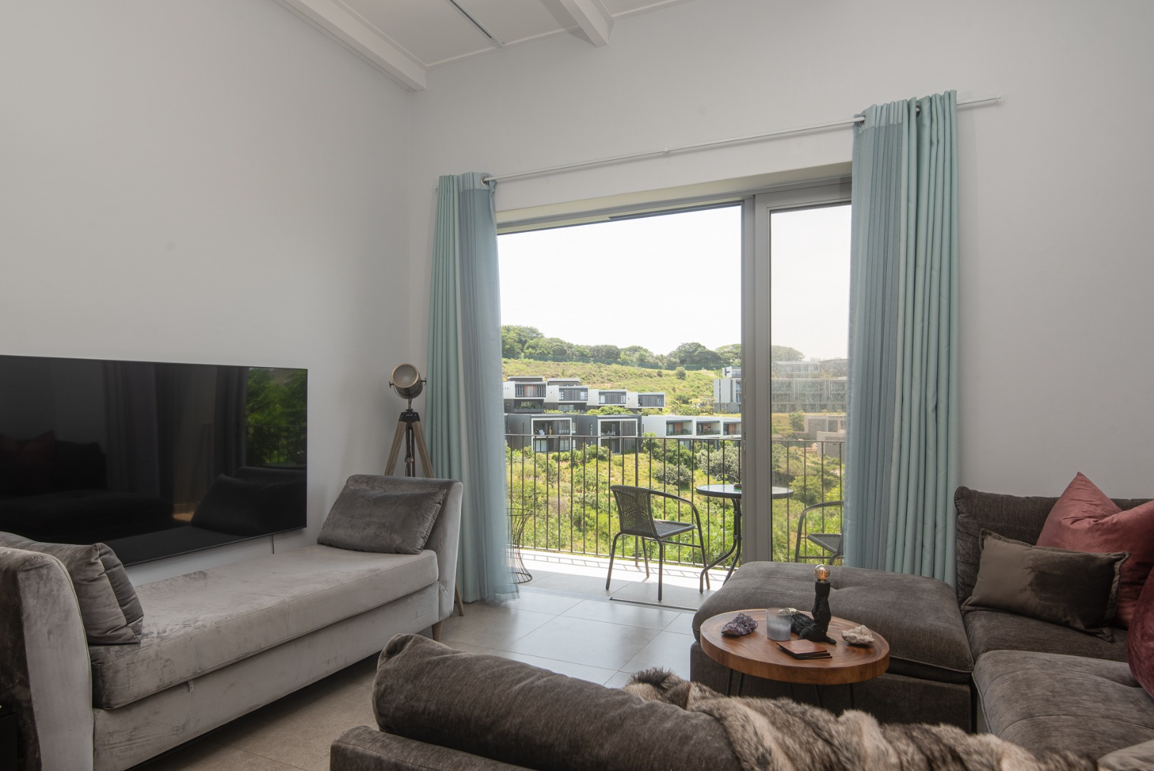 This modern first-floor apartment is located in the sought-after Aura development within Zululami Coastal Forest Estate. The unit offers an open-plan kitchen and lounge, creating a light and comfortable living area ideal for modern living.