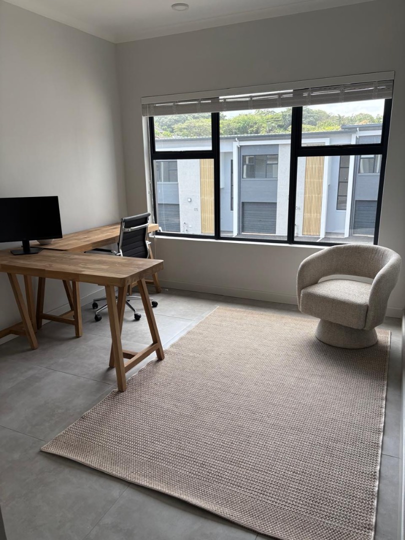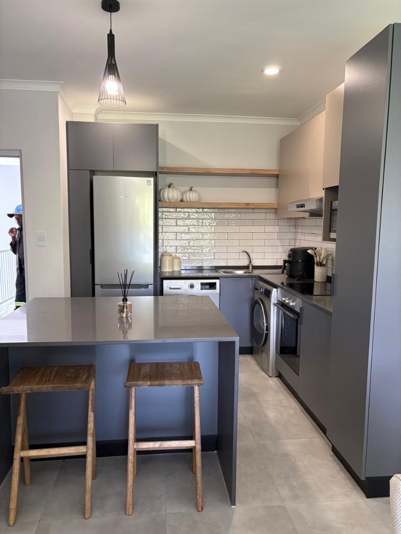 Discover modern living in this unfurnished 3-bedroom, 2-bathroom unit located in a complex in Westbrook, Tongaat. The contemporary interior boasts a lounge and a well-equipped kitchen featuring built-in oven, hob, and stylish grey and wood-look cabinetry. Tiled flooring extends throughout, complemented by ample natural light from large windows and sliding doors leading to a private patio. This unit offers a single garage and an additional parking bay, ideal for a convenient lock-up-and-go lifestyle.